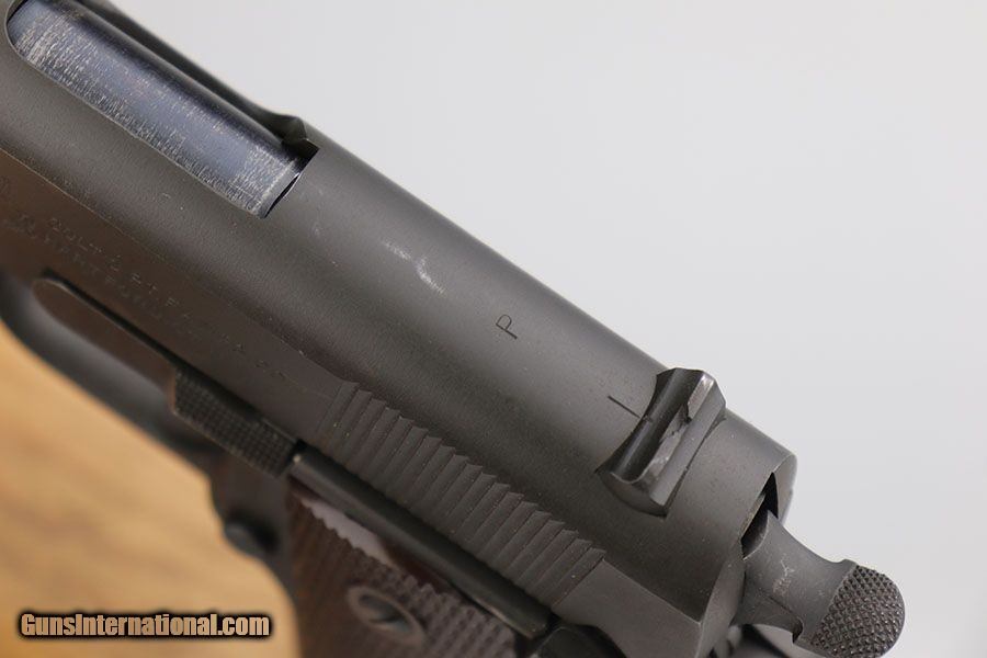 Description: This is a beautiful Colt M1911A1 from 1943. It has all proper inspectors marks with crossed cannons cartouche on the right side of the frame. The original parkerized finish rates at about 96% with a spot of finish loss on the underside of the slide, trigger guard, and either edge of the frame. Barrel is Colt made with small 'F' under the lug, and it has a mint bore. Slide is matching and numbered to the frame. Magazine is 'L' marked. SOLD Handgun Caliber: .45 ACP (.45 Auto) Manufacturer: Colt Model: 1911A1 Serial Number: 1092470 Condition: ~96% Bore Condition: 10/10 Manufacture Date: 1943 |