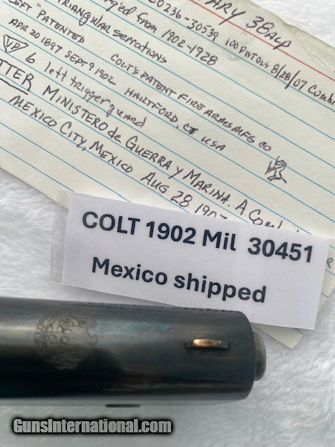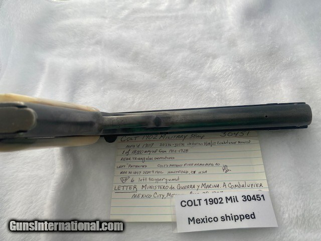 Colt 1902 Military Mexican shipped Pearl Grips with Colt Archive Letter