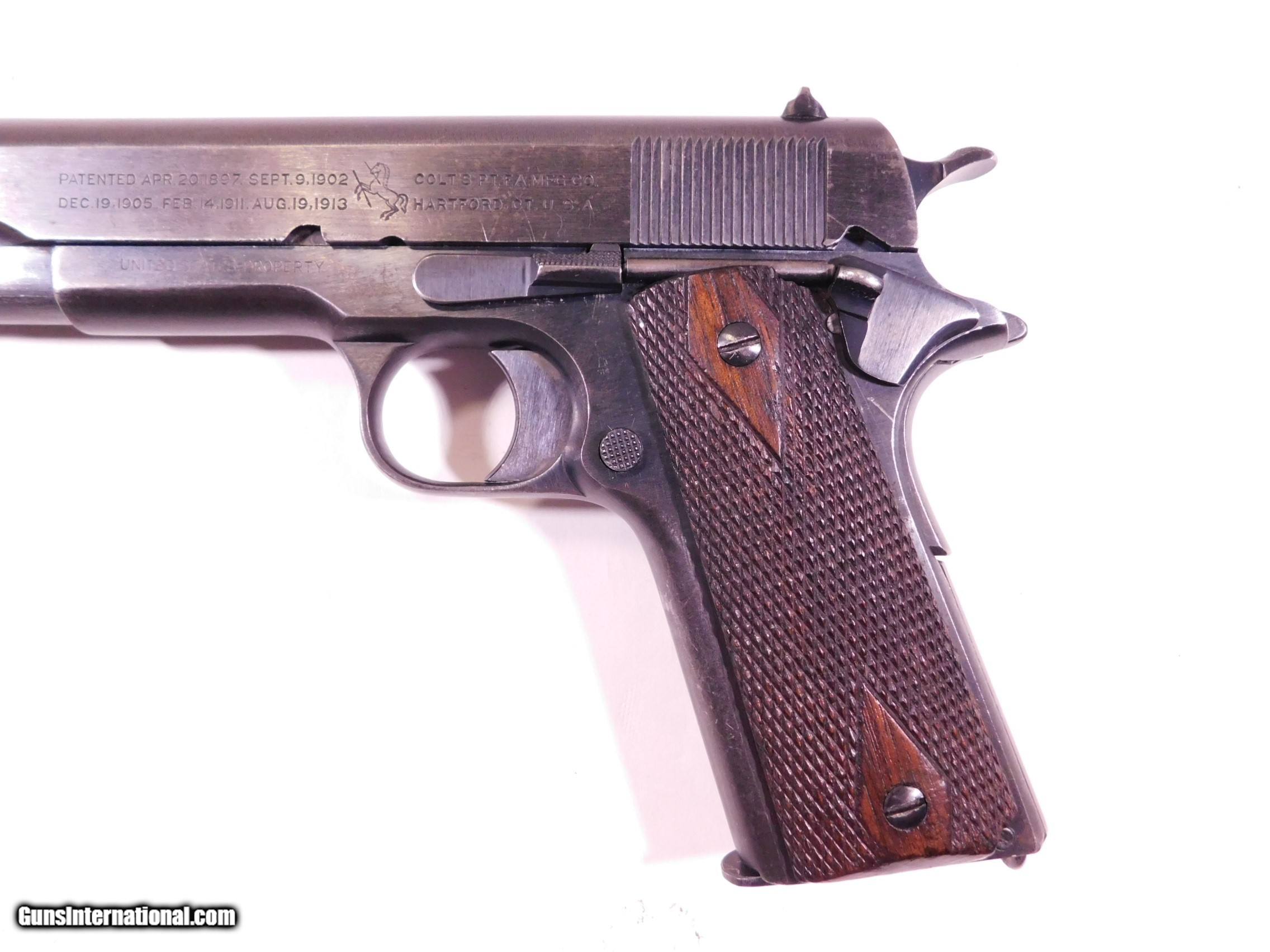 Description: Colt 1911 45acp manufactured 1918, original finish , correct two tone mag, grips hammer and small parts matching, barrel marked H P . This is an honest WWI 1911 , shows moderate use . The bore is 8-9 out of 10. Price $3495 and $55 shipping and handling. SOLD Manufacturer: colt Caliber Info: 45 Condition: great |