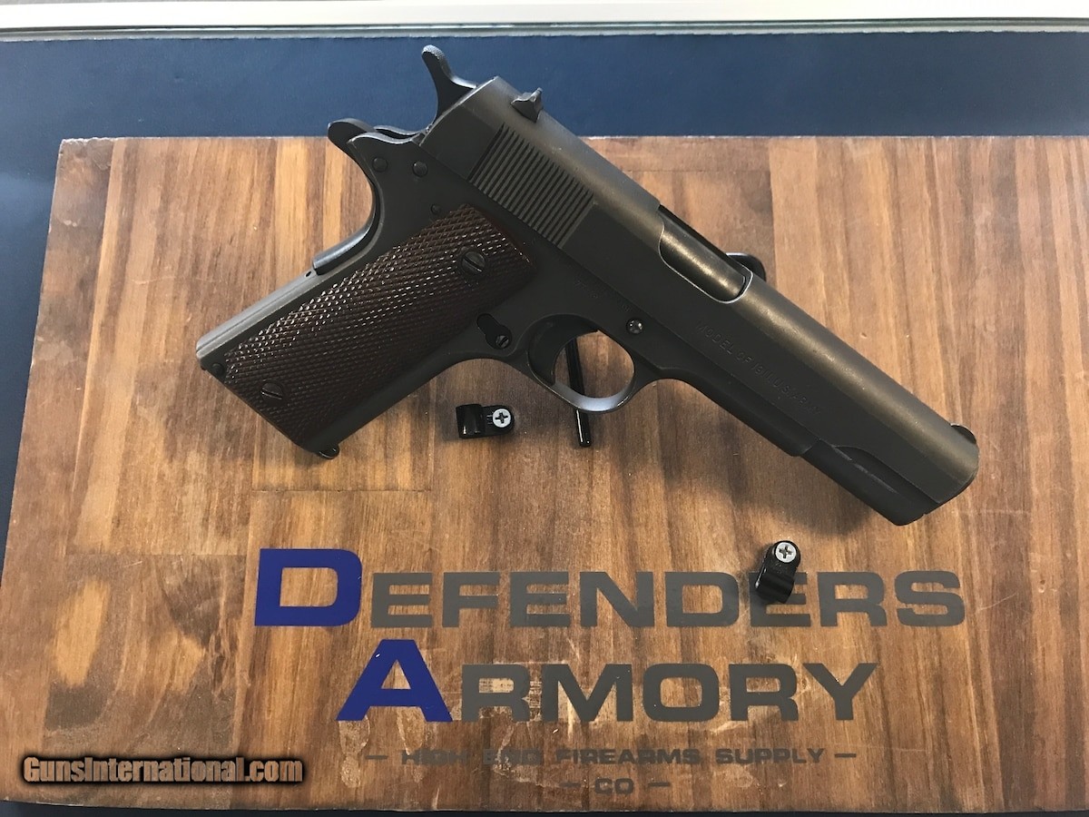Description: Guns Listing ID: 566594 Colt 1911 marked United States Property, Manufactured in 1918, comes with one mag SOLD Manufacturer: COLT Model: 1911 1939 PRE WAR PRODUCTION Caliber Info: .45 ACP Condition: Used - Non-Certified Barrels: 5 BARREL Finish: PARKERIZED |