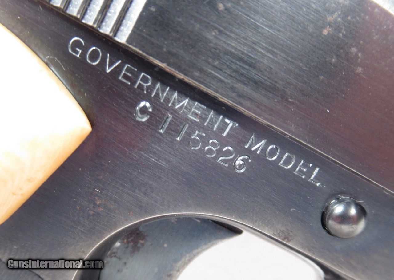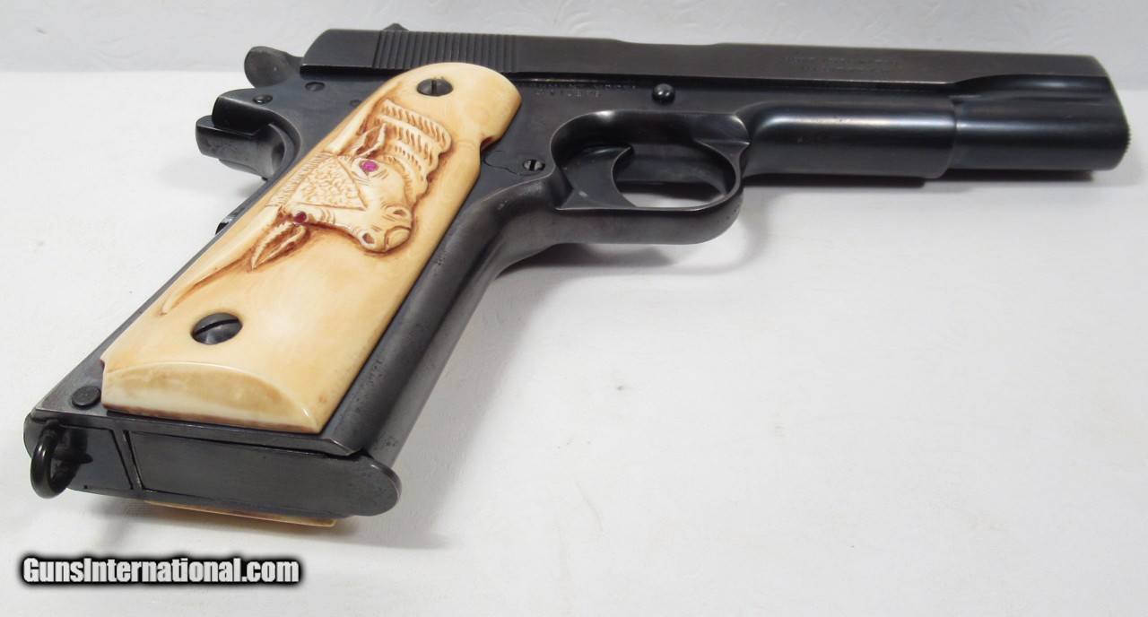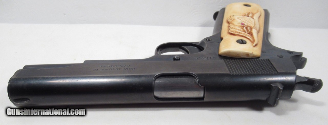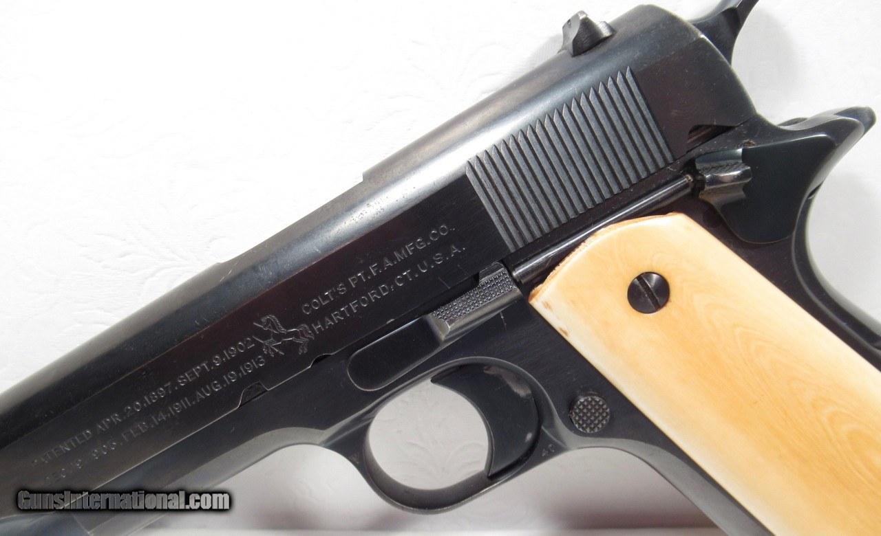 Description: Colt 1911 Commercial 45 Auto; Serial No. C115826; Made 1919; Beautiful Early 1911 with Most of the Hi-Luster Colt Blue Present; OUTSTANDING Carved Ivory Grips from the Collection of Late Texas Oil Man & Rancher Chet Downs; Beautiful All Matching 100 Year-Old Texas Colt Auto; FFL/C&R required for shipping; Price includes insured shipping; Attention Texas Buyers: We Must Collect 6.75% Sales Tax; SOLD Curio/Relic: Yes Manufacturer: Colt Model: 1911 Serial Number: C115826 |
