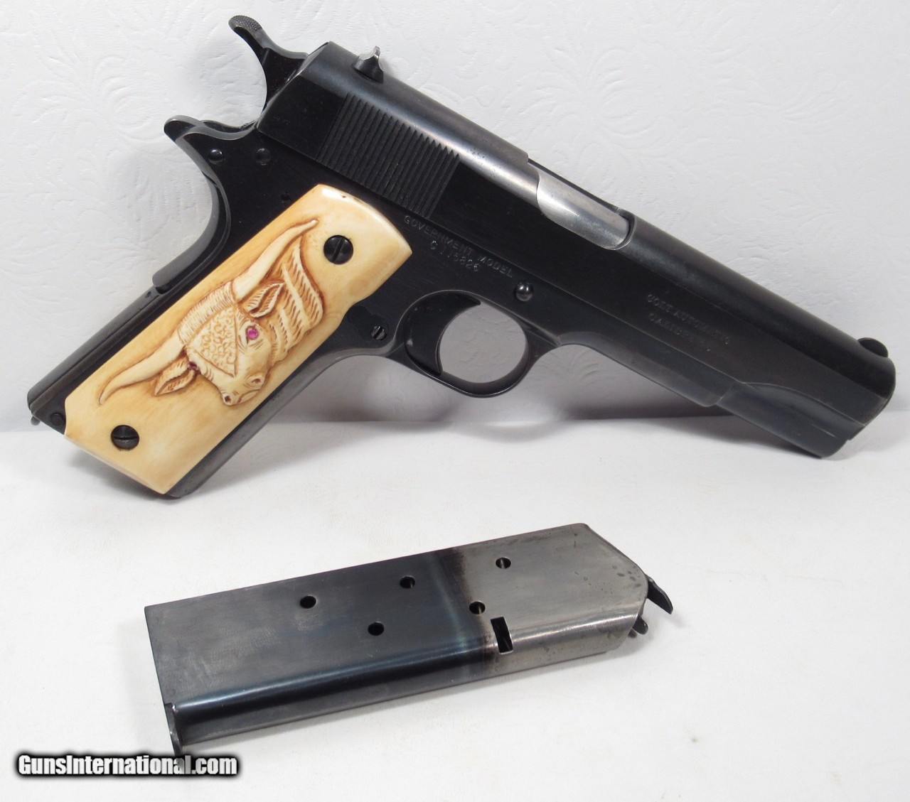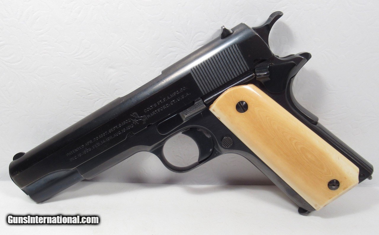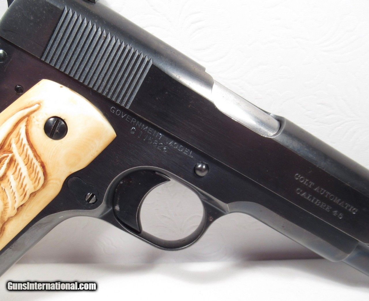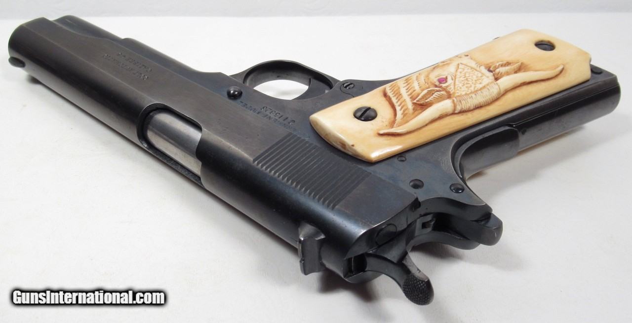 Description: Colt 1911 Commercial 45 Auto; Serial No. C115826; Made 1919; Beautiful Early 1911 with Most of the Hi-Luster Colt Blue Present; OUTSTANDING Carved Ivory Grips from the Collection of Late Texas Oil Man & Rancher Chet Downs; Beautiful All Matching 100 Year-Old Texas Colt Auto; FFL/C&R required for shipping; Price includes insured shipping; Attention Texas Buyers: We Must Collect 6.75% Sales Tax; SOLD Curio/Relic: Yes Manufacturer: Colt Model: 1911 Serial Number: C115826 |
