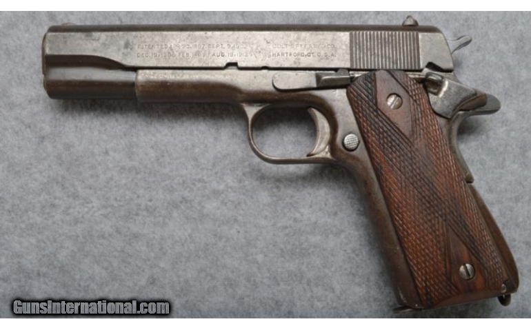 Description: Colt 1911 .45 ACP military side arm. This gun is almost 100 years old and was part the WW1 mass production. SOLD Manufacturer: 1918 Caliber Info: .45 ACP Metal Condition: Good Bore Condition: Good Barrels: 5 inches Triggers: Factory, SA Stock: Hand grips look newer than the rest of the gun Weight: 39 ounces Sights: blade and notch Item Location: Fort Mill, SC |