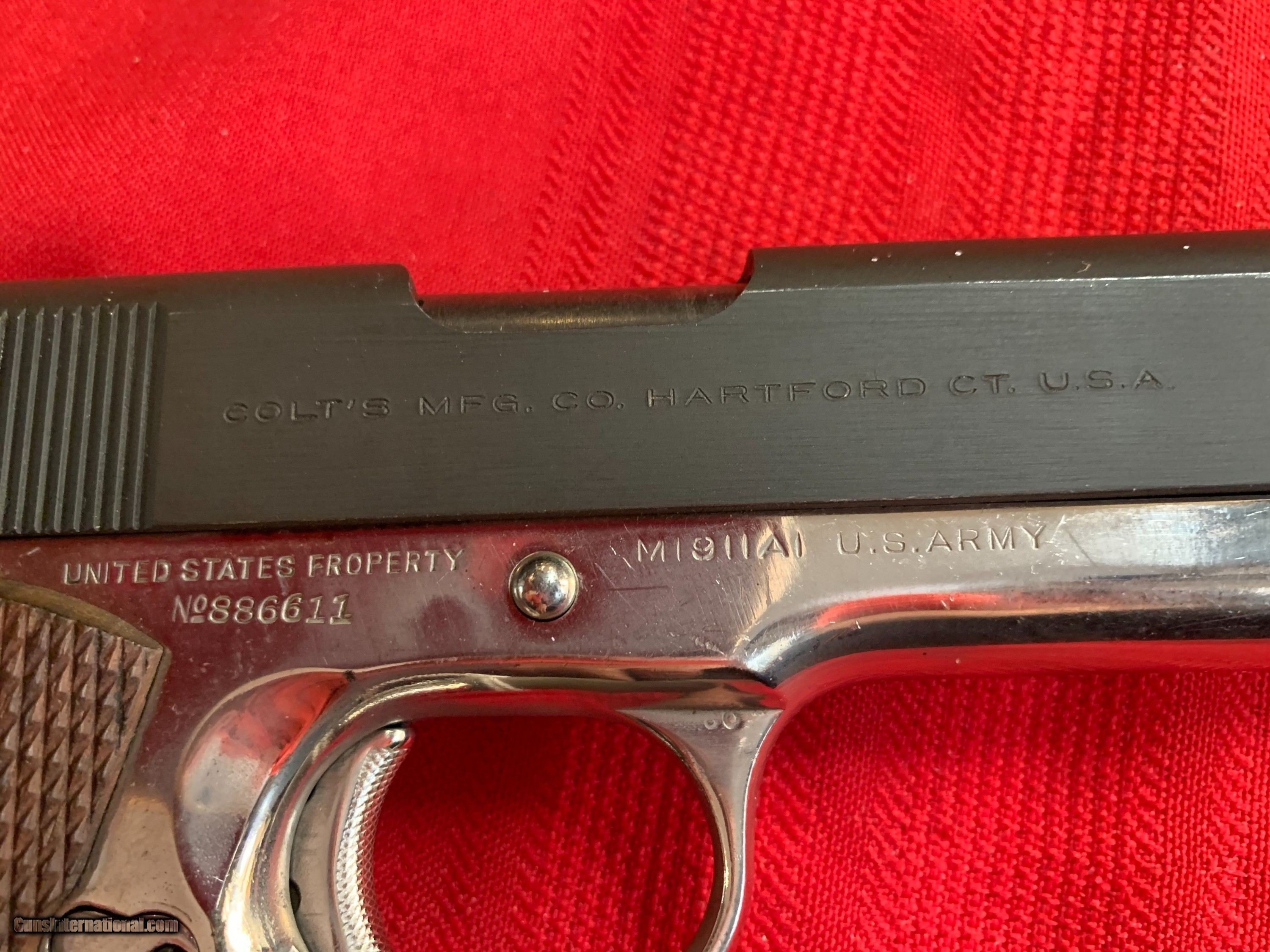 Description: 1943 1911 A1 45 ACP. Nickeled frame. New slide and barrel. SOLD Curio/Relic: Yes Handgun Caliber: .45 ACP (.45 Auto) |
