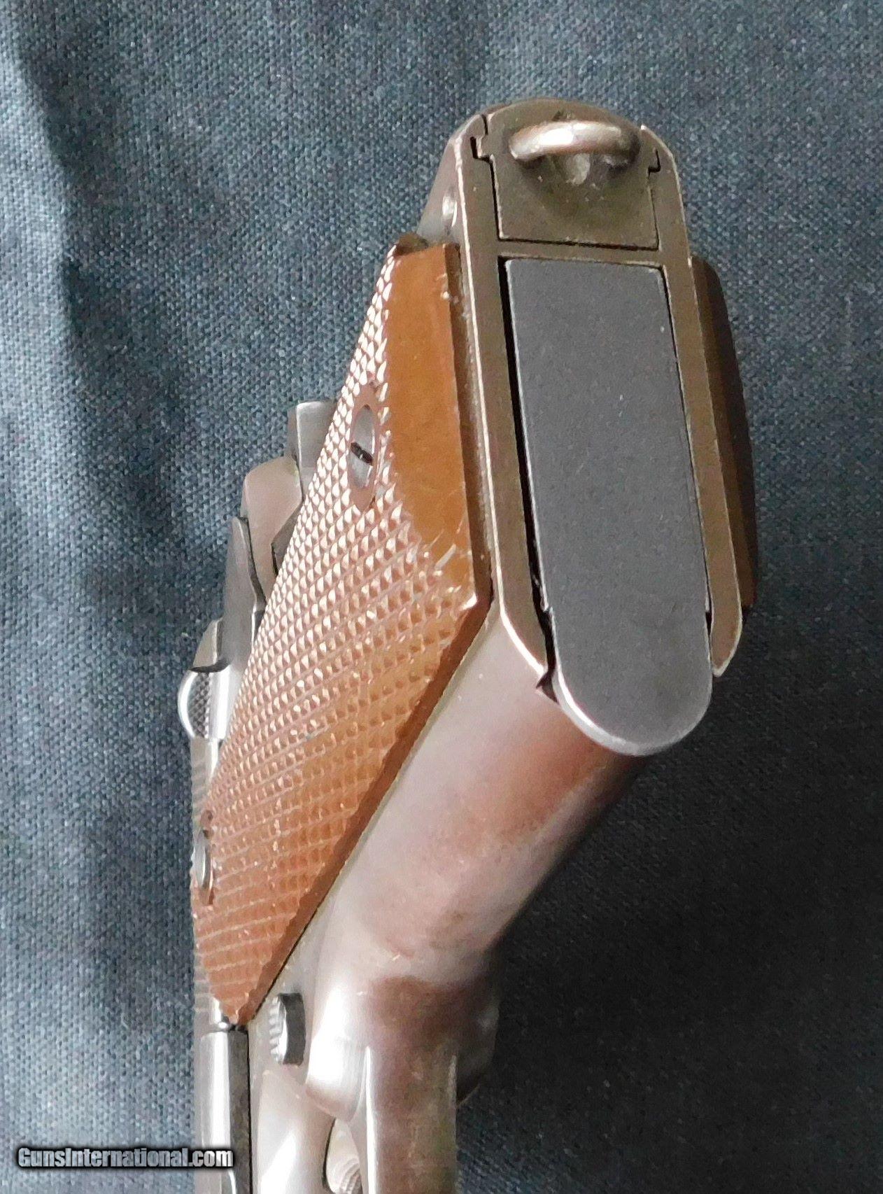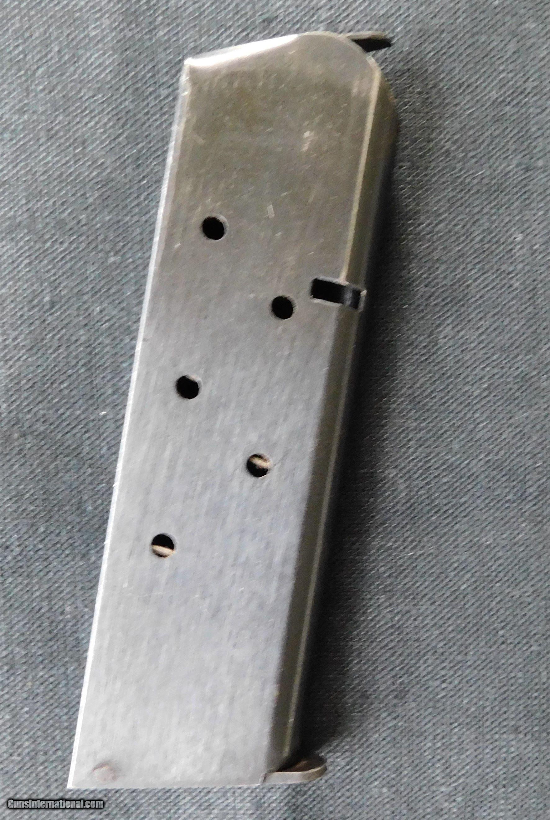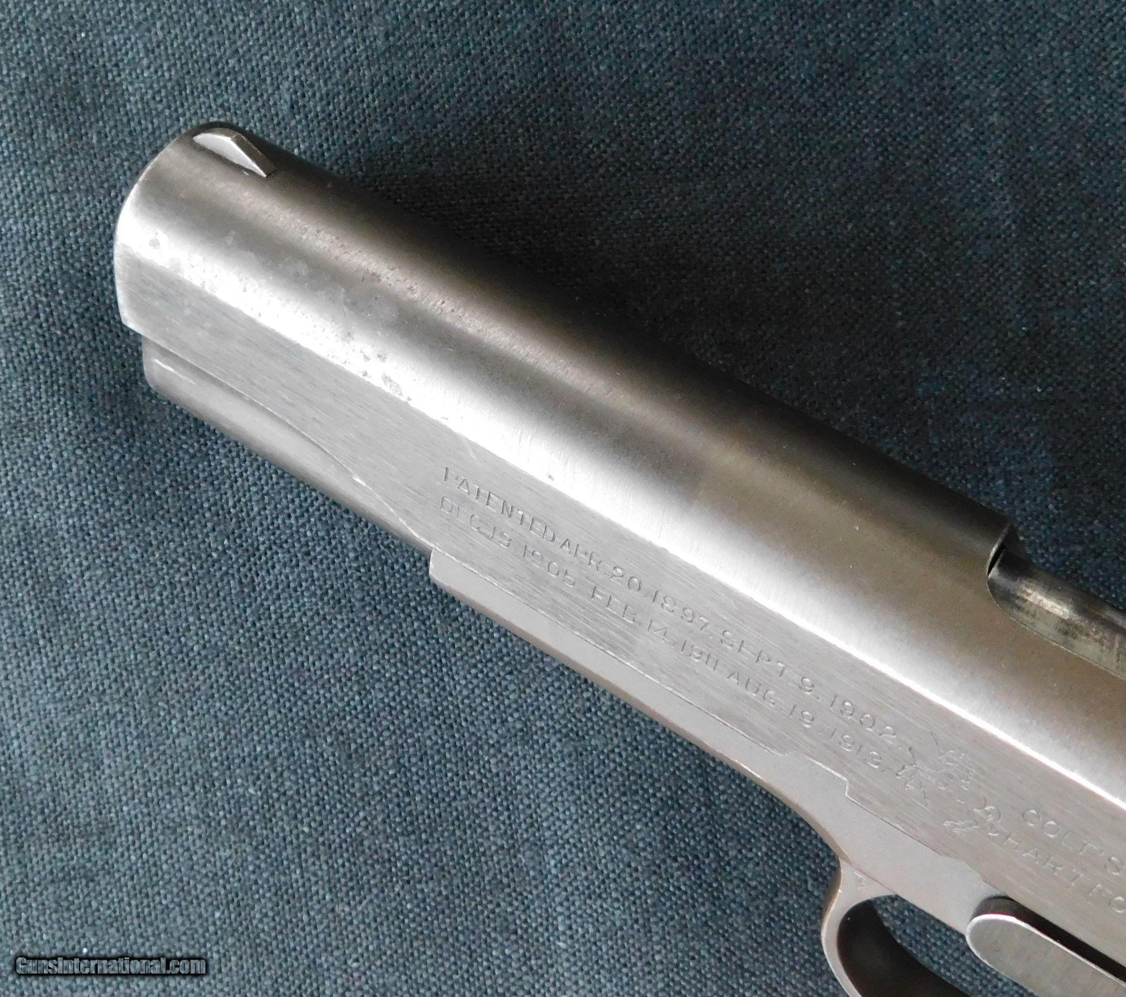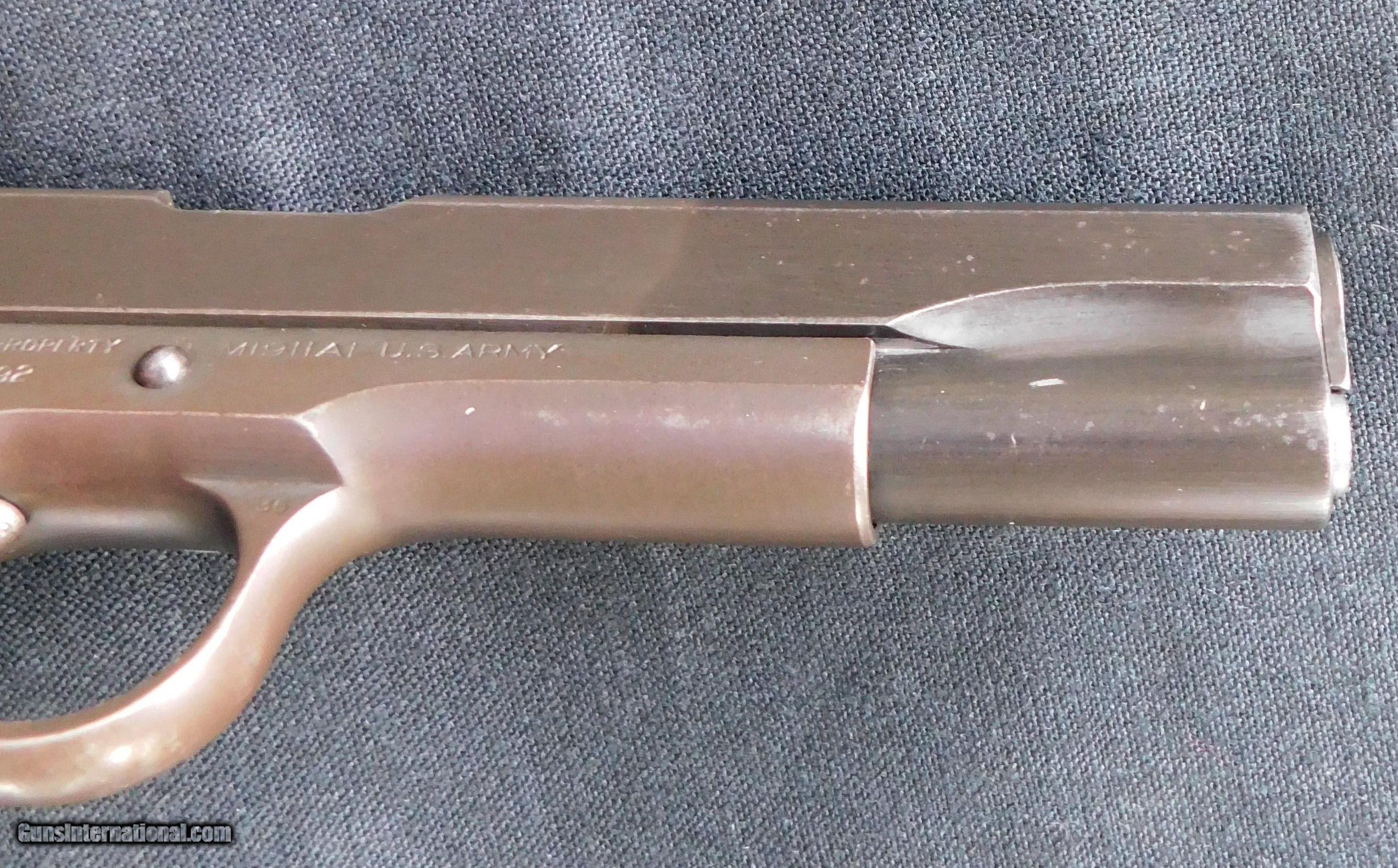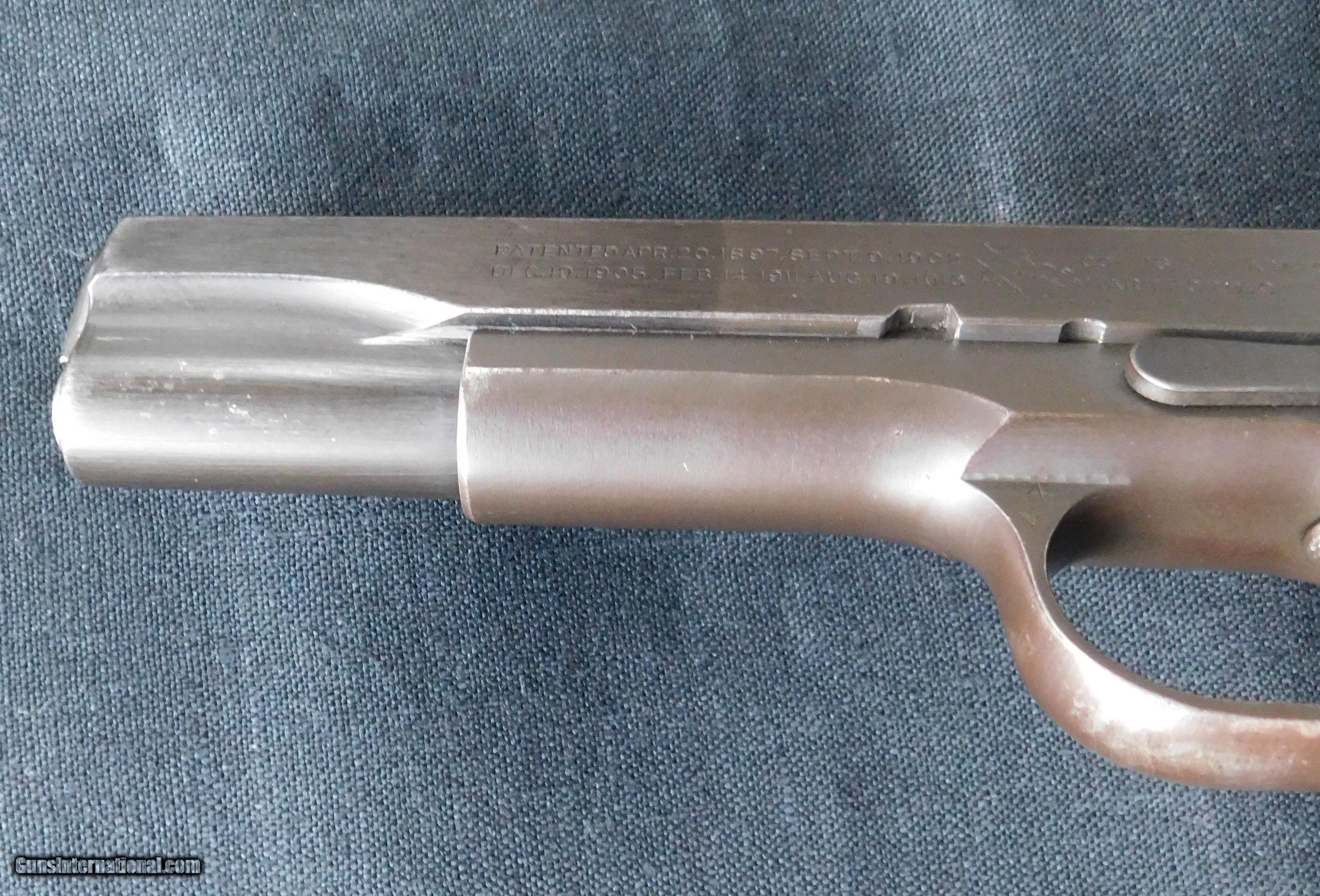 Description: Colt 1911 A1 .45 WW2. Serial # 2,307,892. The slide is brushed. The frame has the sand blasted appearance. Correct for this late war model. Both slide and frame have the Parco-Lubrite finish. The frame’s bullet ramp is not polished down to metal (like Parkerized frames) - it retains its Parco-Lubrite finish. The slide is not numbered which is correct for these late guns. Barrel lug has a 'C' in a square on right side and 'P' on the left side. At the muzzle end of the slide, in the darkened area only, there are spots of light pitting. I’ve tried to highlight those areas in the pictures. With the gun in hand, those areas are not very noticeable and don’t take away from the appearance. The front strap and bottom of the trigger guard show thinned blue. Some high-edge wear. Good bore. Magazine has no markings that I can see. A very nice & clean example of a late war Parco-Lubrite gun shipped on April 16, 1945 to Springfield (per Colt). All correct and original. Credit cards, money orders, certified check or personal check. Please add 2.5% when using a credit card to offset some of our bank’s fee. Personal checks are fine, shipment may be held for a few days. We ship only to an FFL or FFL-C&R holder. USPS insured Priority Mail - buyer pays $40 for lower 48. 3-day inspection period. If not satisfied – full refund (except for shipping and credit card fees) when returned in the same condition as received. We provide no warranties of fitness for use. Have a gunsmith inspection before firing. Please let us know if you have any questions. You can email or call Sam at 828-608-0011. We are required to collect sales tax of 6.75% from North Carolina buyers. Thanks for considering. SOLD Curio/Relic: Yes Manufacturer: Colt Serial Number: 2,307,892 Caliber Info: .45 Bore: Good |