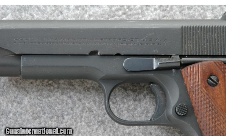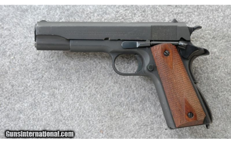 Description: SOLD Caliber Info: .45acp Metal Condition: Non original Parkerized finish in good condition with wear on the sharp edges, some scuff marks and scratches Wood Condition: Replacement grips in good condition Bore Condition: Poor, worn and rough Barrels: 5 inch Weight: 38 oz. Sights: U notch rear, blade front Item Location: Lehi, UT |