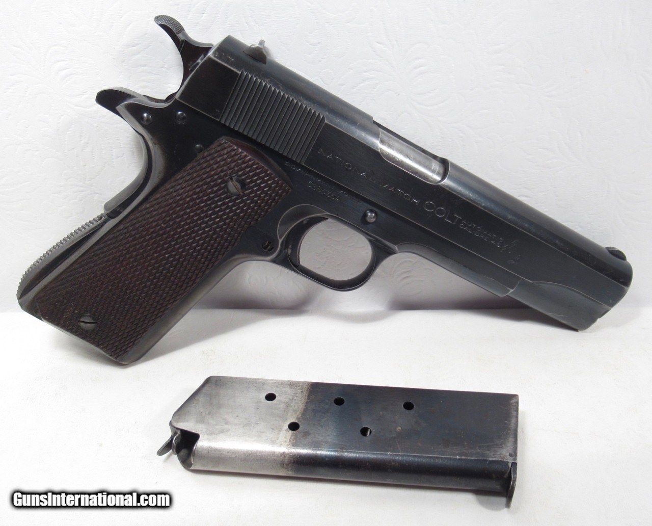 Description: Colt 1911 A1 Semi-Auto 45 ACP Pistol; Serial No. C185564; NATIONAL MATCH!! Factory Letter Indicates Shipped to Seattle, Washington in 1937 with a Special 1/8” Front Sight; Really High Condition (See Photos); Perfect Action & Bore; LIQUIDATING PERSONAL COLLECTION; Price: $7,500 Shipped; Price includes insured shipping; return policy: three days inspection from the date the items received; full refund of shipping both ways ONLY IF THE ITEM IS MISREPRESENTED. SOLD Manufacturer: Colt Model: 1911 Serial Number: C185564 |