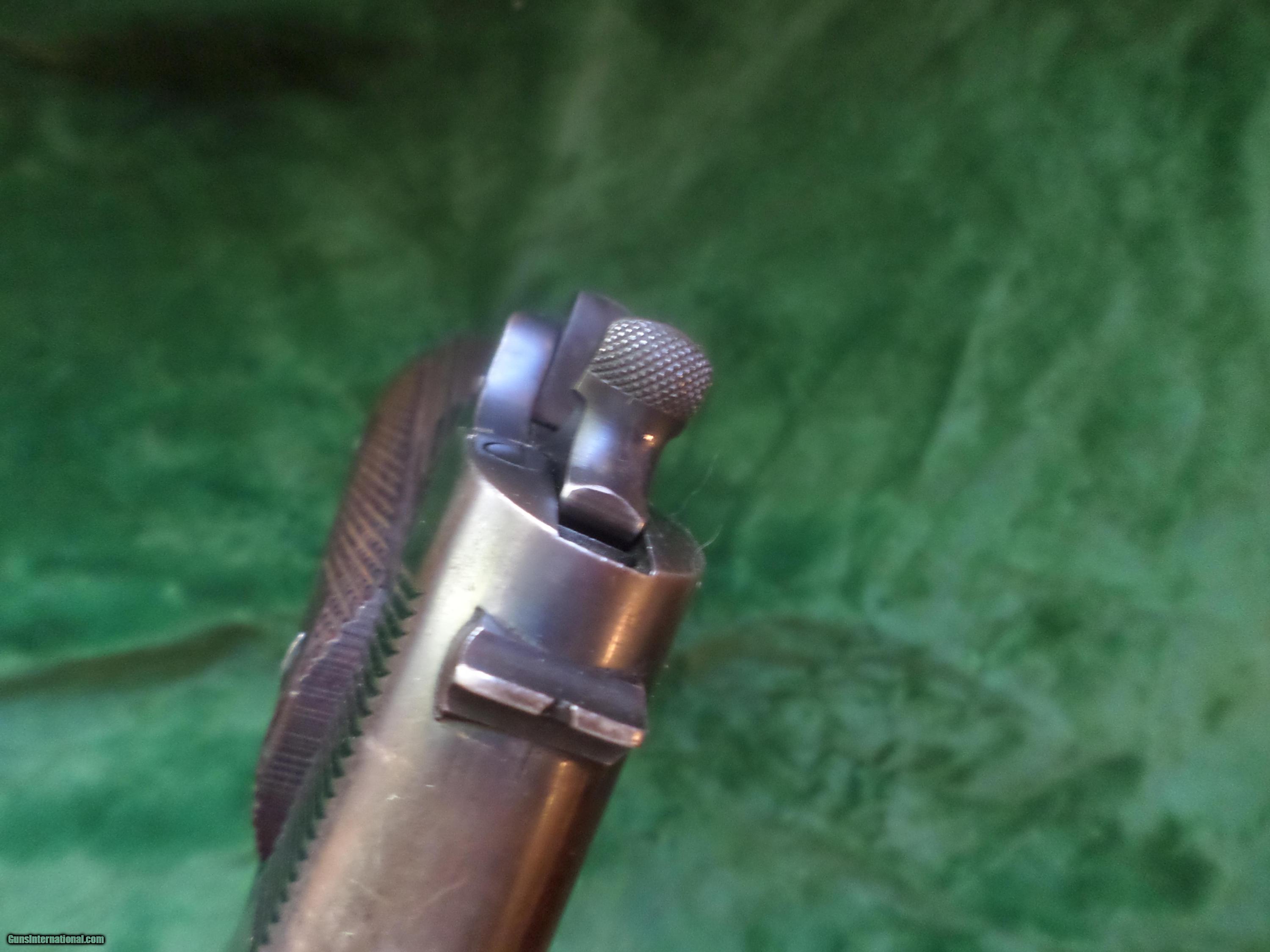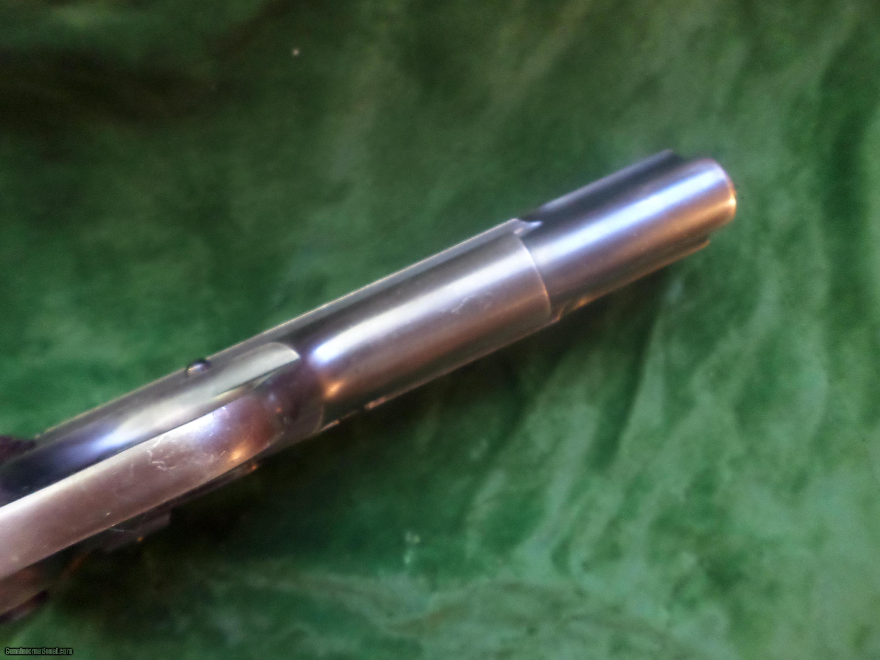 Description: Extra nice Colt 1911 with 70% original Colt blue. Serial # C97572 (1917 mfg.) nearing 100 years old. Only 22,000 1911's were produced and many were sold to Foreign markets. The original finish is excellent considering the guns age. Some bright areas, brown/gray patina on the grip straps, some light dings and scratches and handling wear. No pitting. The bore is bright with strong rifling. Action is fine and tight; no rattle. Sharp markings w/ the V and M Colt inspector mark. Replaced WWII Flannery barrel. Grips are excellent with minor scuff marks. WWI 2 tone pinned lanyard loop magazine (replacement). The 1911 Colts are the finest pistol ever made, and now they make a great investment and very collectable in all conditions. C&R to ship. Buyer pays all shipping. $37 US priority mail in the US. Please ask questions.3 day, shooting, inspection. Lay-a-way plan available. SOLD Curio/Relic: Yes |