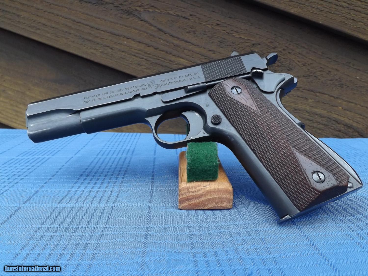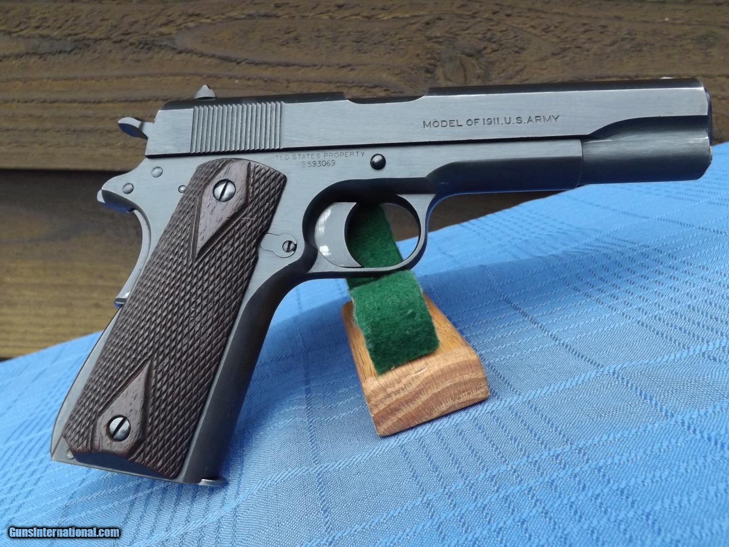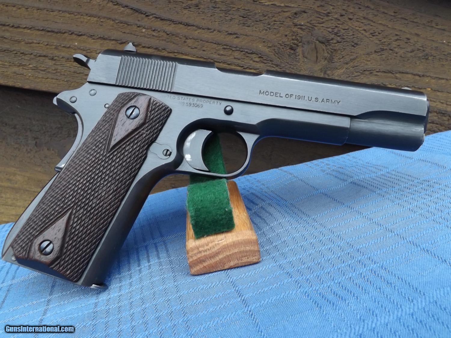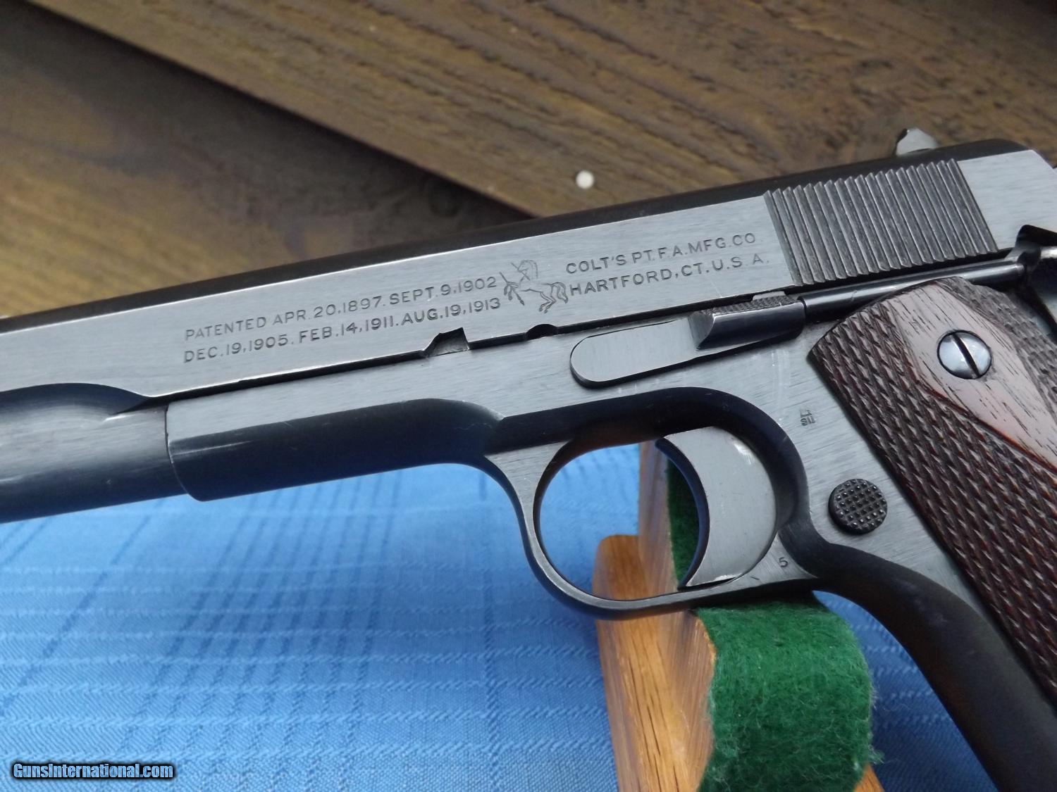 Description: COLT 1911 WW1 ORIGINAL. ISSUED IN 1919 . NICE ORIGINAL GUN IN 97% ORIGINAL CONDITION. THIS GUN IS ALL MATCHING AND CORRECT 1919. CORRECT H TOUCHING P INSPECTOR STAMP ON BARREL. ORIGINAL CORRECT MAGAZINE. 100 % ORIGINAL 1919 ISSUED COLT 1911. MECHANICS AND BORE ARE EXCELLENT. LOCKS UP LIKE A NEW GUN ! THIS IS A HARD GUN TO FIND ! NOT AS COMMON AS A 1918,1917 ISSUE. PLEASE TAKE A LOOK AT MY PHOTOS AND PLEASE EMAIL ME WITH ANY QUESTIONS ? 3 DAY INSPECTION AS ALLWAYS ! BUYER PAYS ACTUAL SHIPPING COST. SOLD Curio/Relic: Yes Manufacturer: COLT Model: 1911 Serial Number: 593,069 Caliber Info: 45 AUTO Bore: EXCELLENT Condition: EXCELLENT PLUS Metal Condition: EXCELLENT PLUS Bore Condition: EXCELLENT PLUS Stock: CHECKERED WOOD Item Location: TAMPA ,FL. 33556 |