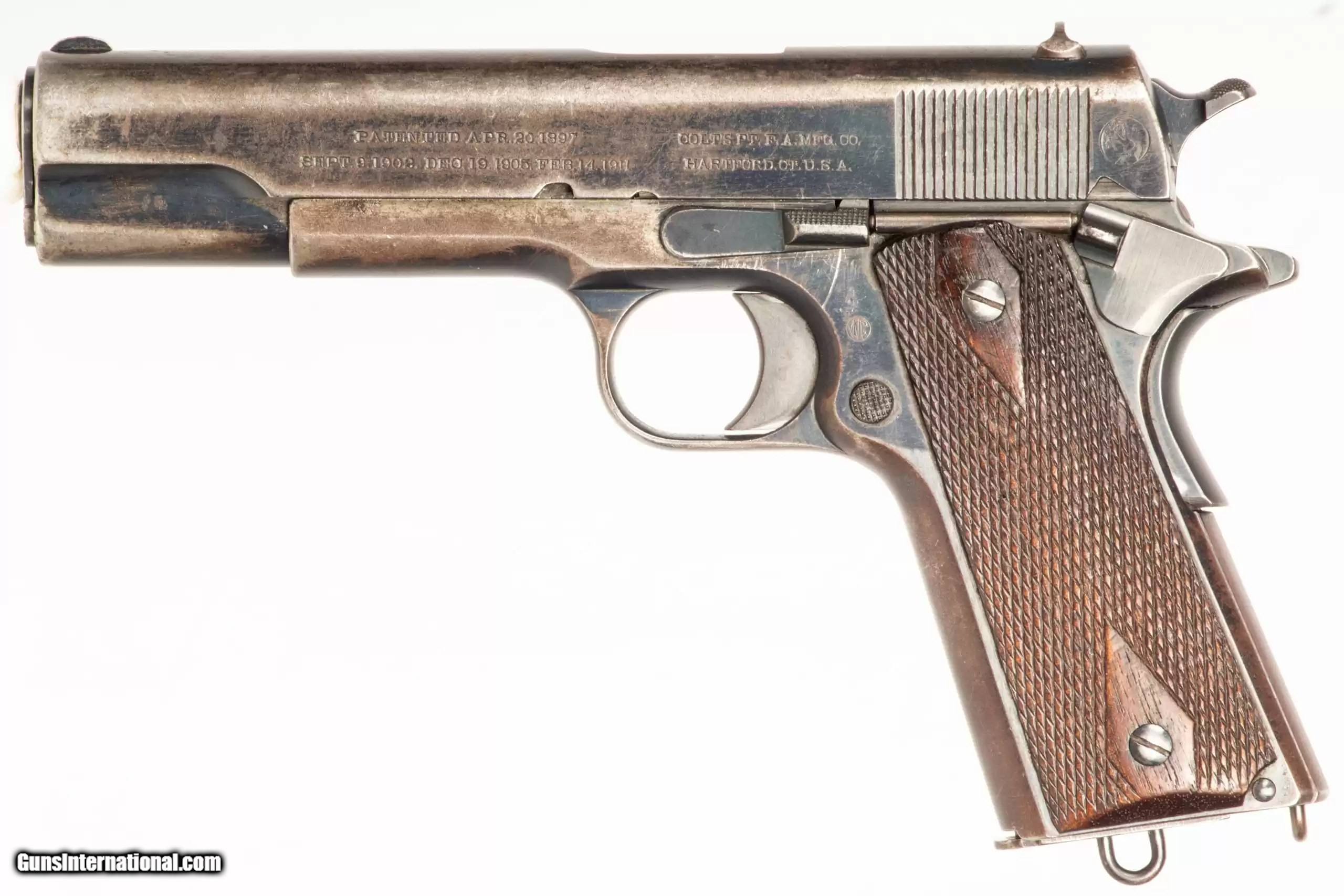 Description: Colt model 1911 US Army manufactured in 1913, chambered in 45ACP. This pistol sports a 5 inch barrel and features a dull bore and well defined rifling. The NRA grading condition for this USED firearm is Good. We ship domestically in the United States. Additional shipping rates apply to Alaska and Hawaii. Dury's Lifetime Warranty: All firearms purchased from Dury’s Gun Shop, NEW or USED, are covered by a lifetime warranty. We will repair or replace, at our discretion, any firearm purchased from Dury’s Gun Shop, Inc. for as long as it is owned by the purchaser. This warranty is not transferable. WE BUY GUNS! NO COLLECTION TOO BIG OR SMALL FOR OUR GUNSINTERNATIONAL CUSTOMERS ALL OF OUR FIREARMS CAN BE PURCHASED DIRECTLY FROM OUR DURY'S GUNS SITE ! SOLD Curio/Relic: Yes Manufacturer: Colt Model: 1911 US ARMY Caliber Info: 45 ACP Barrels: 5inches |