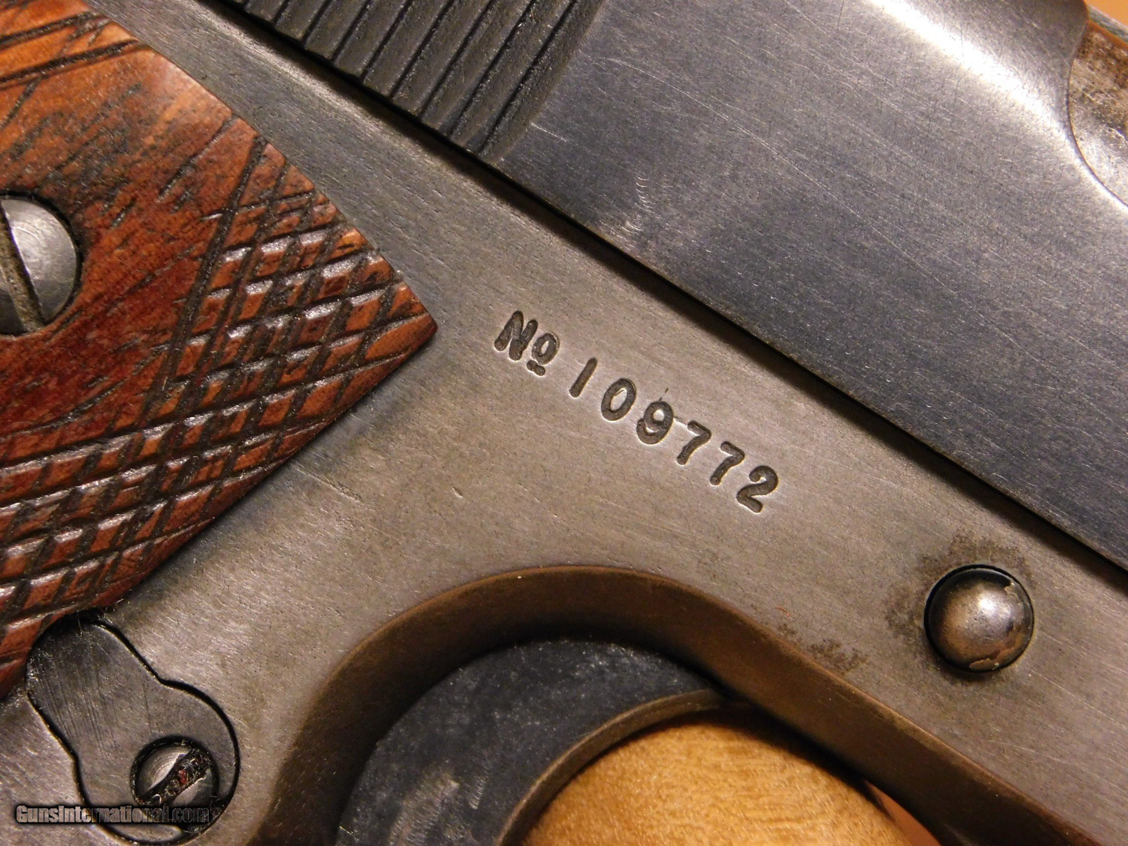 NFA Information Some items are regulated by the National Firearms Act (NFA). This includes, but is not limited to, short-barreled rifles, short-barreled shotguns, and suppressors. Please check with your local and state municipalities for any further regulatory requirements. It is the buyer’s responsibility to make sure they comply with all NFA rules and applicable laws. Such items MUST be transferred to a Class 3 FFL via a Form 3, and then transferred to you via a Form 4 from your local Class 3 dealer. The process of getting a Form 3 approved by the BATFE takes on average 6-8 weeks. Your patience is appreciated. SOLD Curio/Relic: Yes Handgun Caliber: .45 ACP (.45 Auto) Manufacturer: Colt Model: 1911 Serial Number: 109772 Barrel Length: 5 Manufacture Date: 1915 |