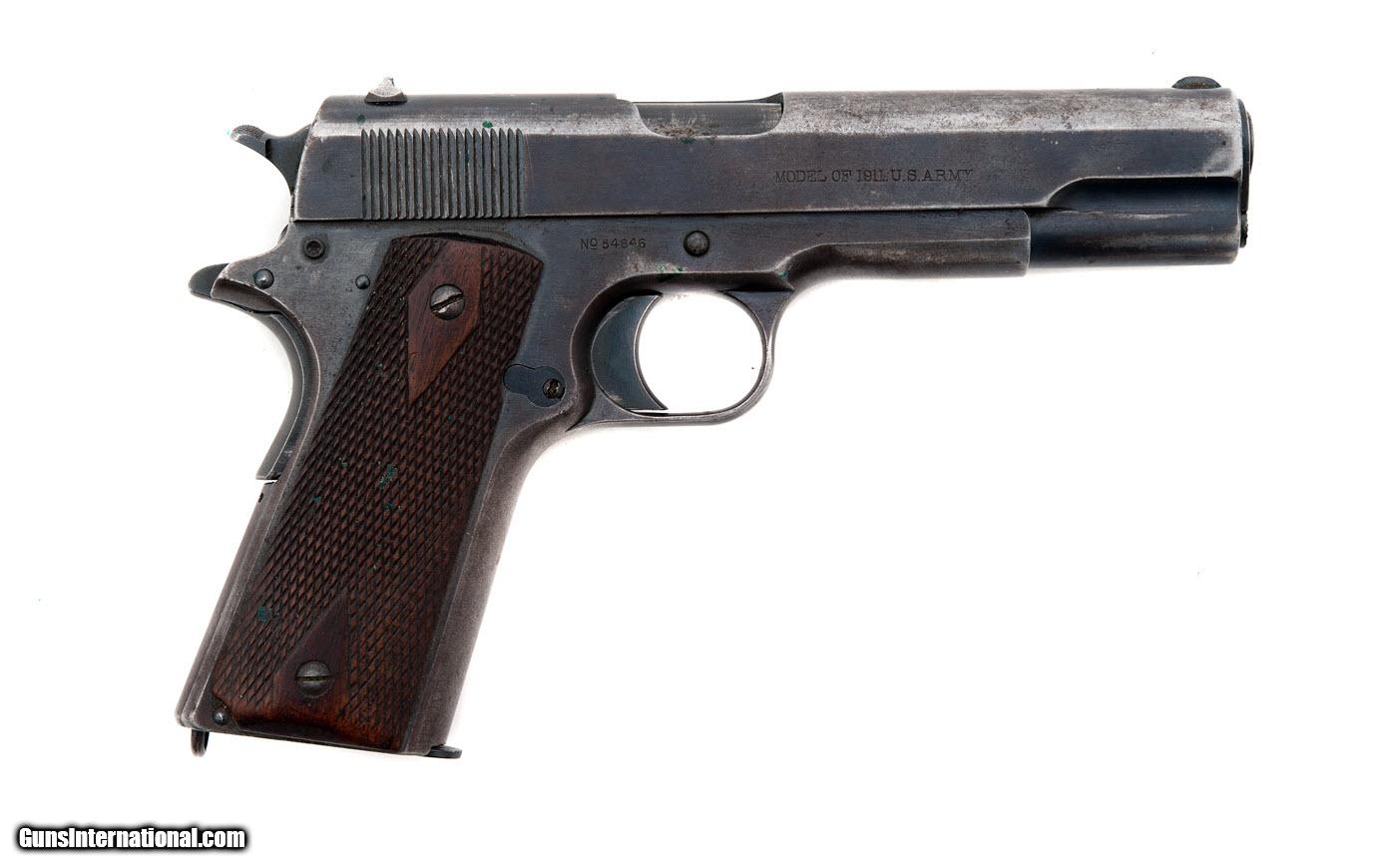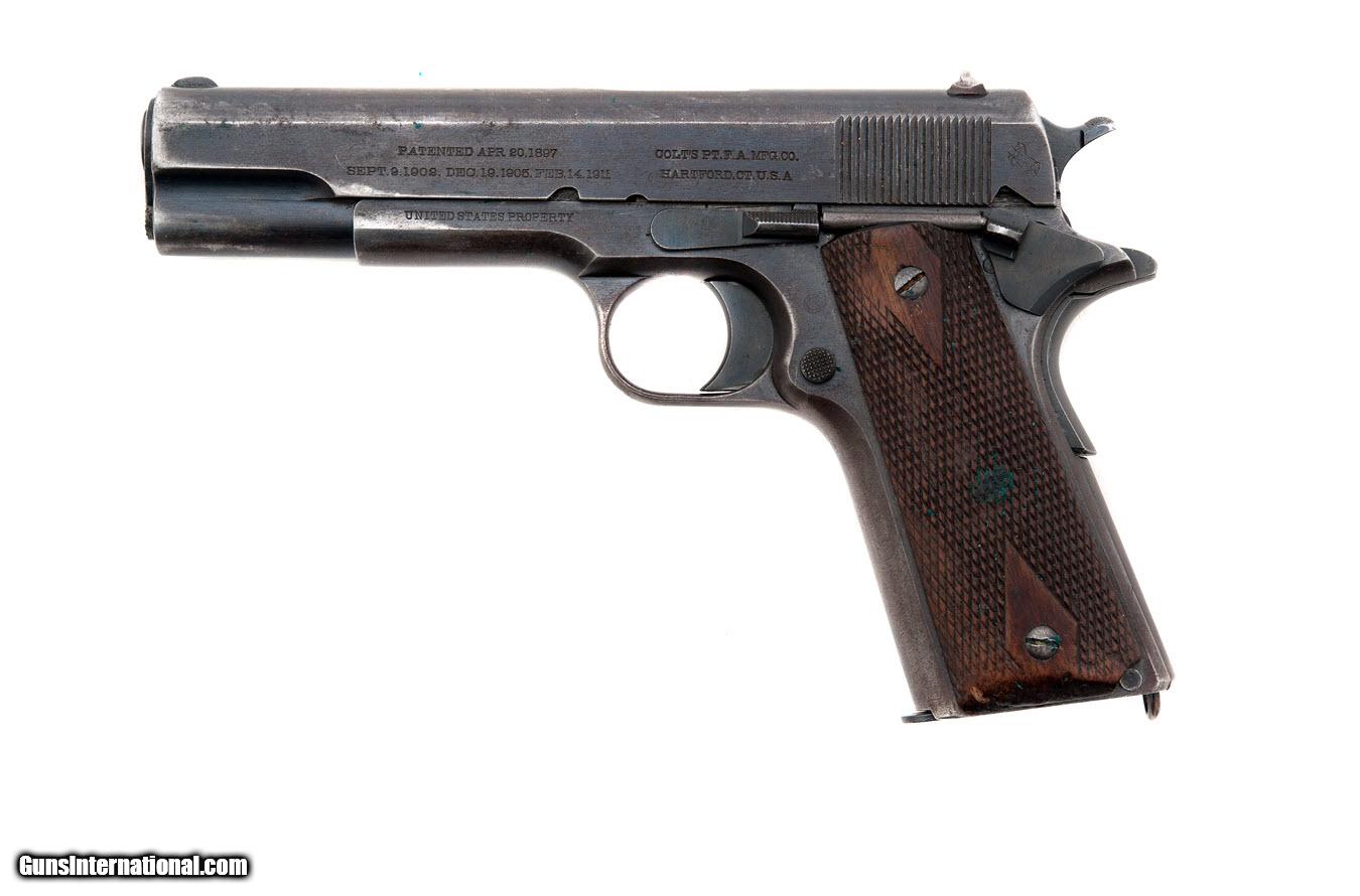 Description: Colt - 1911 - - Item Number: COL54846 Barrel length: 3.5 Finish: Blue Lop: NA Lbs: |/22| Ozs: 6 Overall condition: Average Stock condition: Average Metal condition: Average Stock:Original Metal:Original Type of Case: none Manufactured in: USA Manufacture Year: 1913 Comments: U.S. Army, one mag and holster. Average condition, slide is a little sloppy. HG-56 SOLD Curio/Relic: Yes |