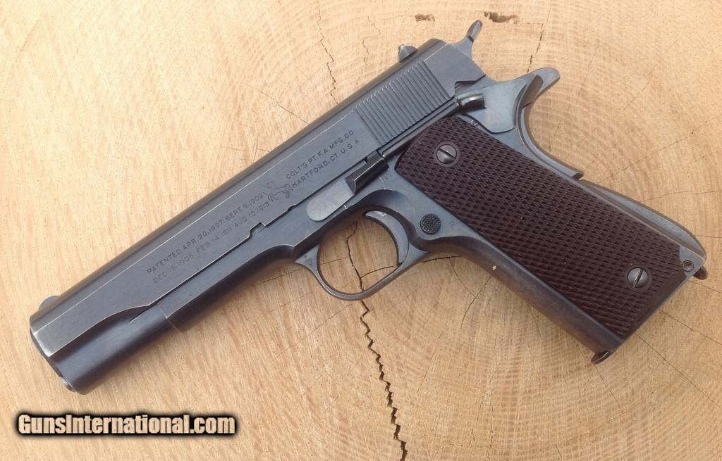 Description: Selling my Colt 1911A1 US Army 1940 CSR. Original Condition. Brushed blueing. Colt Rock Grips. Original Magazine reads “Colt 45 Auto”. Matching slide number to frame. Original barrel. Bore is strong. Some wear and light patina which normal for military guns to have. SOLD Curio/Relic: Yes Manufacturer: Colt Model: 1911A1 Caliber Info: 45 Bore: Strong Item Location: Long Beach CA |