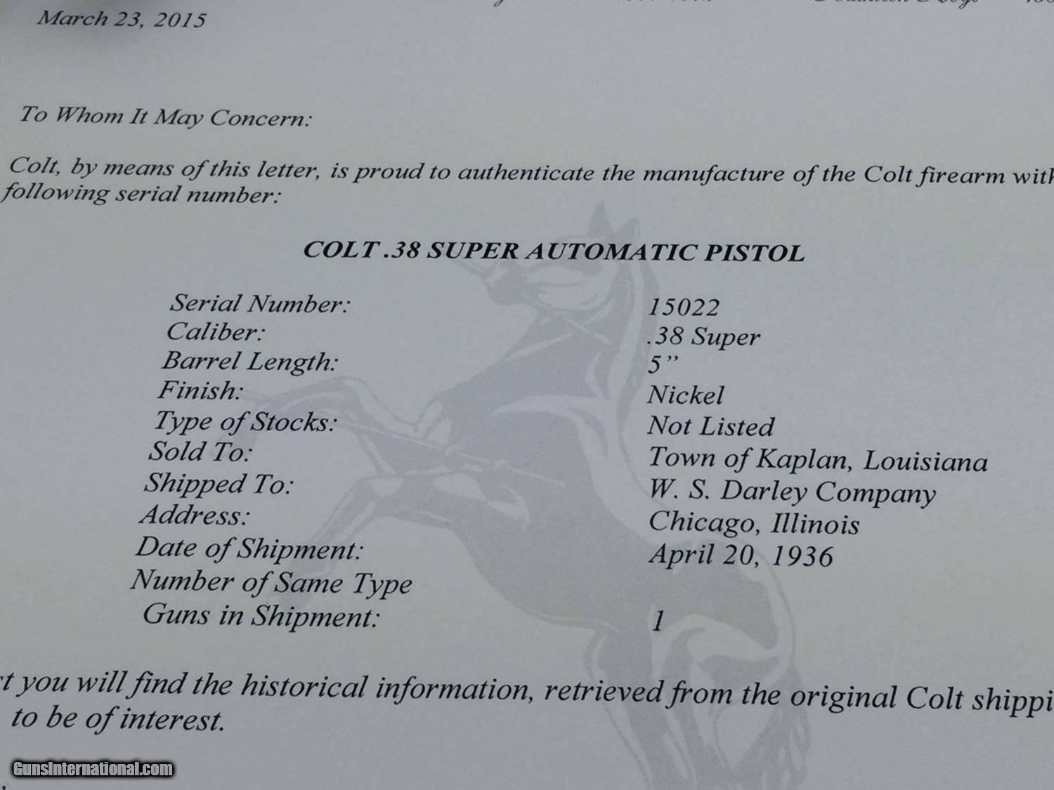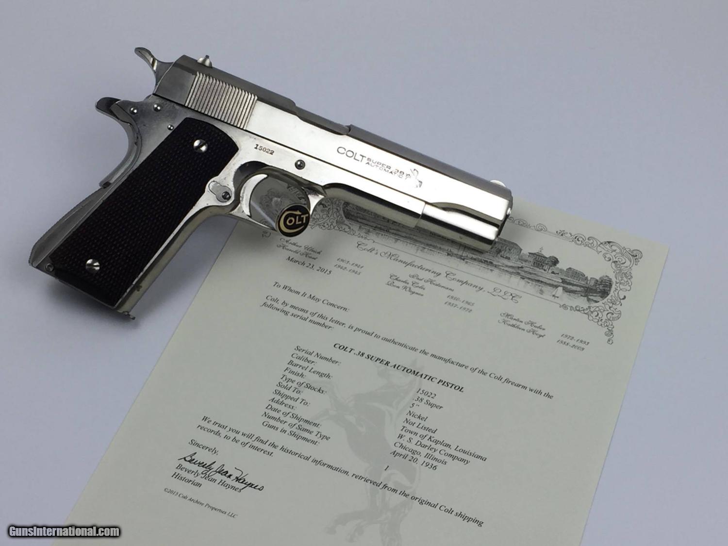 COLT 1911A1 38 SUPER ORIGINAL NICKEL W/ COLT LETTER PRE-WAR VERY VERY RARE!!!