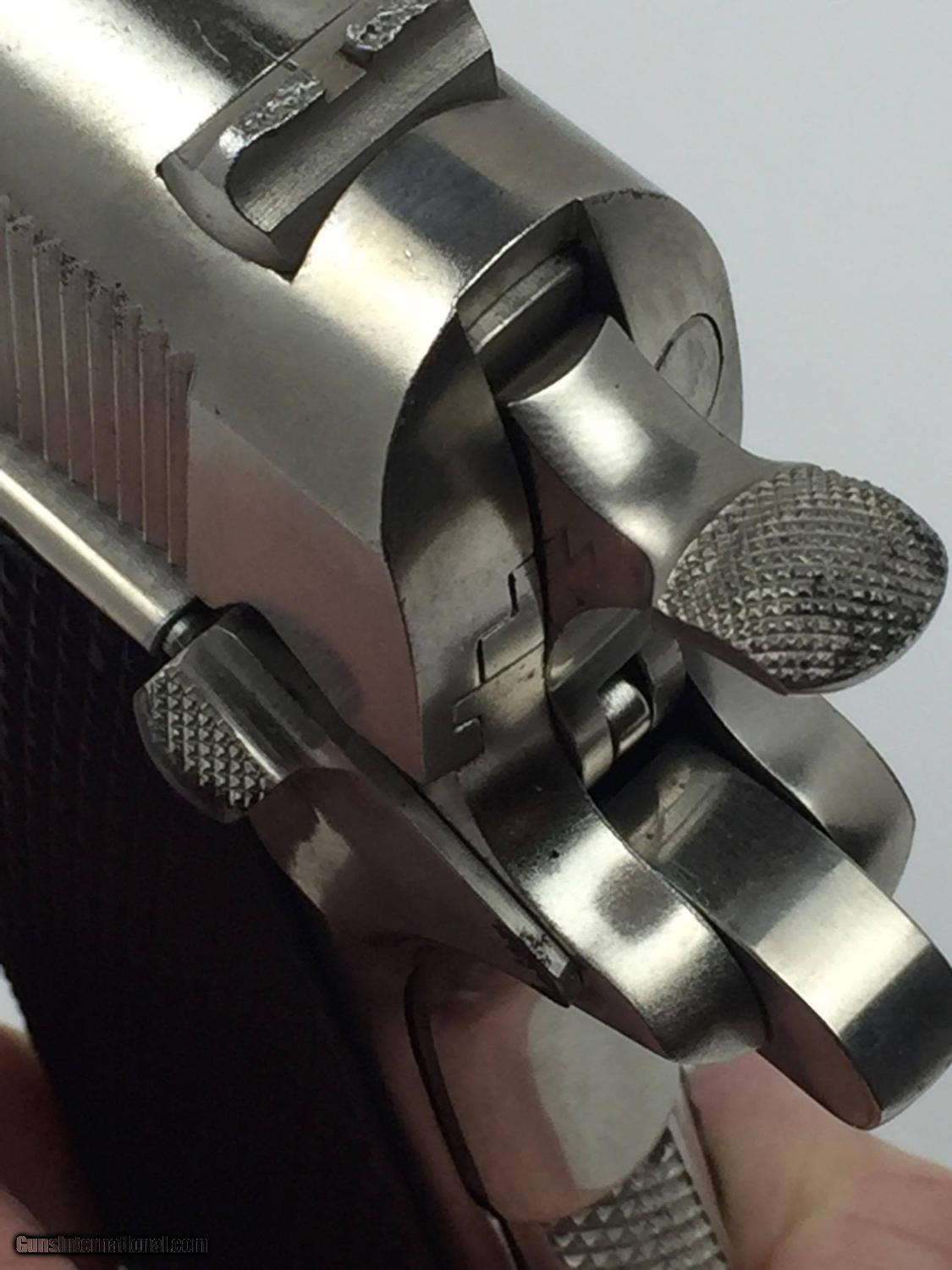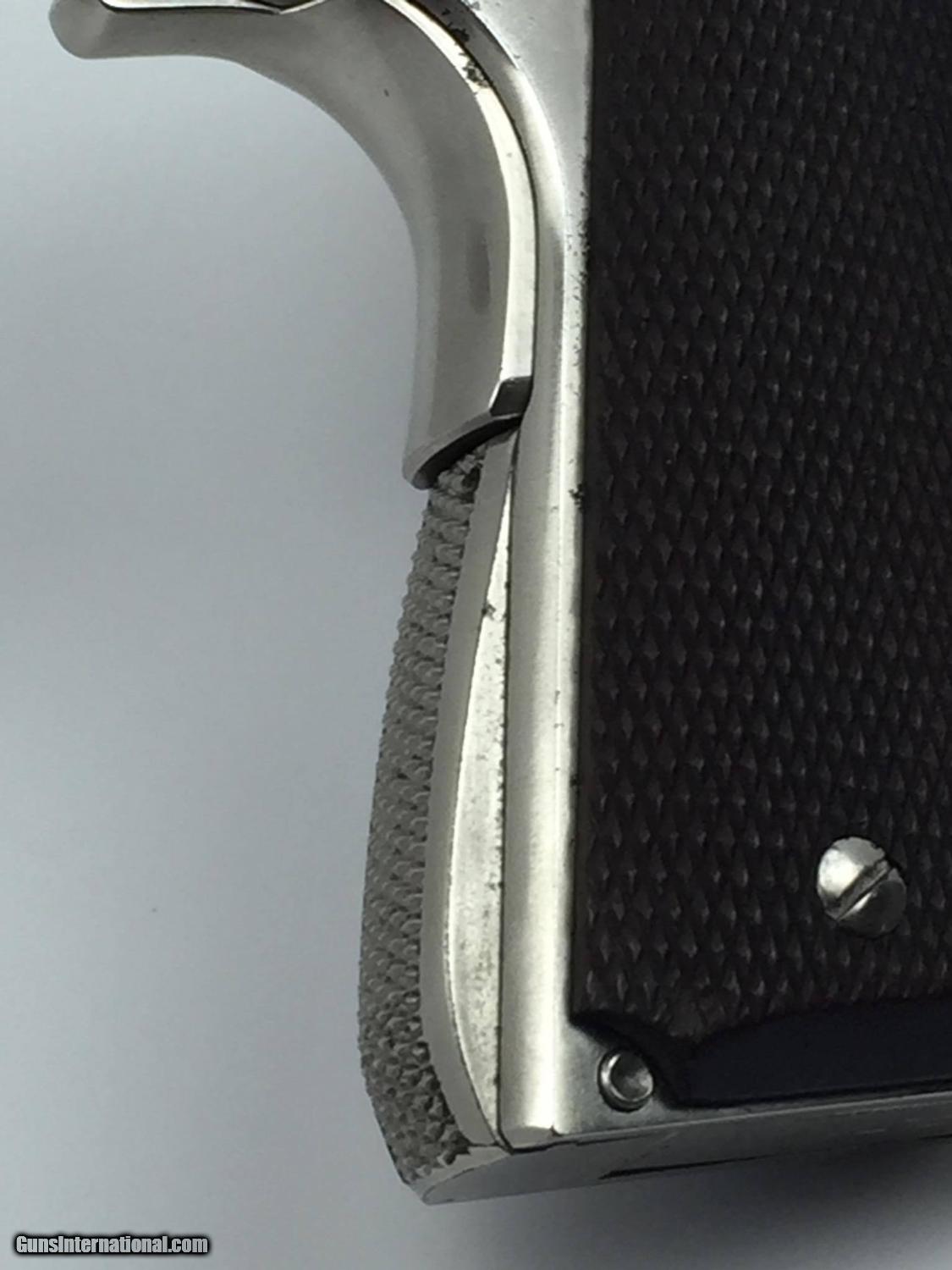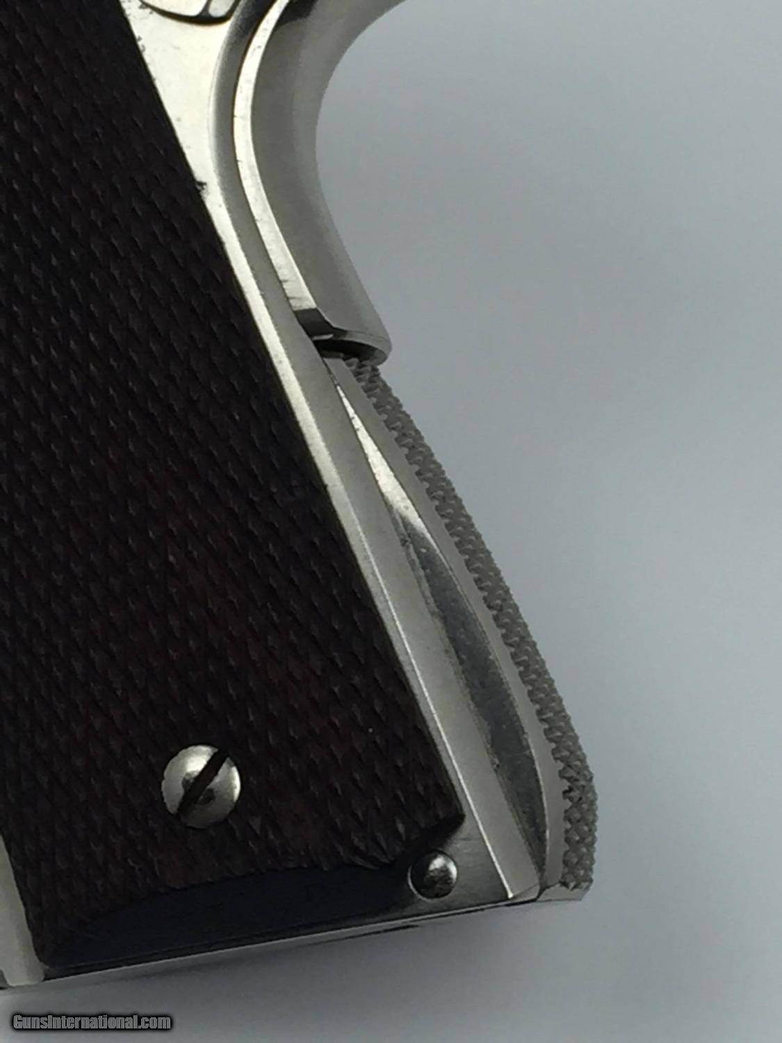 Description: 1933 COLT 1911 CHAMBERED IN 38 SUPER!!! THIS IS AN ORIGINAL FACTORY COLT NICKELED PISTOL! I DO HAVE THE COLT ARCHIVE LETTER TO VERIFY EVERYTHING. THE OVERALL CONDITION OF THIS IS 95%. ONLY 900 PRE-WAR NICKEL 38 SUPERS WERE MADE AND OVER HALF WERE SENT TO FOREIGN MARKETS FOR SALE. THAT LEAVES ONLY ROUGHLY 400 OF THESE WERE LEFT IN THE UNITED STATES. WITH HOW DELICATE THE NICKEL IS MOST OF THOSE WERE EITHER RE-NICKELED OR BLUED. TO FIND AN ORIGINAL NICKEL FINISH IS EXTREMELY RARE. AT BEST THERE ARE MAYBE 50-75 OF THESE THAT ARE MAYBE STILL AROUND IN THE COUNTRY BUT ITS HIGHLY DOUBTED. THIS IS A ONCE IN A LIFETIME BUY!!!! DONT MISS OUT! ALL LOCAL, STATE AND FEDERAL LAWS APPLY. PLEASE KNOW YOUR LAWS AS NO REFUND WILL BE GIVEN BACK TO PURCHASER WHO IS NOT ALLOWED TO OWN THIS FIREARM. FOR QUESTIONS CALL ALBERT AT OR .FOR INFO ON THE LAYAWAY PLEASE ASK. THERE IS A CREDIT CARD PROCESSING FEE. PLEASE ASK ABOUT RATES IF CONCERNED. I DO TRADE FOR OTHER FIREARM, GOLD, SILVER, PROPERTY, ECT. ALL FIREARMS ARE FOR SALE IN MY STORE AND REGUARDLESS OF RULES, THESE MIGHT SELL IN THE STORE AND I MISS TAKING DOWN THE ADD. REFERENCE A-2573 PLEASE CALL AS I DO NOT CHECK MESSAGES ON HERE. SOLD Curio/Relic: Yes Manufacturer: COLT Model: 1911A1 Serial Number: 15022 Caliber Info: 38 SUPER Bore: GREAT Chambers: GREAT Ejectors: GREAT Condition: 95% Metal Condition: 94% Wood Condition: 98% Bore Condition: GREAT Barrels: GREAT Action: SEMI Finish: NICKEL Manufacture Date: 1933 Item Location: CINCINNATI, OH |