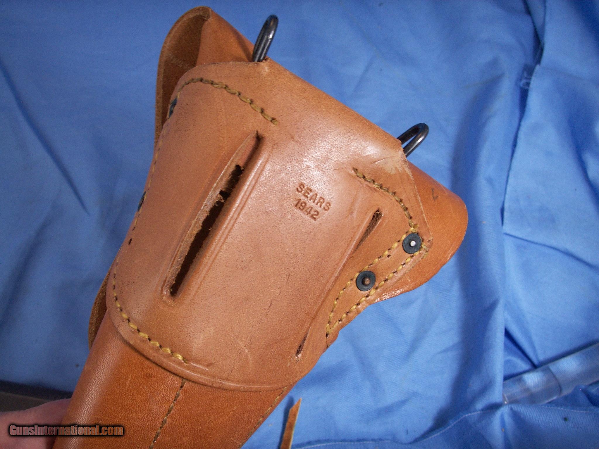 Description: SOLD PENDING FUNDS: Colt 1911A1 WWII US Military Pistol. This is in .45 ACP Caliber with a 5" barrel. This was manufactured in 1943 and the original parkerizing is rated at 98%. All parts stampings, and inspector marks are all correct. The bore and mechanics are excellent. The grips have no cracks and it comes with an original, possibly unissued Sears WWII Holster dated 1942. This is a piece of US Military history and a sought after WWII artifact. A super investment and historical item. Please see my other add's for additional collectable firearms. SOLD Curio/Relic: Yes |