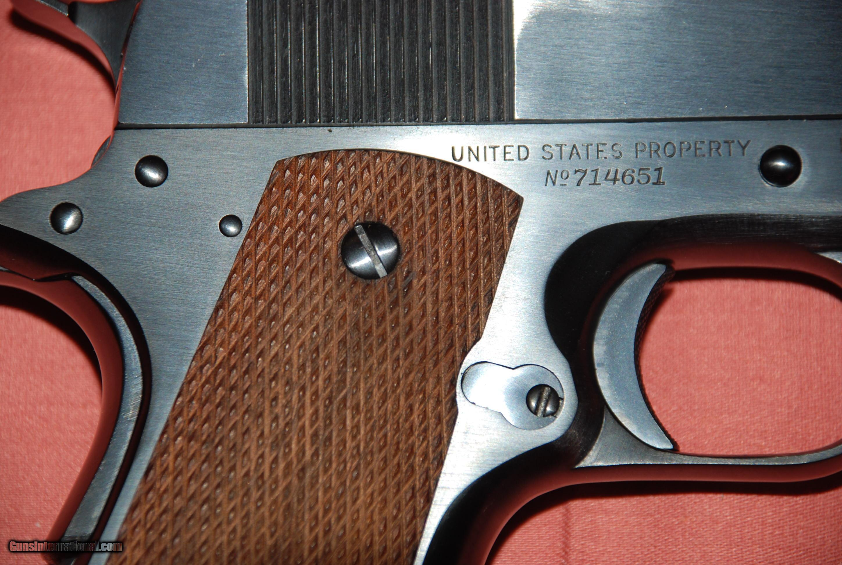 Description: This is a beautiful restored Colt 1939 Navy 1911A1. The gun is correct with serial number matching slide. The correct Colt 45 Auto barrel with P on left lug and good bore. Top of slide has the proper P.The brush blue finish is by Turnbull. The pictures do not justified the quality of workmanship.I can not capture the brush blue finish. You will not find a beter gun for the money.I will need a copy of your dealer's FFL or your C&R. I am not a dealer so please make sure your dealer will accept a copy of my driver's license. Shipping to the lower 48 is $35.00 SOLD Curio/Relic: Yes Manufacturer: Colt Model: 1911A1 Serial Number: 714651 Caliber Info: 45ACP Condition: Restored Metal Condition: Excellent Wood Condition: Excellent Bore Condition: Very Good |