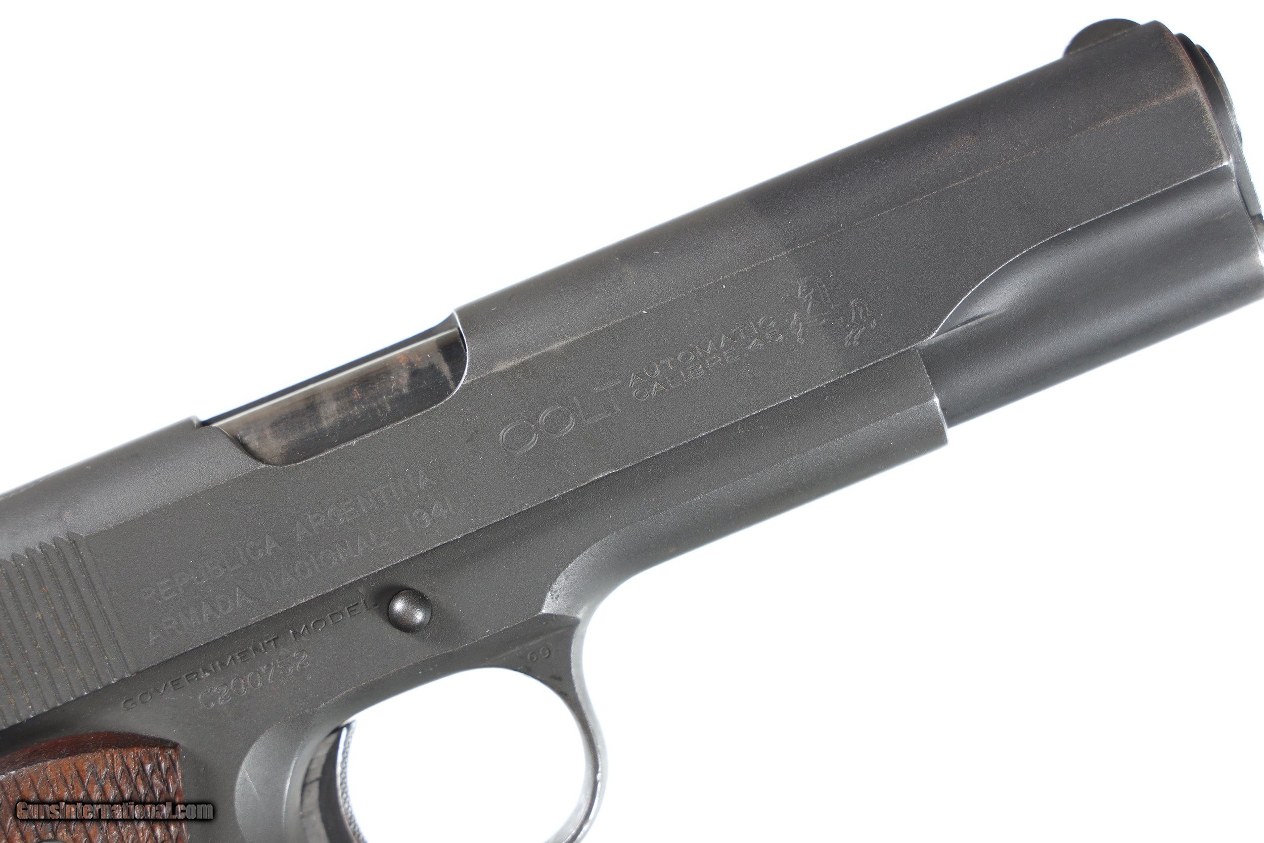 Description: Colt Argentine Navy Mfd 1941, 1911A1 in very good overall condition parkerized finish. Swartz safety device. Free Shipping, No Credit Card Fees! SOLD Curio/Relic: Yes Handgun Caliber: .45 ACP (.45 Auto) Manufacturer: Colt Model: 1911a1 Serial Number: C200752 Barrel Length: 5 |