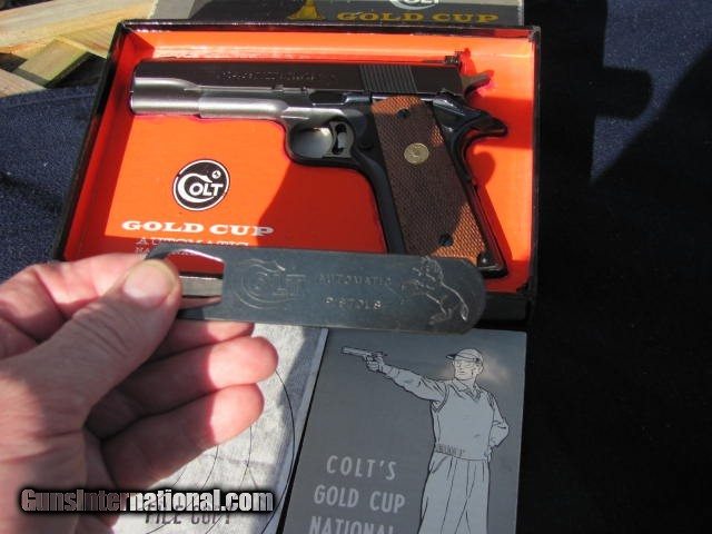Description: PRICE REDUCED National Match Gold Cup 99%, manufactured in 1968 - comes with box, all paperwork, sight adjustment tool, bushing removal tool, copy of test target. If interested, call Eric at 425-770-1260. SOLD Curio/Relic: Yes |