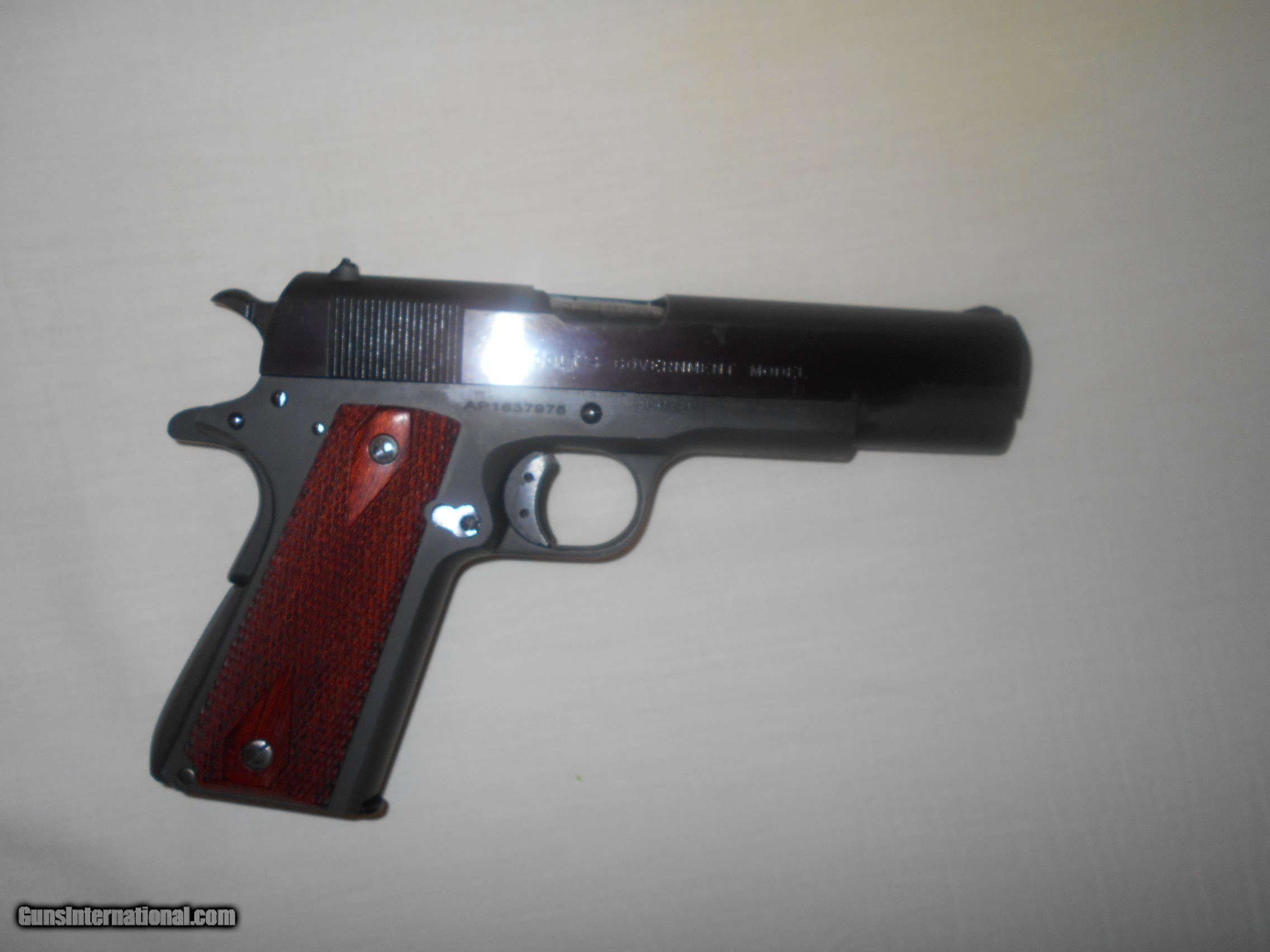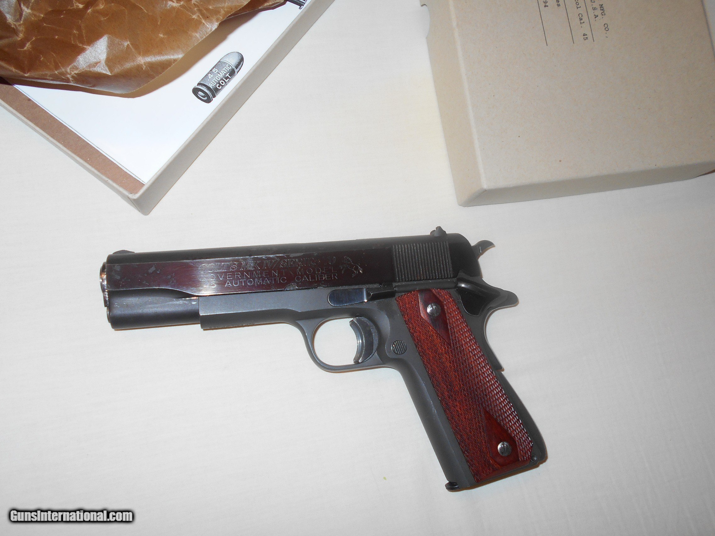 Description: Colt government 45 apc A-1 1911 made 1944 military with box look great work great blue is ex no rust. $1790 shipping There can be a restocking fee SOLD Handgun Caliber: .45 ACP (.45 Auto) Manufacturer: Colt Model: Government Ejectors: Ex Condition: EX Metal Condition: EX Barrels: EX Finish: Blue &EX Manufacture Date: 1944 |