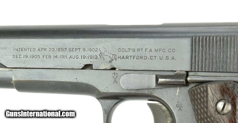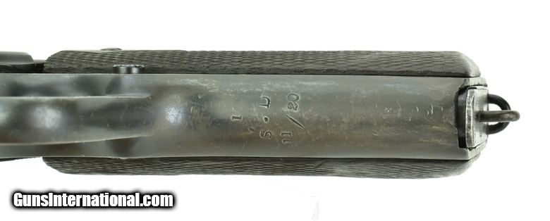 Description: Colt Government .45 ACP caliber pistol. WWII RAF (Royal Air Force) contract Government model. This contract was for .455 caliber. Barrel and magazine have been replaced to .45 ACP. Frame is marked RAF and has British proofs. Bore is very good with strong rifling and minor frosting. Very good overall. An affordable RAF marked 1911.