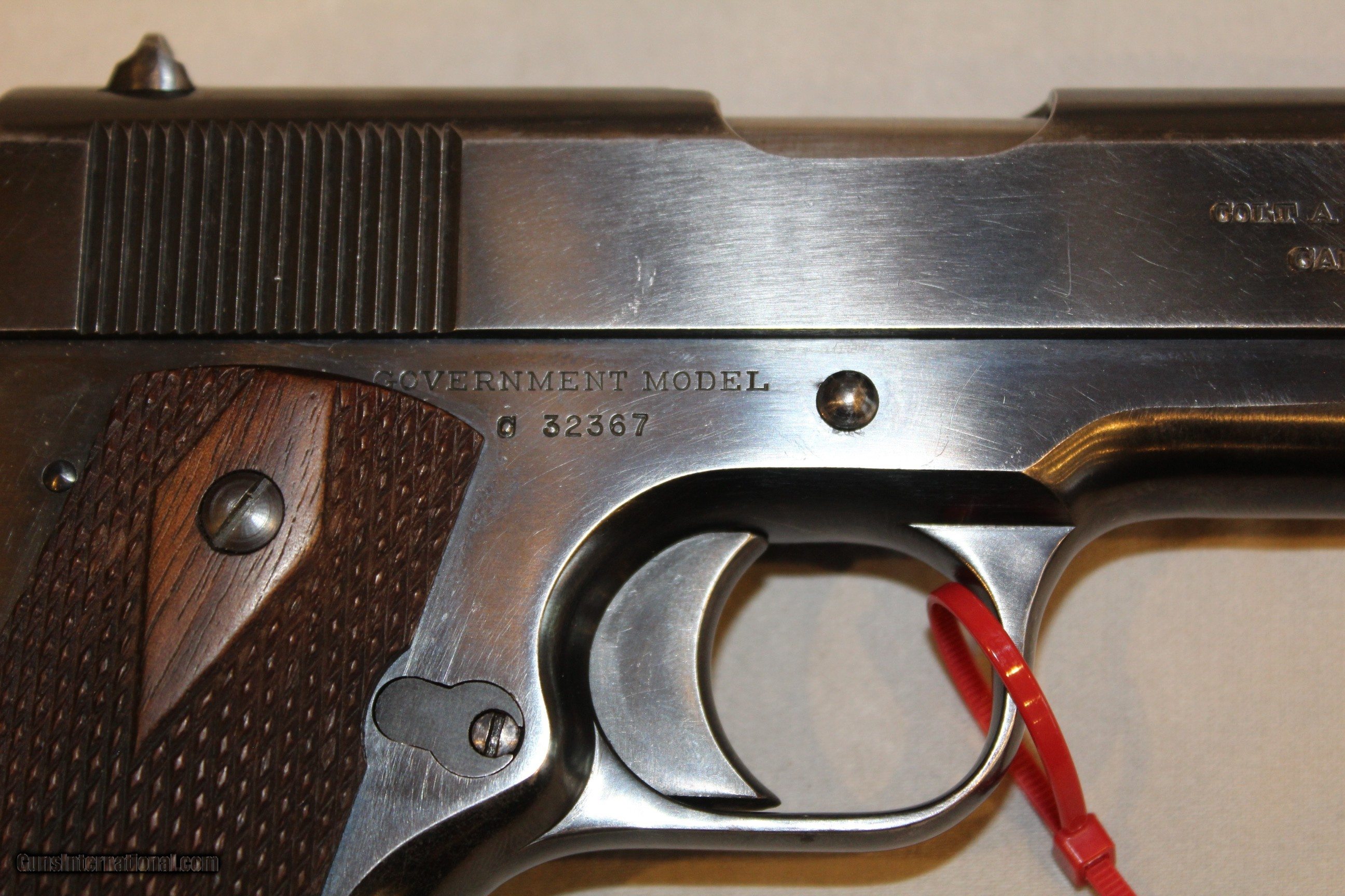 Description: Colt Government Model 1911 in .45ACP. Serial number 32367. Manufactured in 1914. Shipping included. Call RW Outdoors with any questions at 406-842-5271. California sales additional $25 for paperwork fee. SOLD Handgun Caliber: .45 ACP (.45 Auto) Manufacturer: Colt Model: Government 1911 Serial Number: 32367 Item Location: Sheridan, MT |