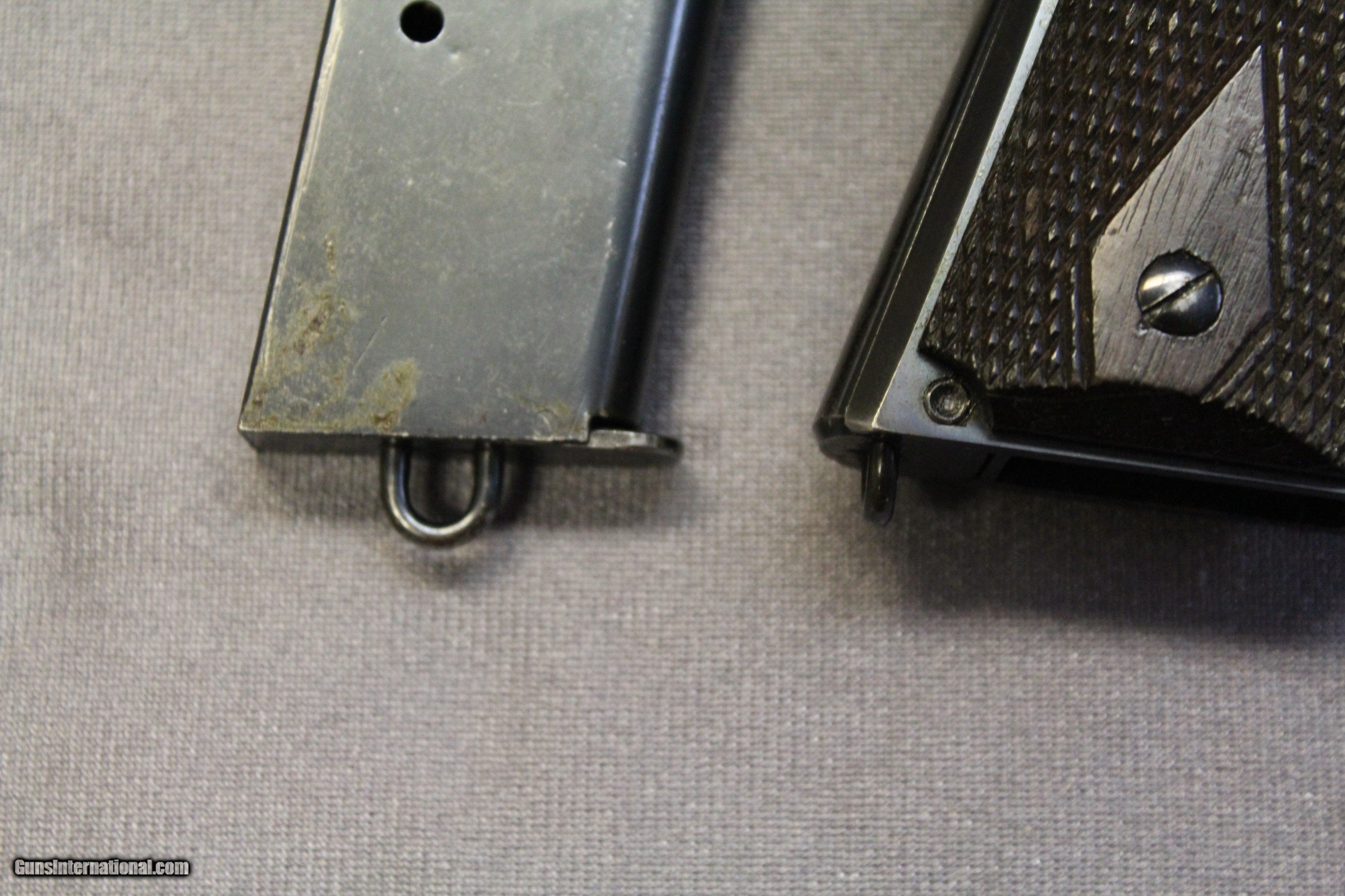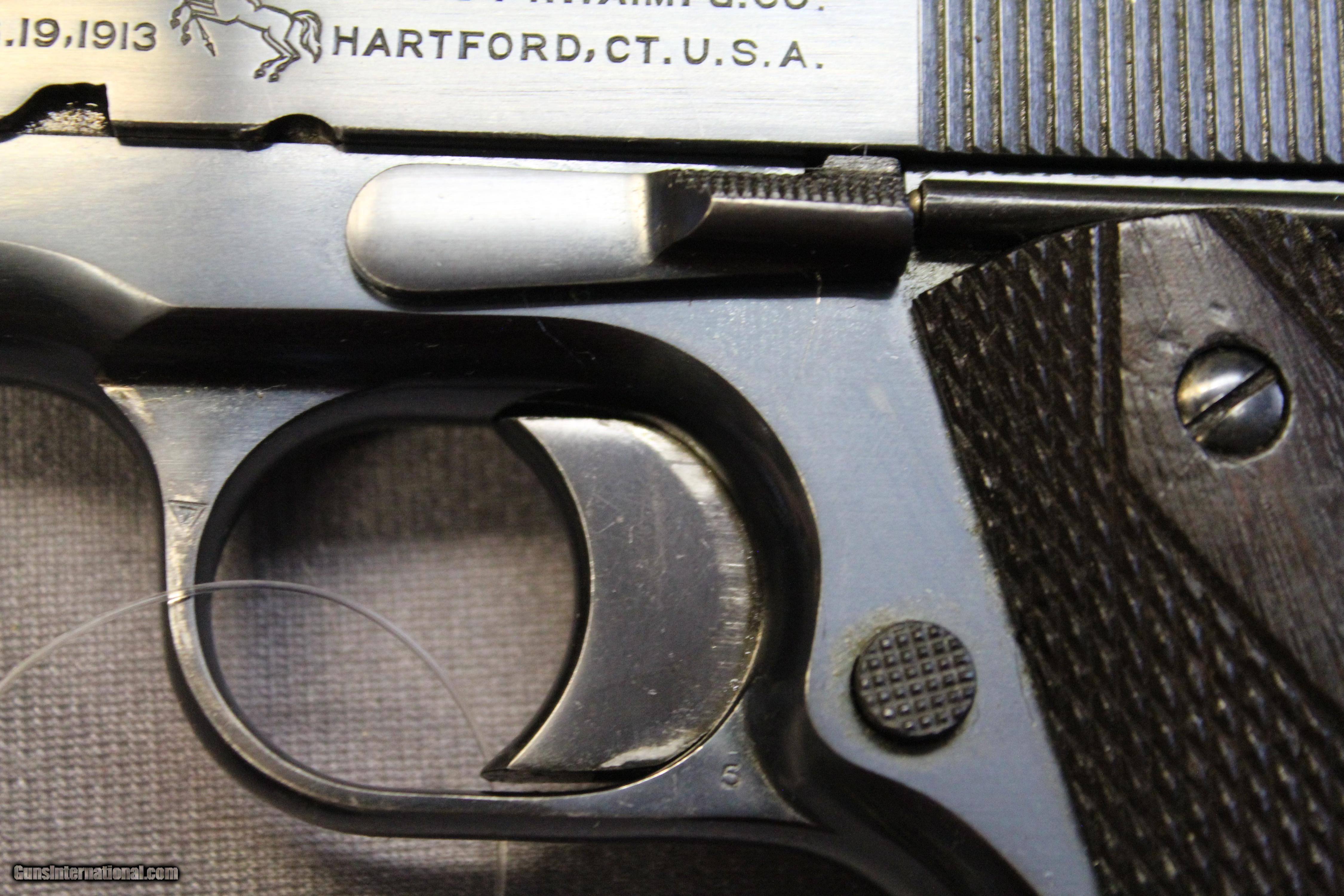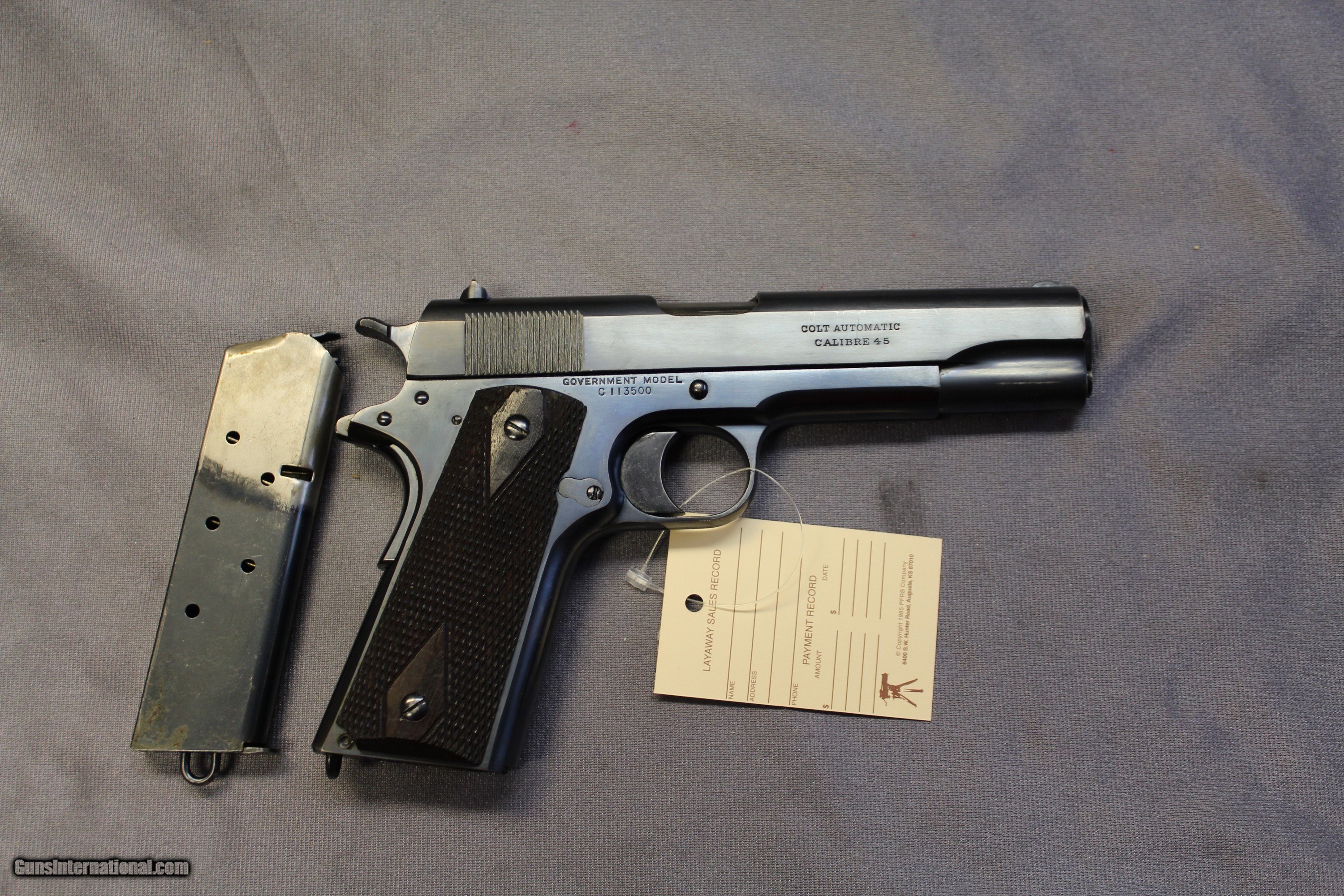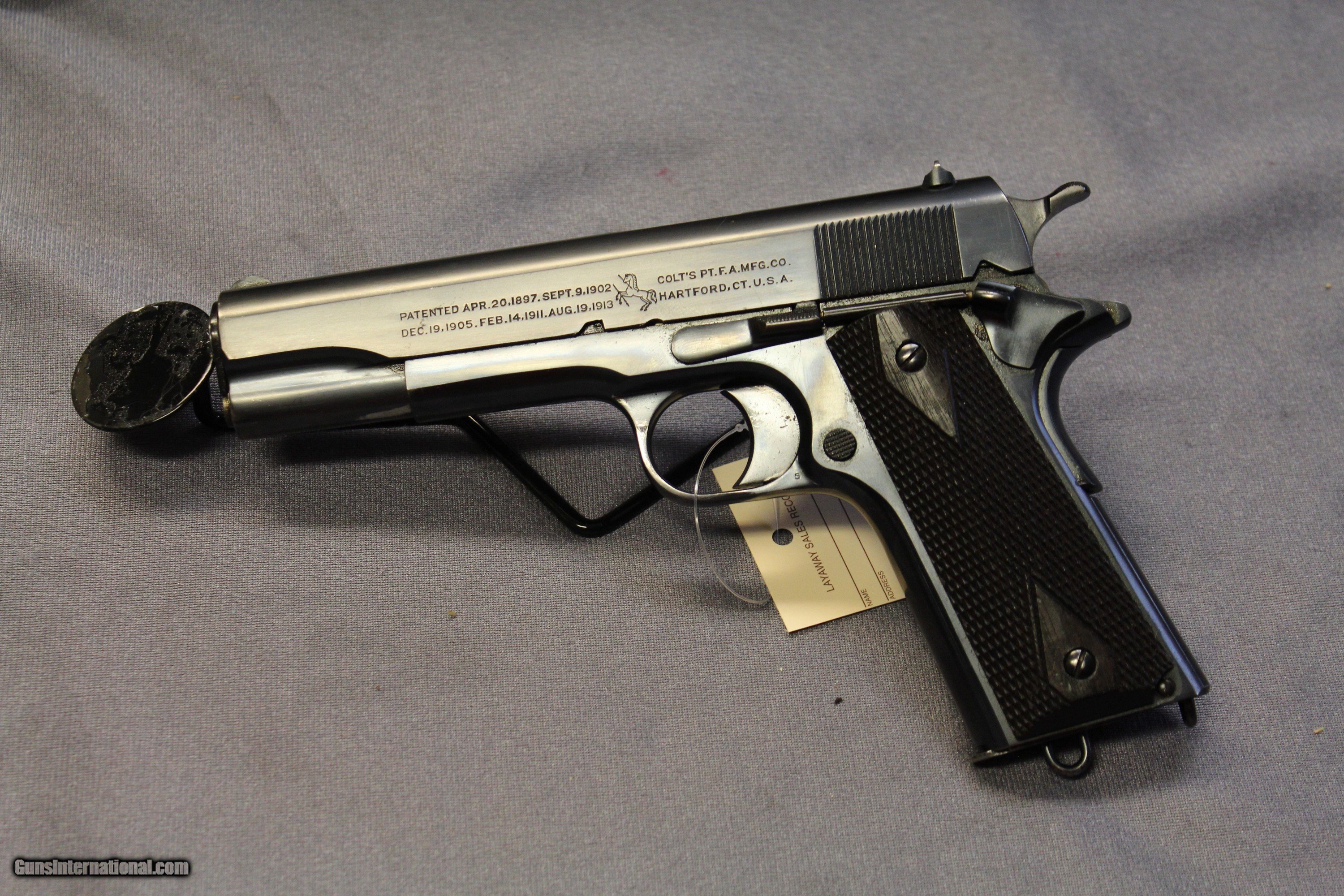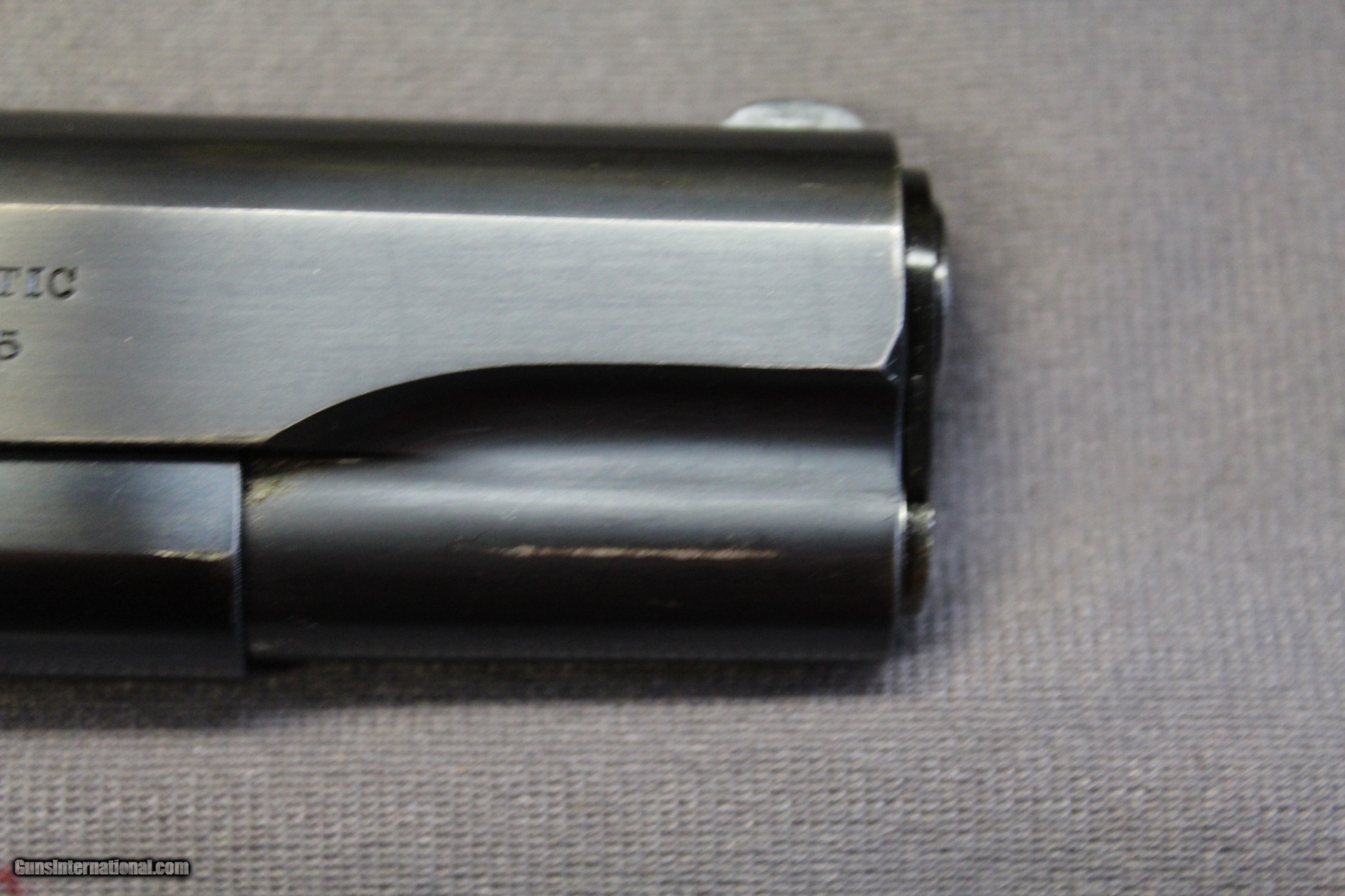 Description: Listed is a Colt Government Model .45. Made in 1919. This pistol is in excellent condition. Bluing is approximately 97%. with only minor finish loss on the bottom of the slide where it meets the frame and a very light "idiot" scratch from improper takedown and/or assembly. The correct walnut diamond grips are excellent and the proper two tone lanyard ring magazine rate excellent. Price is $7500 SOLD Curio/Relic: Yes Handgun Caliber: .45 ACP (.45 Auto) Manufacturer: Colt Model: 1911 Serial Number: On Request Barrel Length: 5 Condition: Excellent Metal Condition: Excellent Bore Condition: Excellent Action: Single Action |