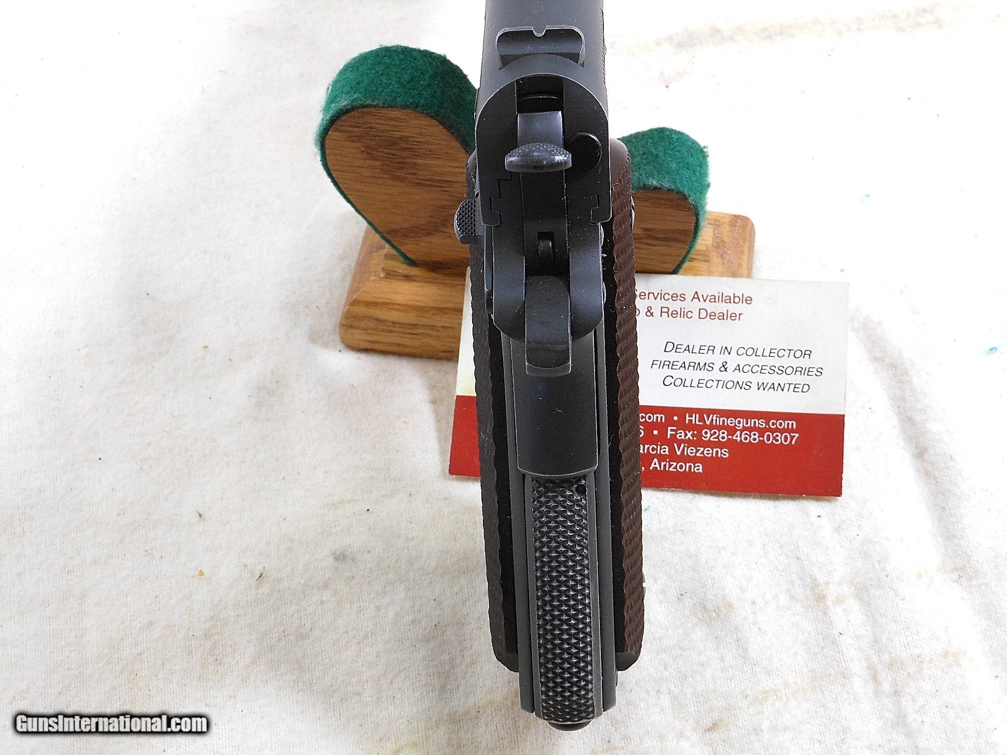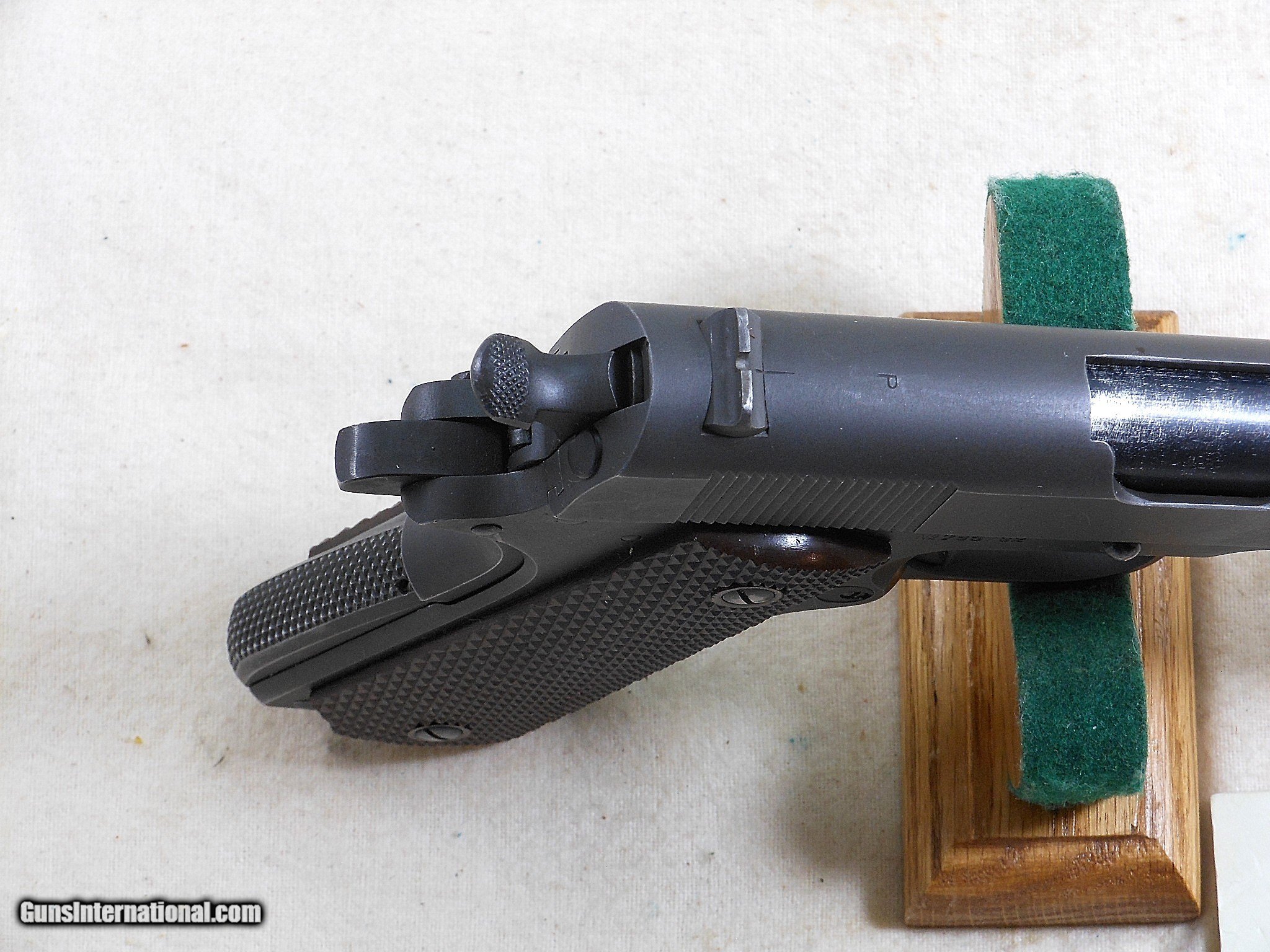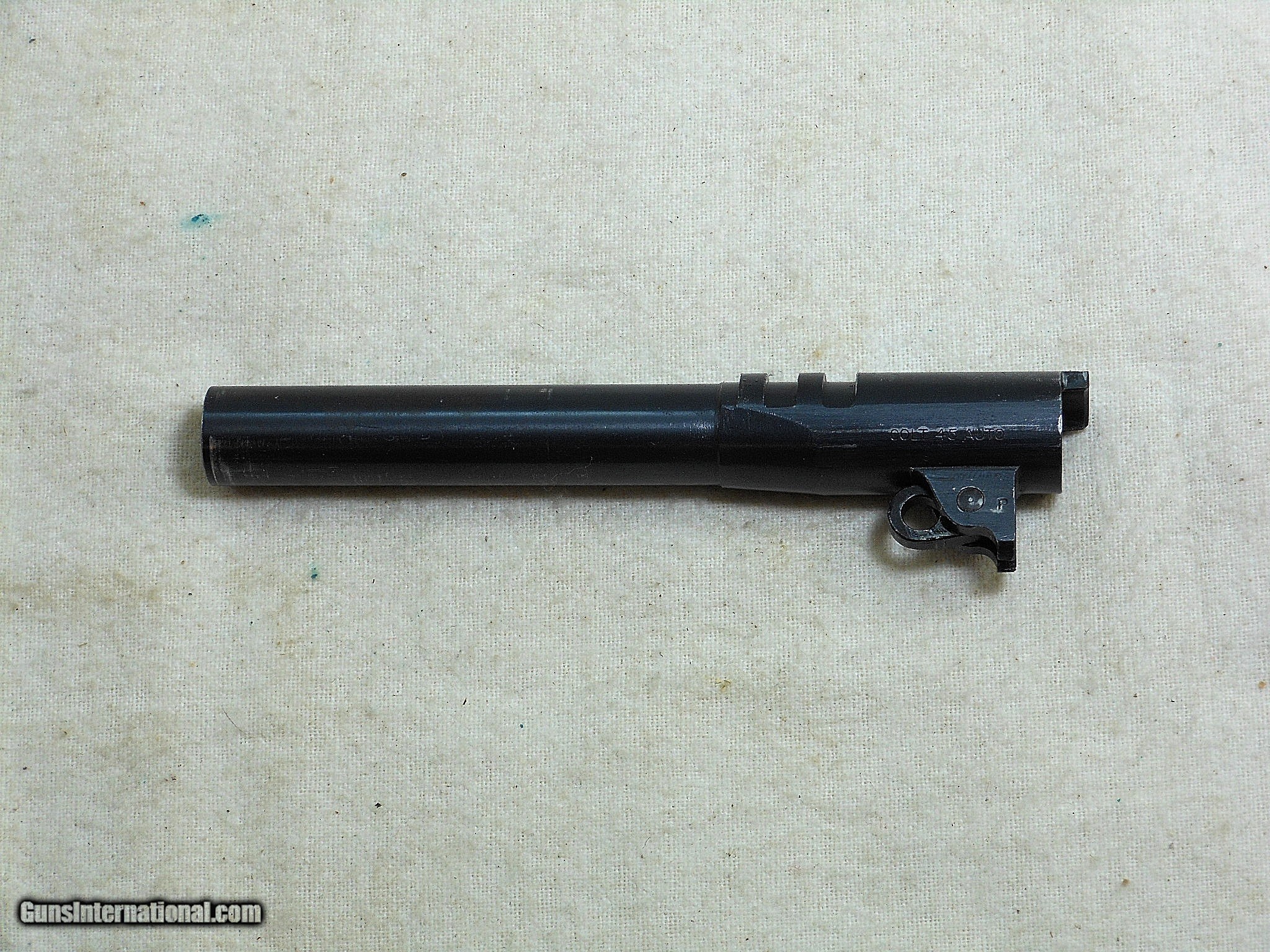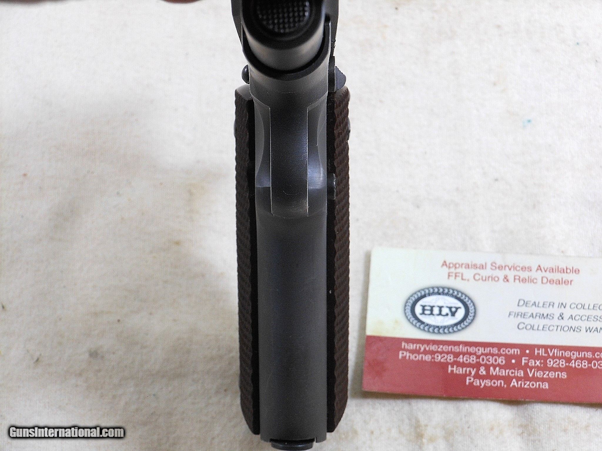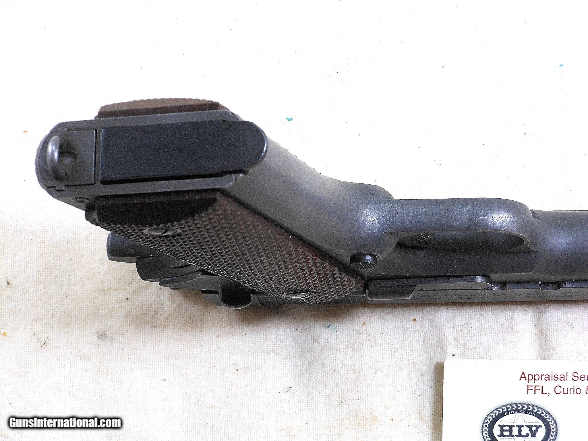 Description: SOLD This Colt was produced in early 1942. The pistol's serial number is 785732. This pistol is in all original condition. The bore is in very fine condition. The pistol is chambered to shoot the 45 A.C.P. cartridge. This Colt has the correct war time finish. The barrel is correctly blued. This barrel has the Colt 45 A.C.P. stamped below the barrel lug on the left side. It also has the small G in front of the barrel lug. The slide is also serial numbered to the frame. That serial number is stamped inside the slide Firing Pin retaining plate. This Colt shows very little use or being handled. The original military finish would rate a 98% overall condition. The magazine is the correct full blued style. The plastic grips are the correct style for 1942, This is a very fine Colt from the early war time production! This is certainly a collector grade pistol for the collector! The box of military ammunition is for display only. Curio&Relic L.M. Consn. (2) F. No. 703 -24 SOLD Curio/Relic: Yes Handgun Caliber: .45 ACP (.45 Auto) Manufacturer: Colt Model: 1911 A1 Serial Number: 785732 Barrel Length: 5 Inch Chambers: Minty Condition: 98% Overall Metal Condition: Very Fine Bore Condition: Minty Barrels: Pistol Barrel Type: Military Action: Self Loading Finish: Parkerized Sights: Standard Manufacture Date: 1942 |
