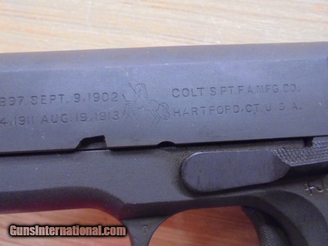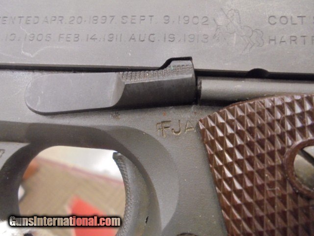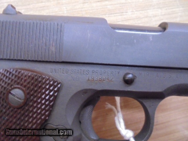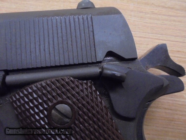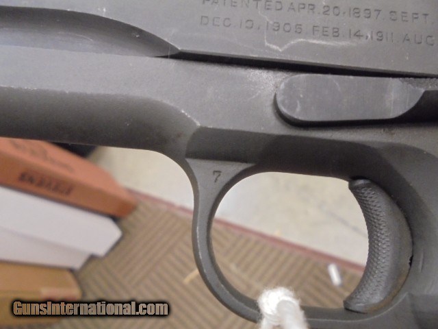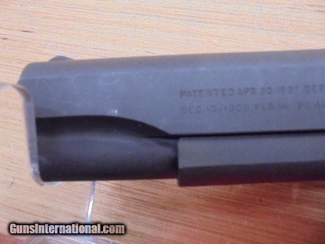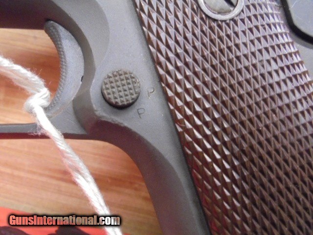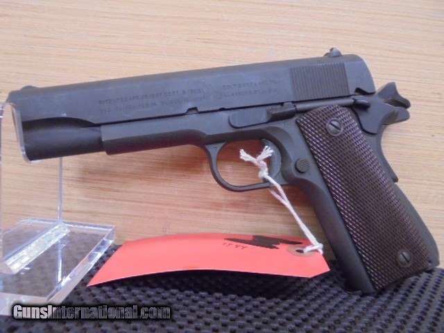 Description: USED GOOD CONDITION COLT MODEL 1911A1 MILITARY .45 ACP -- 5" BARREL -- PLASTIC GRIPS -- 1 - 8 RND MAG HAS PROOF MARKS & ORDNANCE MARKS -- THE COLT LOGO IS IN MIDDLE OF LEFT SIDE OF FRAME MADE IN 1944 ****PLEASE CALL IN THE WITH THE SELLER’S INVENTORY NUMBER IF INQUIRING ABOUT A FIREARM****** WE DO NOT SHIP FIREARMS AND/OR FIREARMS’ PARTS OUT OF THE 50 UNITED STATES, SO DON’T ASK PRICE REFLECTS PAYMENT BY MONEY ORDER / CASHIERS CHECK. A 3% PREMIUM IS ADDED FOR CREDIT CARDS. WE DO ACCEPT PERSONAL OR BUSINESS CHECKS, BUT THERE IS A GRACE PERIOD OF 10 BUSINESSS DAYS ON THEM. Shipping is $40 for handgun and $30 for long gun. Shipping to Alaska and Hawaii will be more based on weight of firearm. WE DO OFFER LAYAWAY PLANS FOR 30,60, OR 90 DAYS. THERE IS A $5.00 CHARGE FOR EVERY 30 DAYS ITEM IS ON LAYAWAY. WE ALSO REQUIRE A 20% DOWN PAYMENT ON TOTAL OF LAYAWAY SALE. LAYAWAYS ARE NON- REFUNDABLE. HERE IS HOW THIS PROCESS WORKS. YOU WOULD CALL US AT 540-337-9218 WITH LISTER # TO PURCHASE THE GUN. THEN ONCE I HAVE RECEIVED PAYMENT AND AN FFL (FEDERAL FIREARMS LICENSE) FROM A LICENSED DEALER IN YOUR AREA OF YOUR CHOICE. WE WILL THEN SHIP THE GUN TO THEM. YOU WOULD THEN PICK UP THE GUN AT YOUR LOCAL DEALER AND DO PAPER WORK THERE. Please have your FFL Dealers contact information when you call. DOMINION OUTDOORS 15 ANGELA COURT FISHERSVILLE, VA 22939 540-337-9218 540-337-2422 fax M – F 9 to 6 ETZ Sat 9 – 4 ETZ ****PLEASE CALL IN THE WITH THE SELLER’S INVENTORY NUMBER**** ***PLANO HARD CASES AVAIABLE FOR PURCHASE $19.99 WITH THE PURCHASE OF A FIREARM** *** Online prices compared to in store prices will vary. *** SOLD |