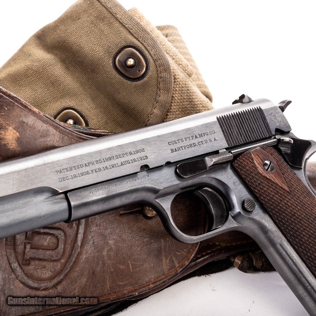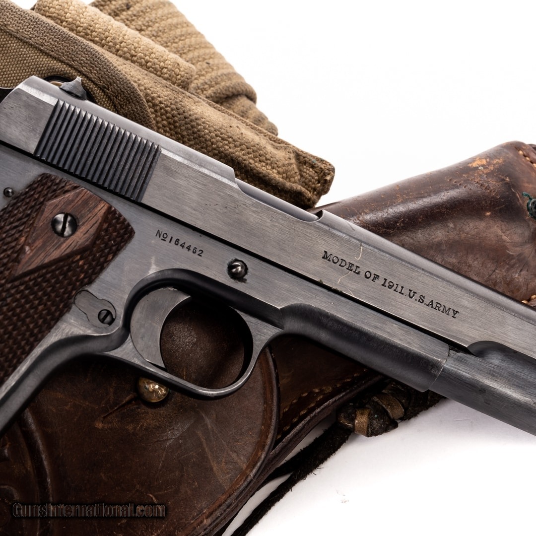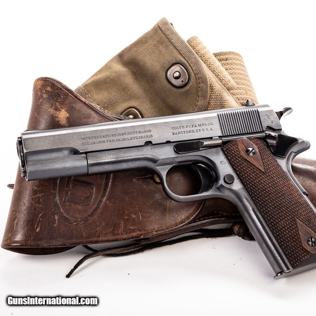Description: Guns Listing ID: 306922 This Model of 1911 US Army is a beautiful example of the fine craftsmanship that Colt Mfg. has to offer. With a manufacturing date of 1917, during the Great War, this handgun has truly stood the test of time making it worthy of the Colt logo on the side of the frame. This pistol has seen an America that went from rudimentary motor cars to putting man on the moon. A 1911 that has been around for every major U.S. conflict since the dawn of the 20th century would make for a beautiful collector’s piece, given its condition considering it is almost 105 years old. This listing comes with two magazines, the original holster, and a barrel cleaning kit. A classic handgun, who’s impact on the development of sidearms can never be overstated, that can add to anyone’s collection as a prized centerpiece. Serial number: 164462 SOLD Manufacturer: COLT Model: MODEL OF 1911 US ARMY Caliber Info: 45 ACP Condition: Used - Certified Barrels: 4.8 BARREL Finish: BLACK |