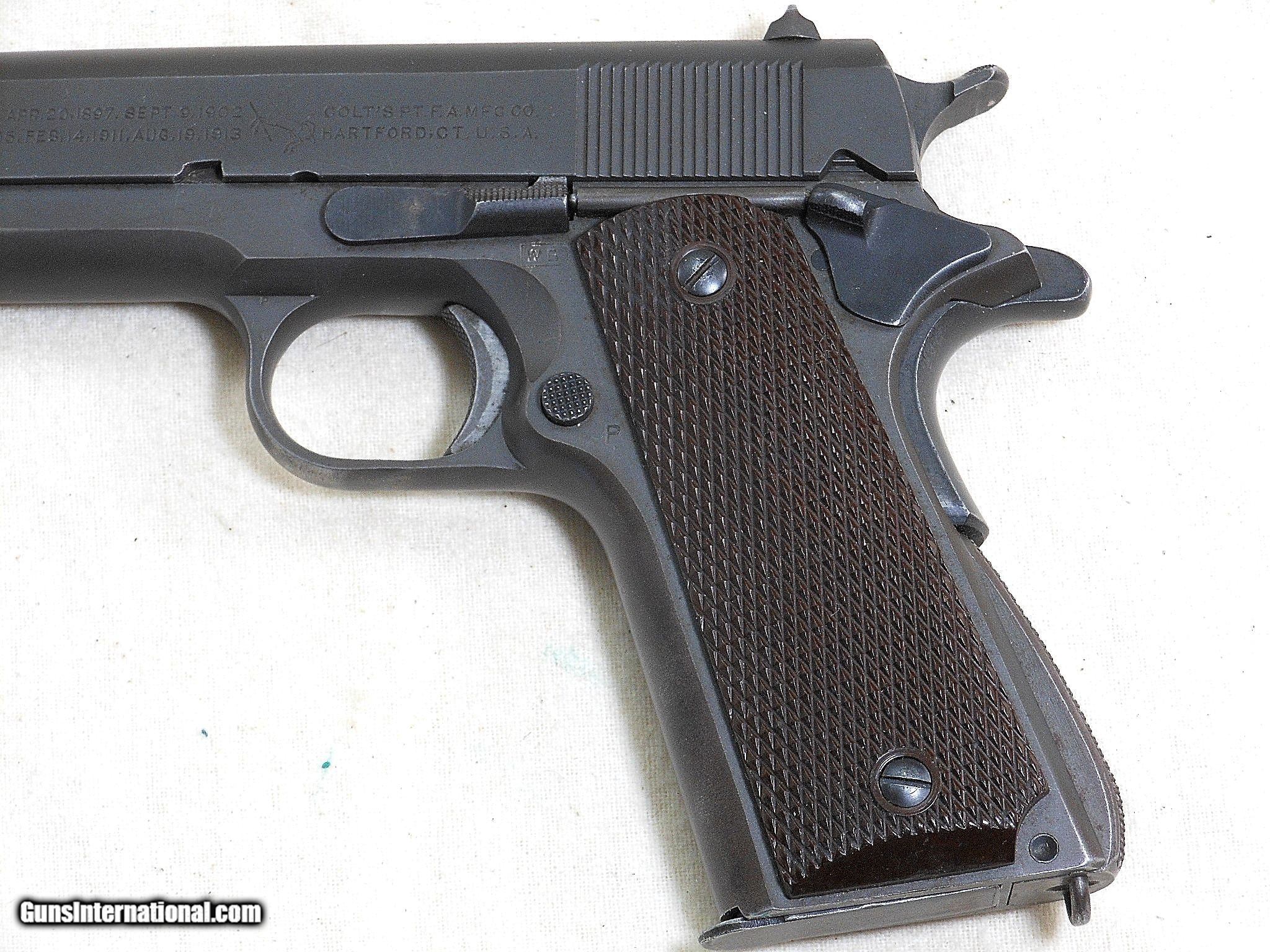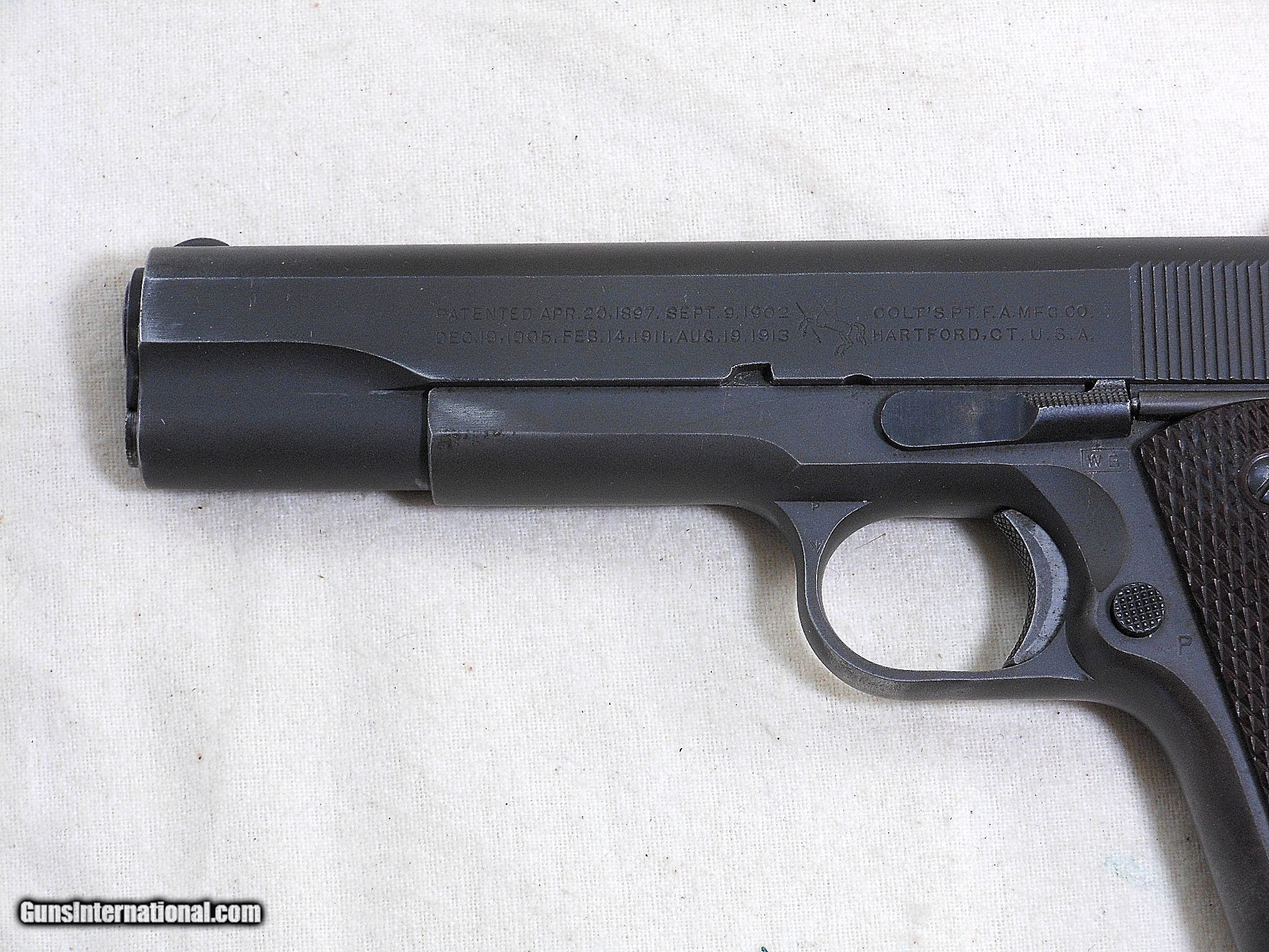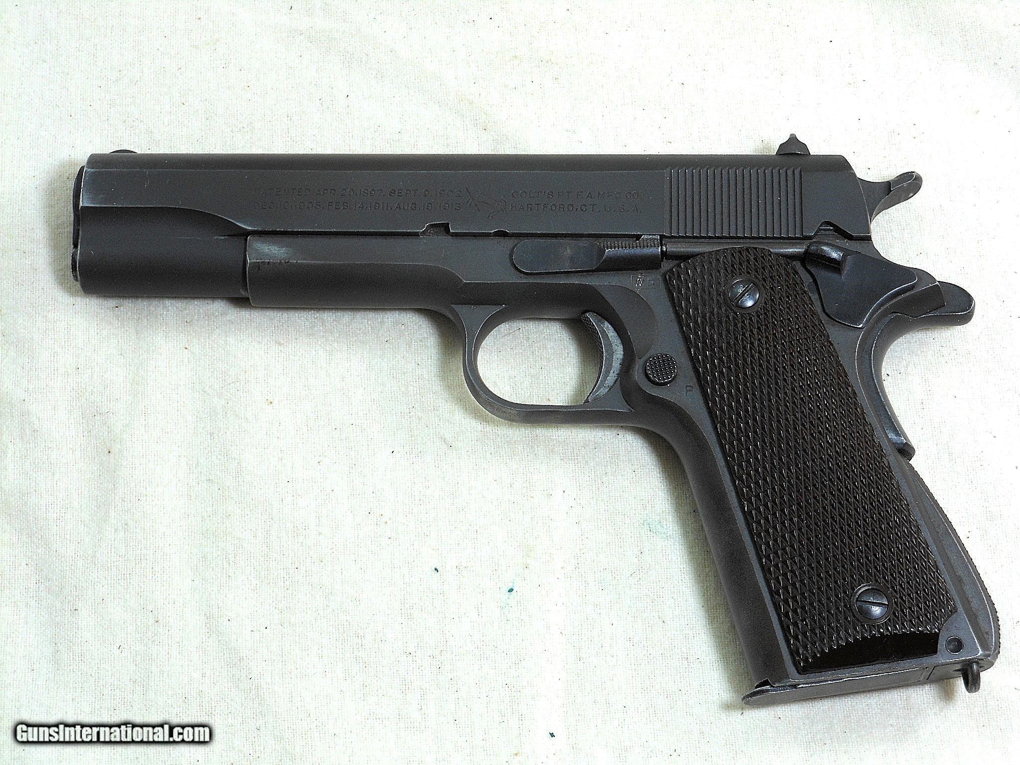 Description: This Colt was produced in 1941. The pistol's serial number is 756246. This Colt has the correct marked blued 5 inch barrel. The bore is bright with sharp lands. There is no pitting of the bore. As stated, the slide is serial numbered to the frame. This slide has the serial number stamped behind the firing pin retaining plate. The grips are the correct original plastic grips for this Colt. The magazine is a correct blued war time magazine. This magazine has seen some service, but is in very fine condition. This Colt has all of the correct inspection stamps clearly marked on the pistol. The W.B. in a box is the correct inspector for this Colt. The slide locks up tight with no sloppyness. The action works smoothly with no issues. All of the parts are correct for the pistol's serial range and production time frame. The original finish would rate a 92% overall condition. The most finish loss is by holster wear and use. The pistol shows very little shooting wear. This is a fine condition early parkerized model 1911 A1 that has survived the war in original as issued condition. The kraft box that goes with this pistol is a high quality reproduction box that is great for storage! These early Colt's that have the matching serial numbered slide are really getting hard to find now. This Colt is a very fine example of these early war time Colts! Search for hlvfineguns on google for more details. Curio&Relic AKKE (1) F. No. 531 -21 SOLD Curio/Relic: Yes Handgun Caliber: .45 ACP (.45 Auto) Manufacturer: Colt Model: 1911 A1 Serial Number: 756246 Barrel Length: 5 Inch Condition: 92% Overall Bore Condition: Very Fine Barrel Type: Colt Action: Self Loading Finish: Parkerized Sights: Standard Manufacture Date: 1941 |