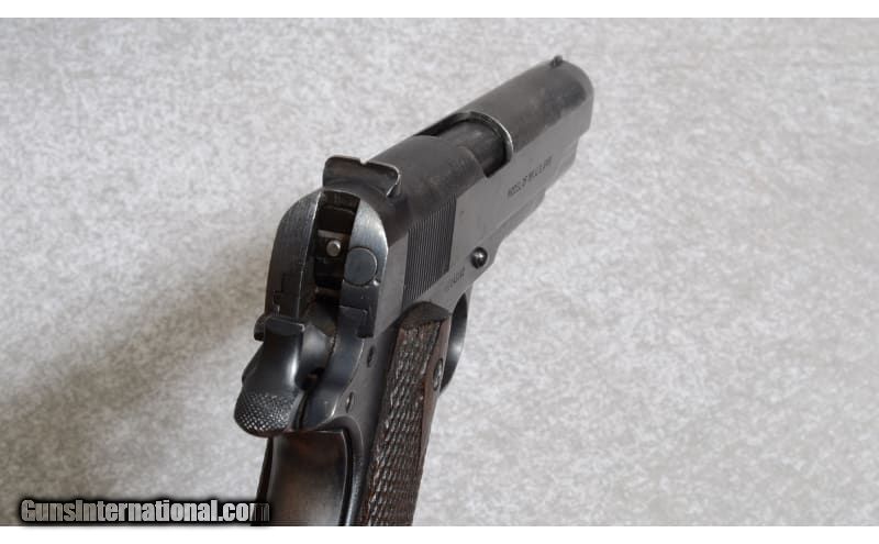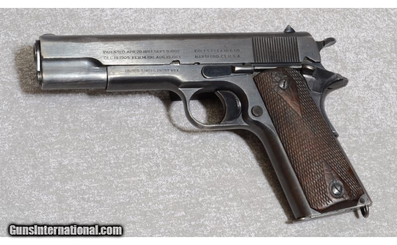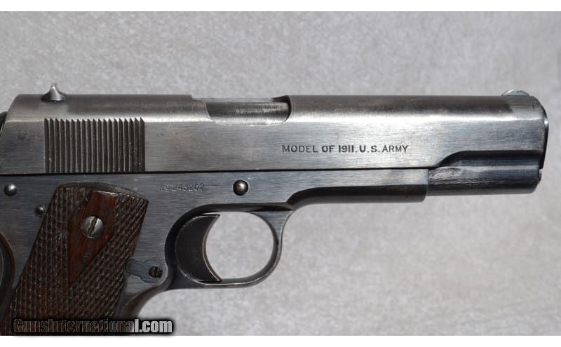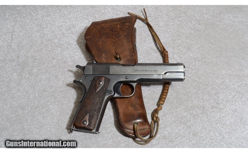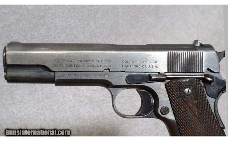 Description: The Colt M1911 (also known as 1911, Colt 1911 or Colt Government in the case of Colt-produced models) is a single-action, recoil-operated, semi-automatic pistol chambered for the .45 ACP cartridge. Automatic Pistol, Caliber .45, M1911 for the original model adopted in March 1911 Designed by John Browning, the M1911 is the best-known of his designs to use the short recoil principle in its basic design. The pistol was widely copied, and this operating system rose to become the preeminent type of the 20th century and of nearly all modern centerfire pistols. The U.S. military procured around 2.7 million M1911 and M1911A1 pistols during its service life. The pistol served as the standard-issue sidearm for the United States Armed Forces from 1911 to 1985.[16] It was widely used in World War I,[17] World War II, the Korean War, and the Vietnam War. This gun was made in 1918. .45 Auto SOLD Curio/Relic: Yes Metal Condition: Very Good Wood Condition: Good with Use Wear Bore Condition: Very Good Barrels: 5 Triggers: Factory Trigger Sights: Fixed Sights Item Location: Tulalip, WA |