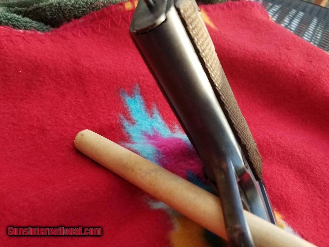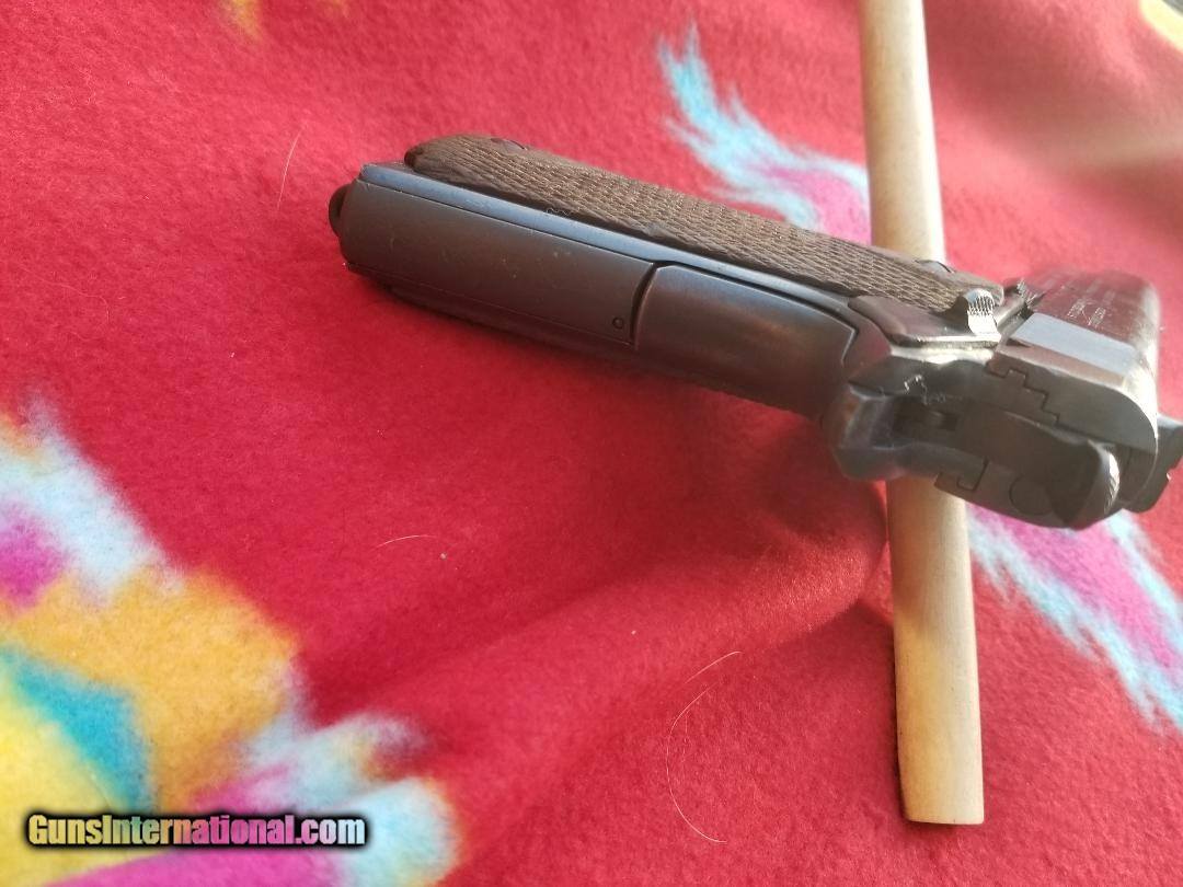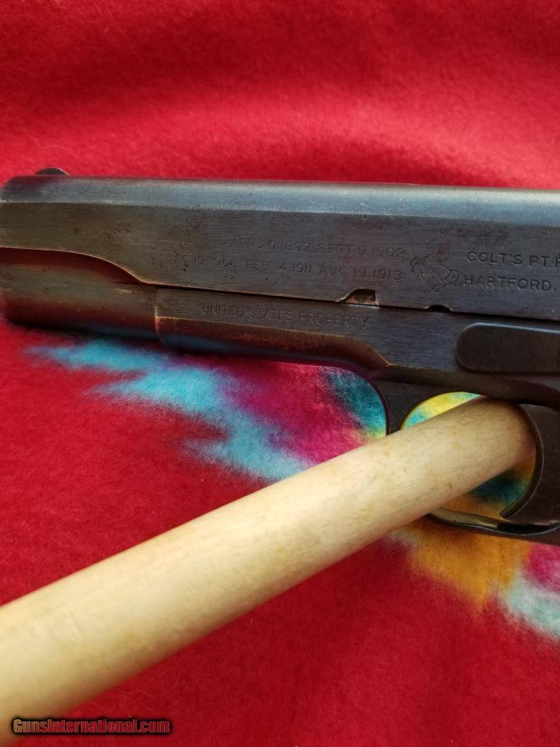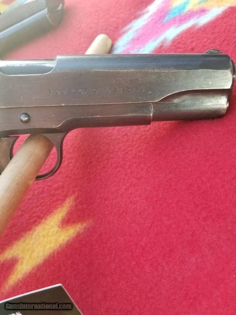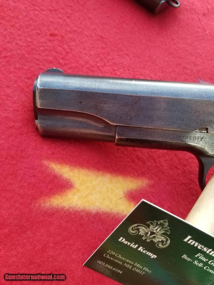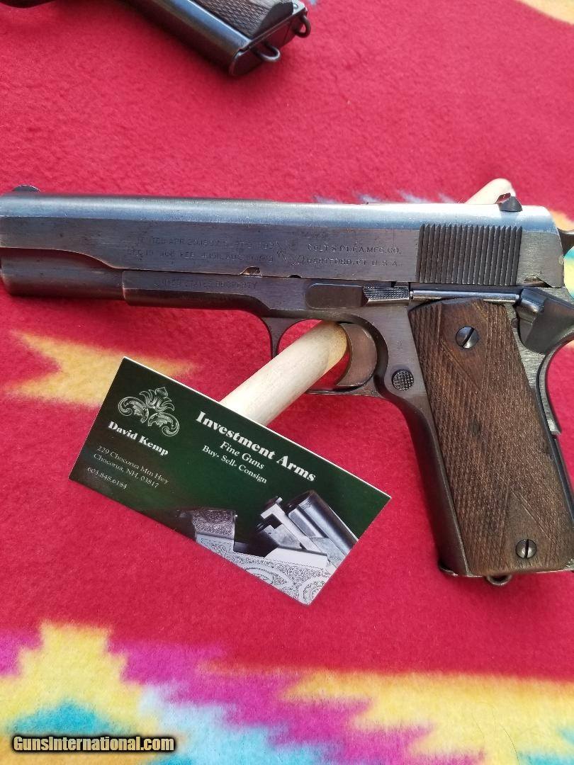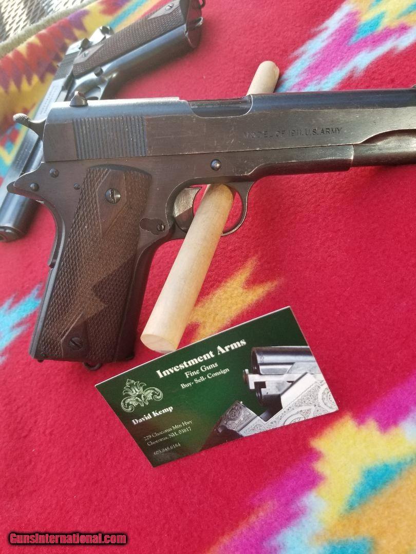 Description: Colt US Model 1911 ,45 ACP Colt 1911, has HP type 5 proof strong rifling very good bore with some mild pitting in groves Shows strong original bluing-perhaps 70% ,correct double diamond grip with a few handling marks on left grip "S12" US Property marked, all parts look correct except slide lock and main spring housing are later replacements,safety lock tab is from earlier gun.Has one lanyard loop mag in fair condition. Born 1918 s/n 46902x A neat WWI 1911 that was used in WWI Offered at $2495 plus shipping-USPS Priority with some insurance $45 to your dealer Bank Check,USPS Money Order or personal check-shipment held a few days till clear) I can accept a C&R FFL however shipping will be er quote as it must go common carrier Please email your phone number so I can call back if I miss the call, thanks. Be sure to look at my other offerings for more guns,Merkel'sMannlicher Schoenauer's, Drillings, Combo's, Colt Saa's, Colt’s, Ruger’s, Browning’s,Kimber’s, Les Baer, Uberti's by both Taylor and Cimarron, and Ferlib, Merkel G&H-Arrieta,Grulla,Beretta,Parker Repro shotguns and other fine guns. Inventory always changing be sure to check with us ,.we are Leupold,Colt and CZ authorized dealers Local New Hampshire Buyer can view/purchase gun in person-after 4473/ NICS check, at Investment Arms business premise in New Hampshire Country Store, Rt 16 Chocorua NH. Please email/call 603.848.6184 Business or (603.323.8200 ) first to be sure its not sold. We also Buy and Consign Guns Payment by bank check, UPS money order-personal check held until clear 10 days. Buyer must provide dealers signed 01 FFL-email or hard copy, I will include a copy of my FFL with shipment. 3 day non firing inspection period(gun must be in same condition if returned)-starts when gun arrives at your dealer, on used guns only-not new guns sorry-they are under factory warranty, buyer pays shipping and insurance both ways if returned. SAFETY NOTICE: Buyer is solely responsible for determining that a used gun is safe to shoot. The firearms offered has been given a visual inspection for collection purpose only. It is a requirement that any used firearm be inspected by a qualified gunsmith before firing. By purchasing the firearm, the buyer agrees to hold seller harmless against damages, injury, or death caused by defective merchandise. Price: $2,495.00 Contact Seller |