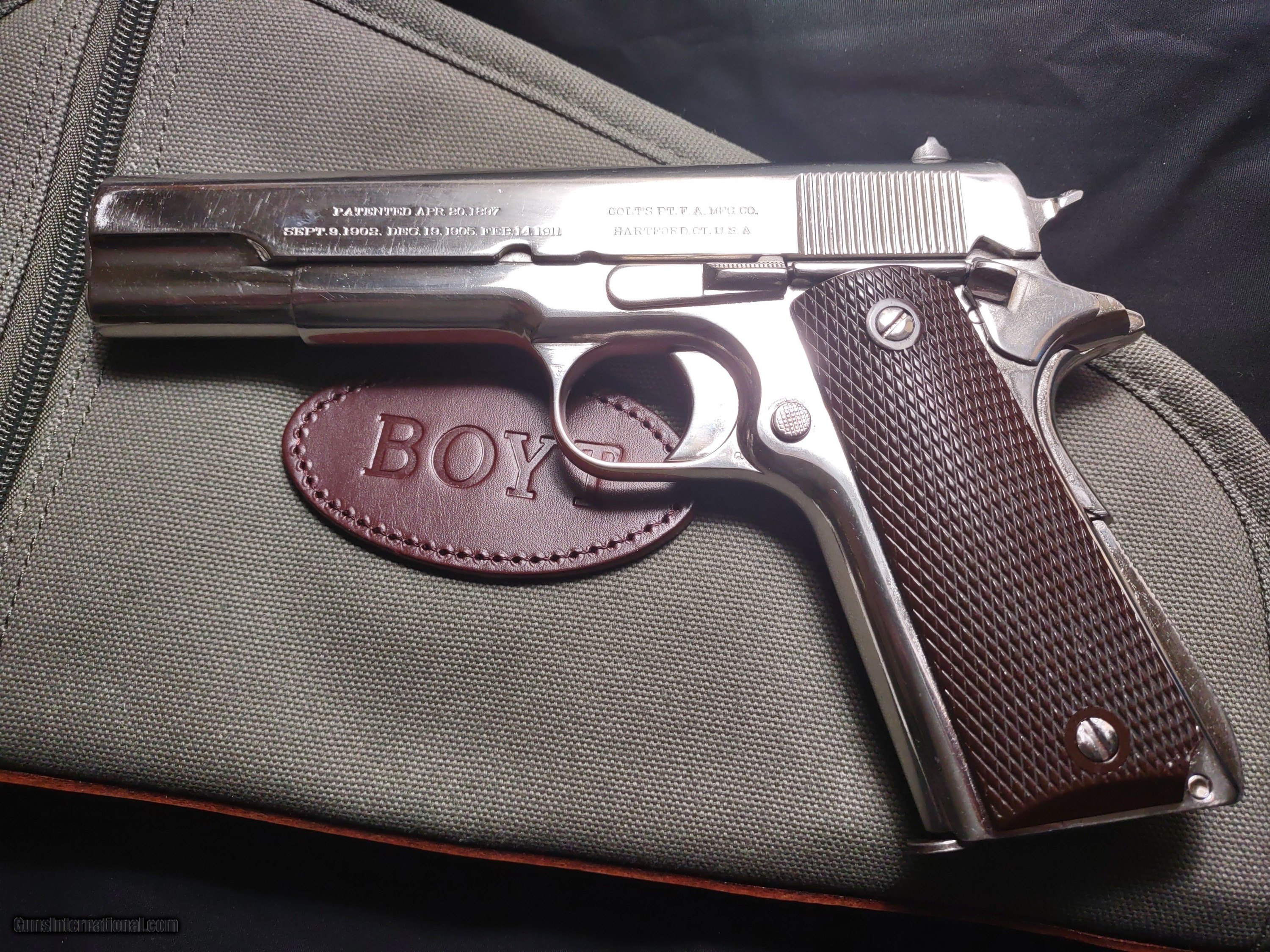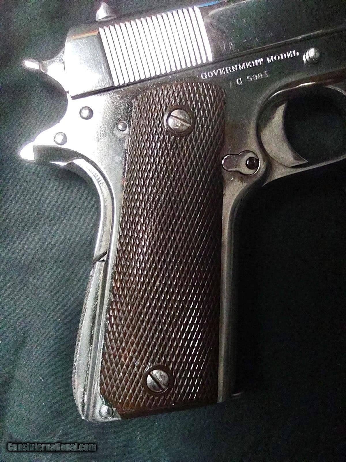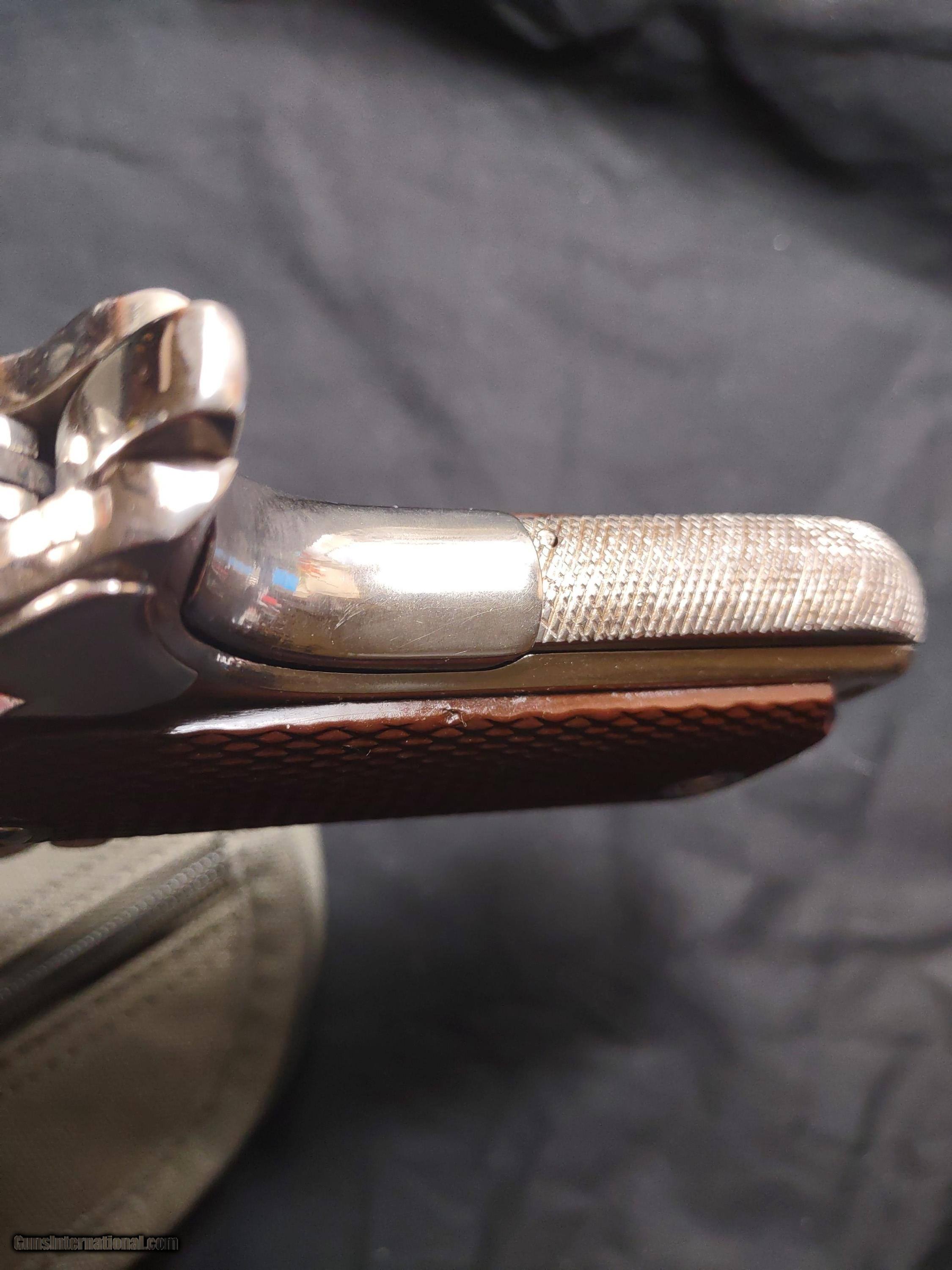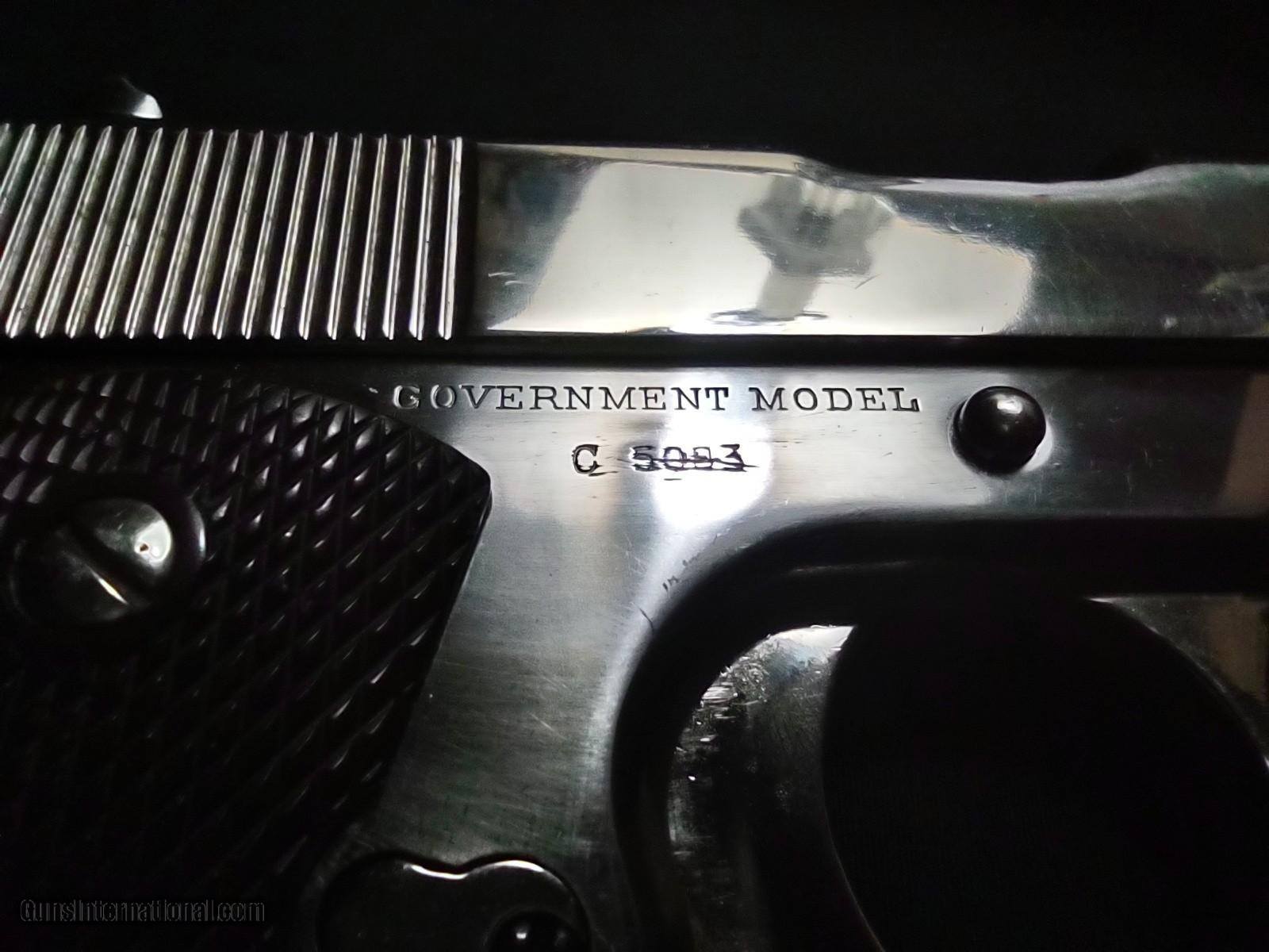 Description: COLT 1911 .45 ACP COMMERCIAL Serial number C 5083 with manufacture year of 1913, 5" barrel with perfect glossy bore. This masterpiece looks great in it's sparkling nickel finish and black checkered plastic grips. The function is tight and crisp. A really great pre-WWI commercial 1911. The price is $2900 including UPS shipping to the FFL dealer near you. Call or text me at 318-780-4242 if you are interested. SOLD Manufacturer: Colt Model: 1911 Serial Number: C 5083 Barrel Length: 5 Bore: bright and glossy Chambers: Excellent Ejectors: Semi-automatic Condition: Excellent Metal Condition: Excellent Wood Condition: No wood Bore Condition: Perfect, glossy Barrels: Single Barrel Type: Pistol Action: Semi-automatic Triggers: Single Finish: Nickel Sights: Fixed, open Manufacture Date: 1913 Engraving: None Case: Quality soft zipper carry case Item Location: Shreveport, Louisiana |