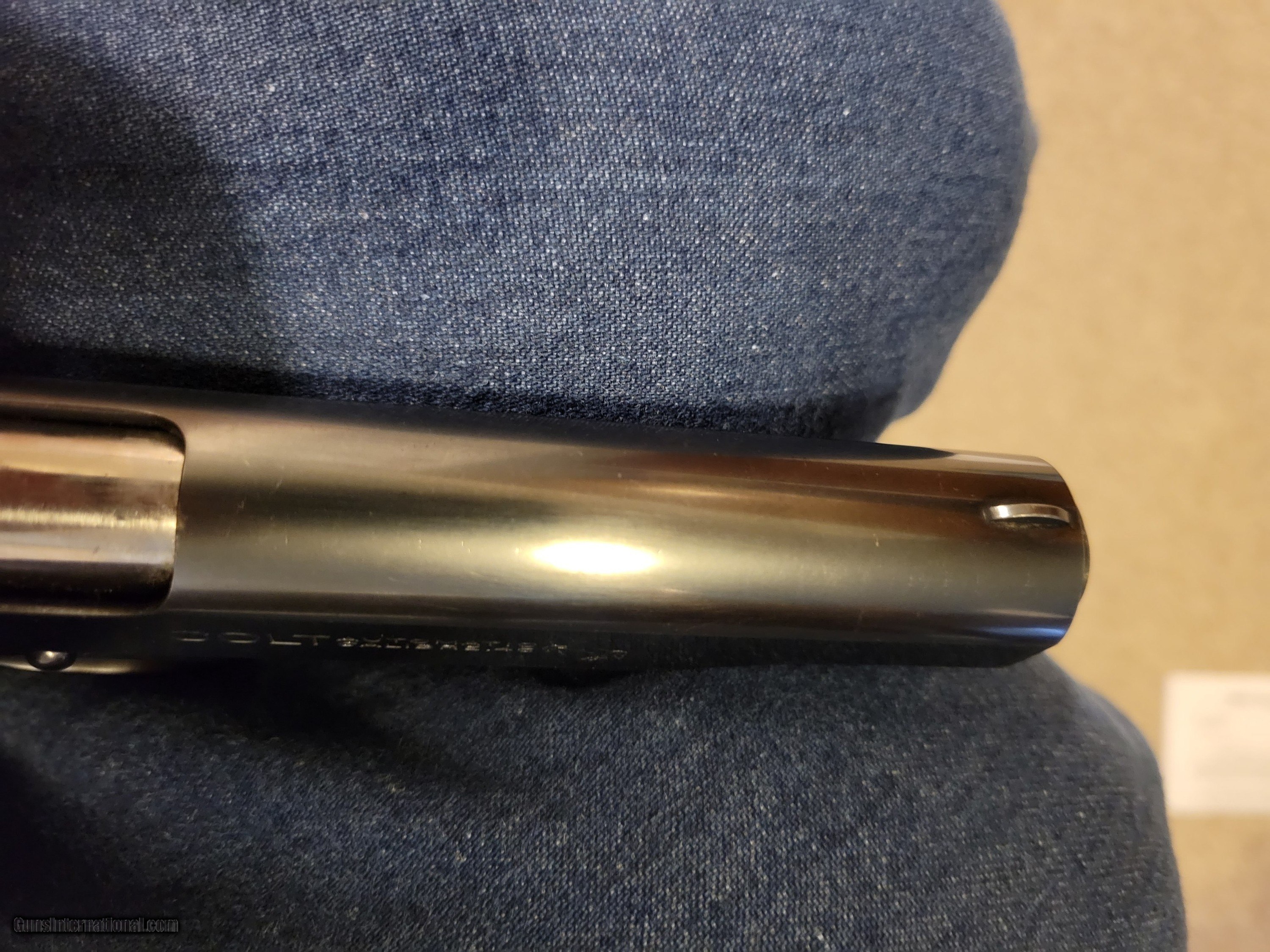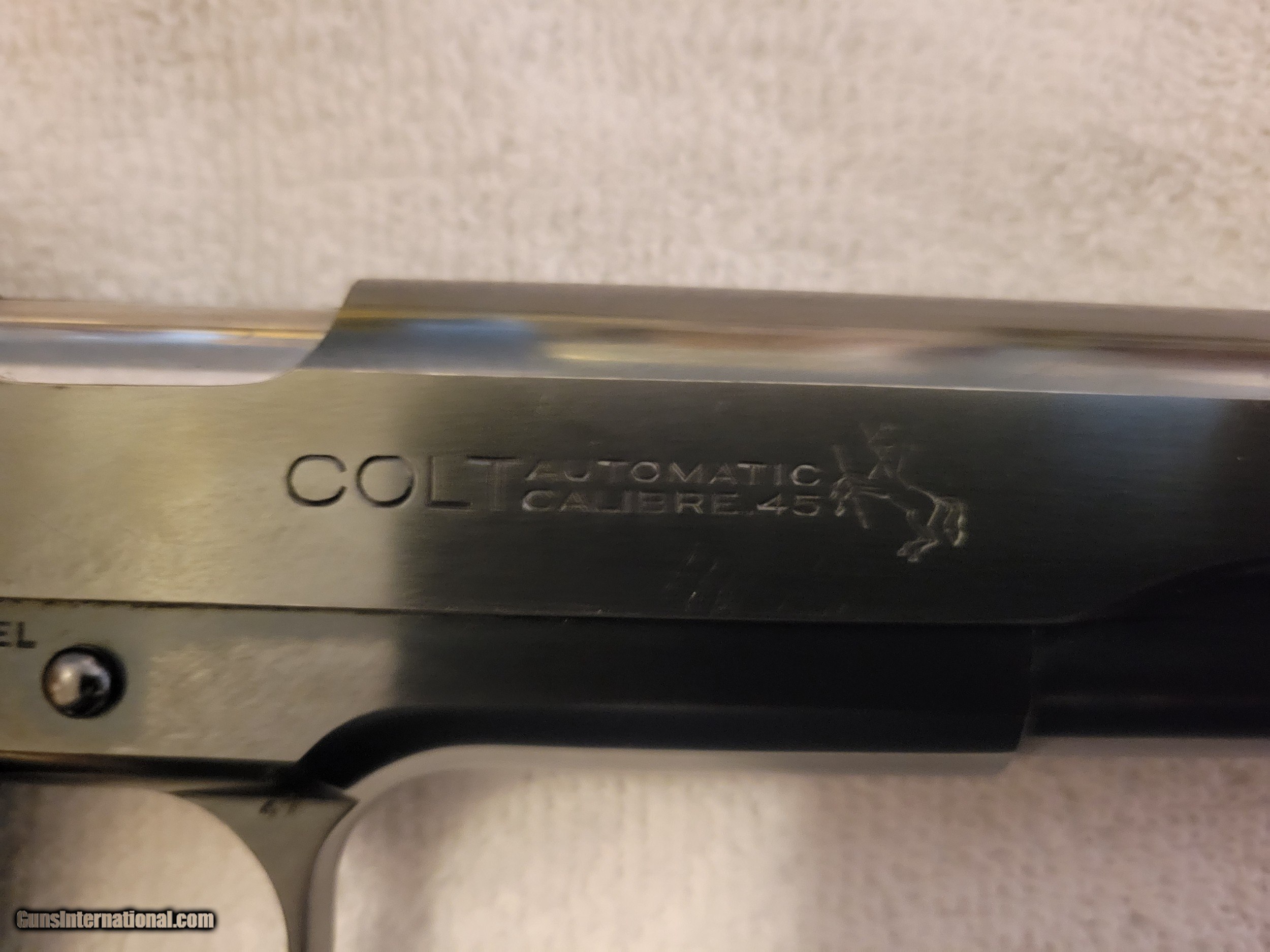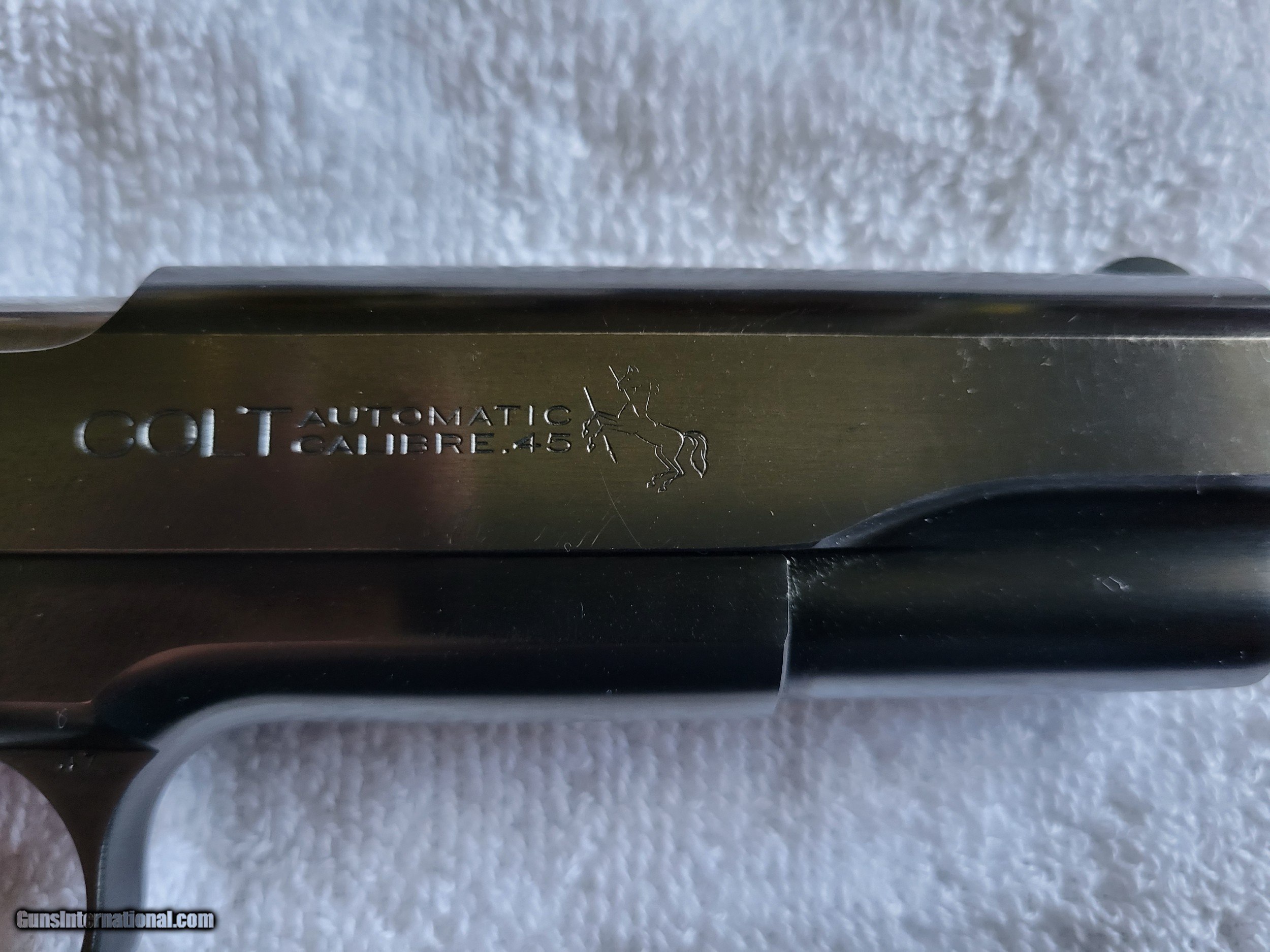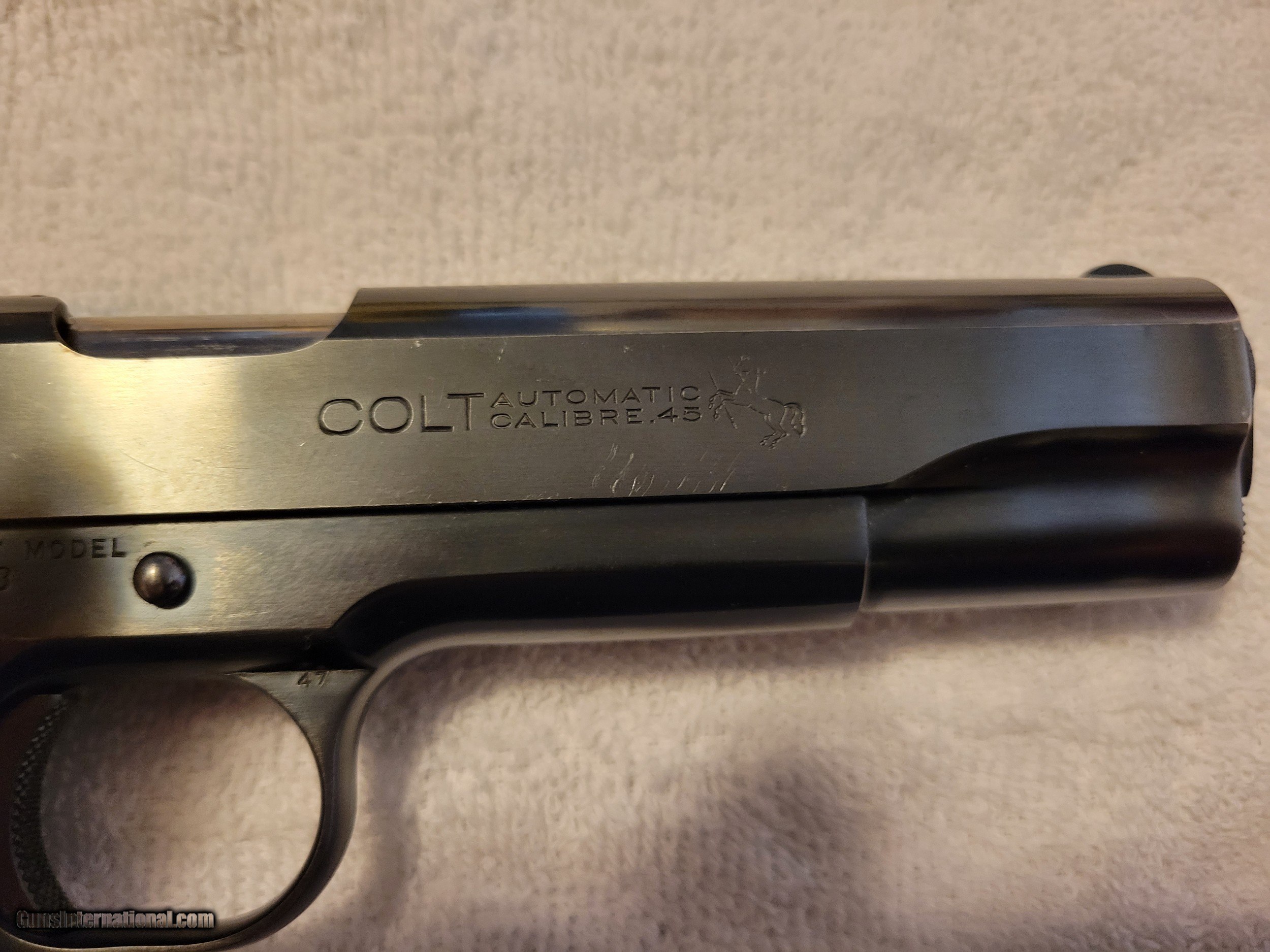 Description: Extremely nice 1911A1 commercial. 45 ACP This colt did not see much use. The blue is excellent with several minor imperfections. No rusted or pitted areas. There is a scuffed area on right side of slide below colt logo. The grips are excellent. Bore is excellent. Circa 1925 SOLD |