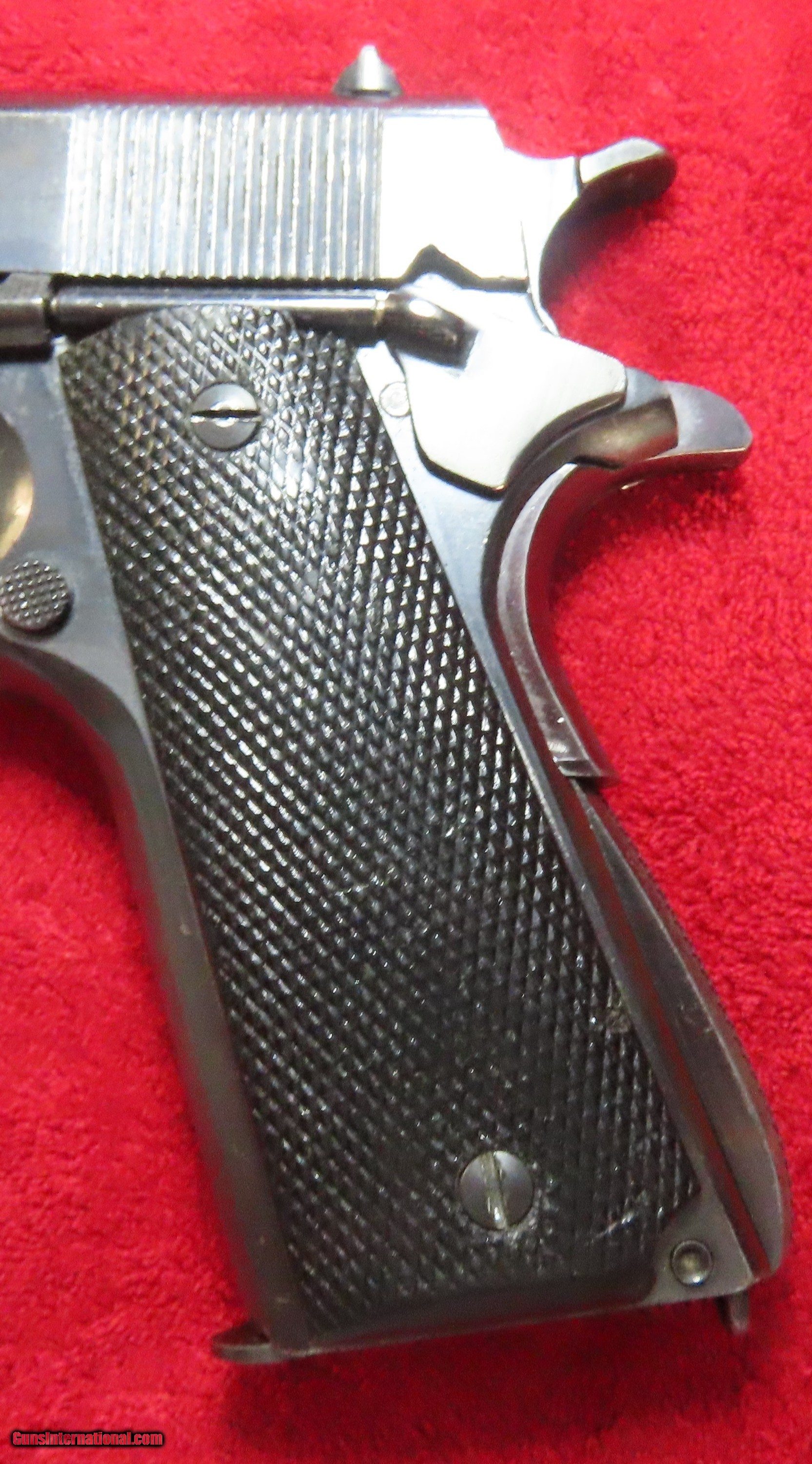 Description: Very good condition .45 ACP DGFM (Colt) 1911 A1 Model 1927 EKEROITO ARGENTINE with 5" barrel and excellent barrel. $30.00 Shipping We Accept Visa, Mastercard, Checks, and Money Orders (With personal checks gun will be held until check clears) No Credit Card Fees We offer layaway with 1/3 down, 1/3 in 30 days, and balance in 60 days. . FFL required for shipping; All items shipped Priority Mail Please contact Gloria at 540-613-2077 (after 12 noon eastern time) or email jimsguns2020yahoo Thanks for Looking! SOLD Manufacturer: Colt Model: 1927 EJEROITO ARGENTINE Serial Number: 40345 Barrel Length: 5 Condition: Very Good Bore Condition: Excellent |