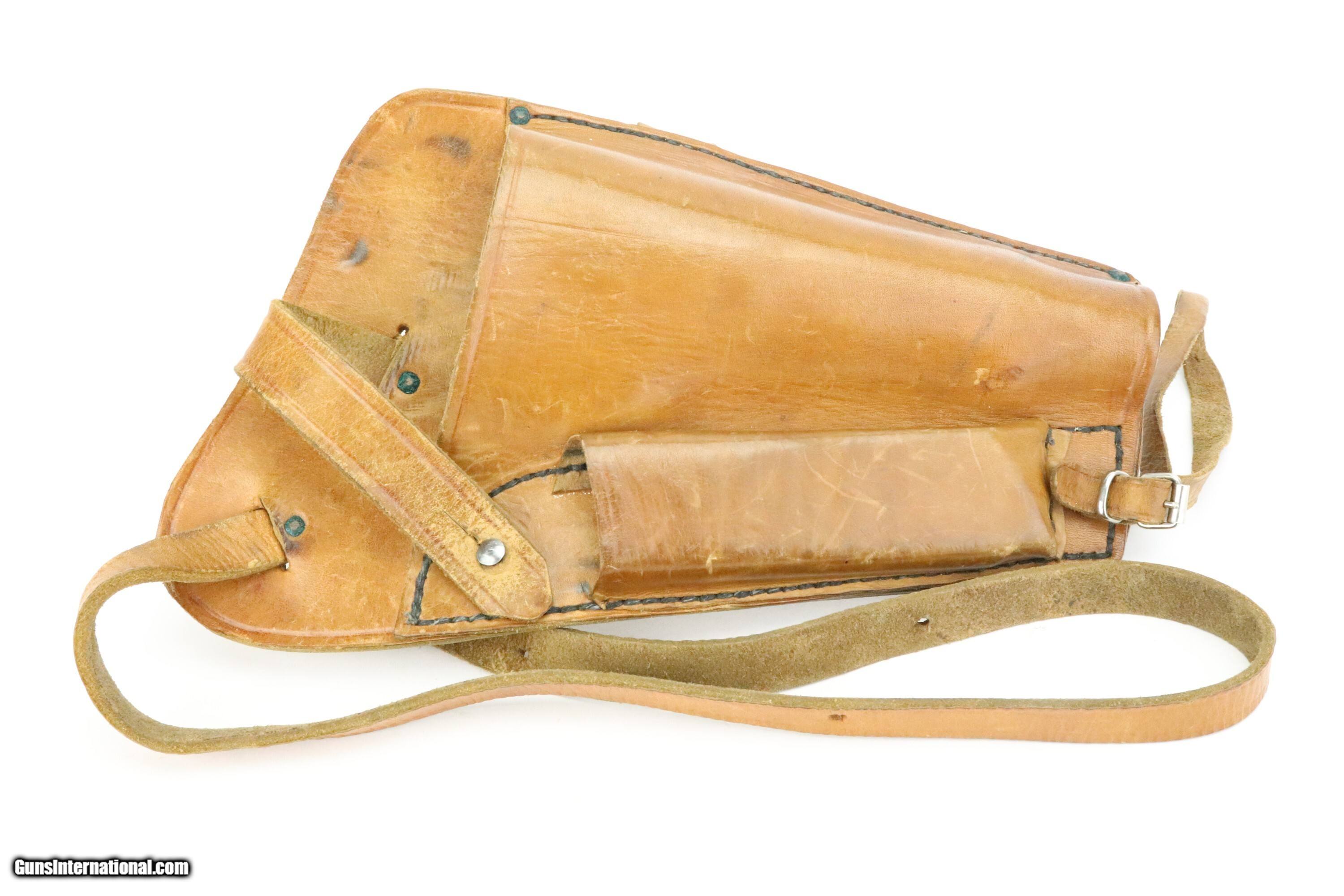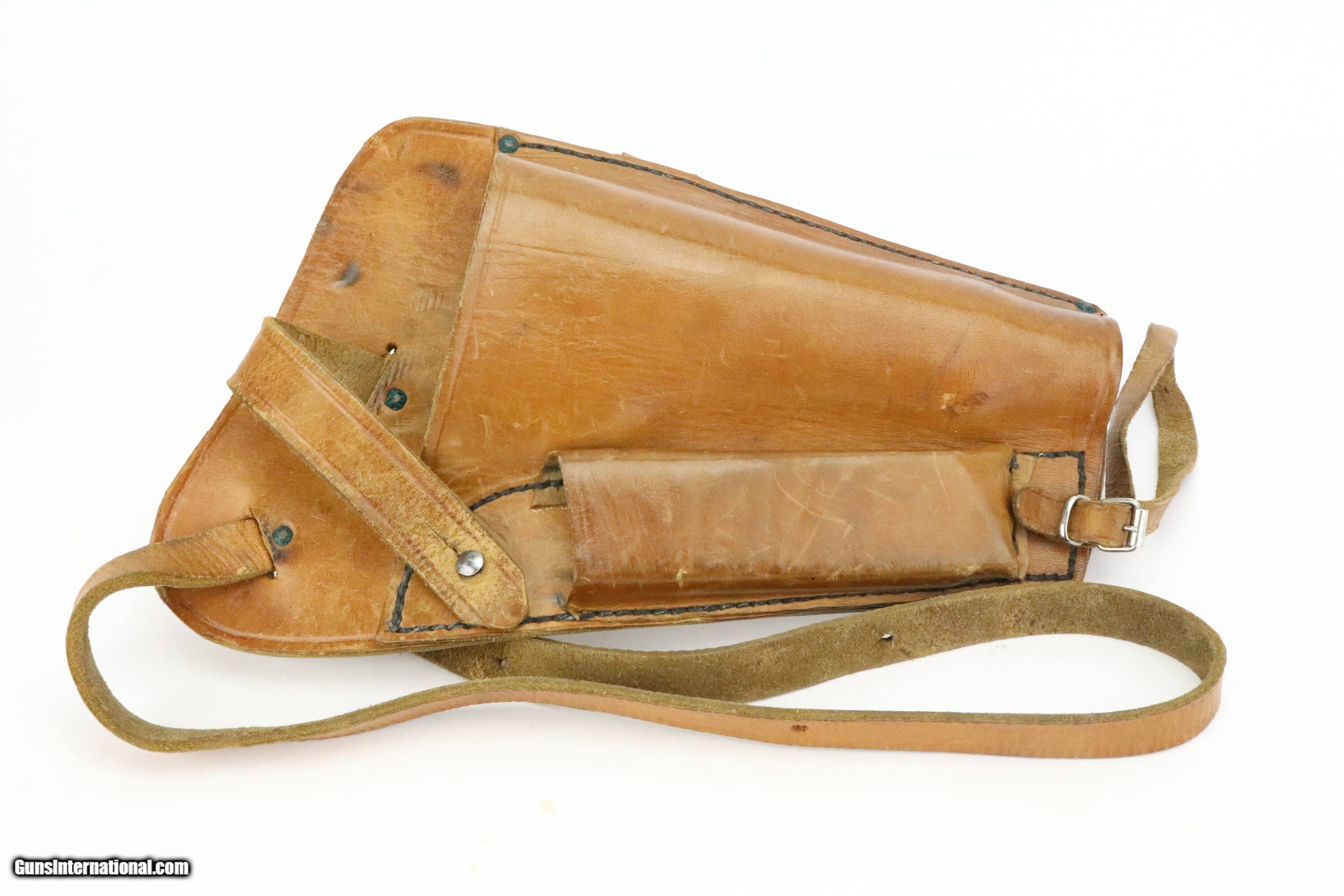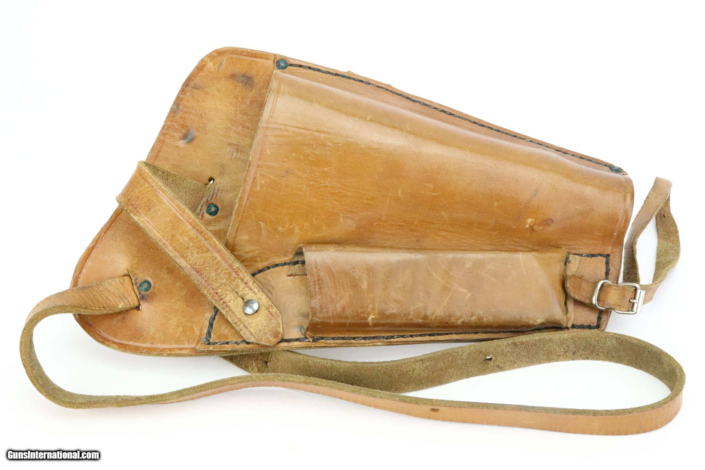 Description: This is a beautiful example of an original Colt 1911A1 from 1940. One of only 4,696 produced in 1940, this one is correct throughout with about 95-96% of the original Colt blue remaining. The most notable finish loss is on the front edges of the frame, as well as around the muzzle. There's also a small spot of bluing loss on the trigger guard and on the right side of the frame (near the serial number). Slight "idiot scratch" on left side frame. Slide serial matches frame. Proper CSR inspector mark on frame, with P proof on slide and frame. Correct Colt barrel with large 'G' under lug. Fantastic bore, very minor signs of use. Listing includes a total of two dual-tone 1911 magazines, as well as a period leather shoulder holster. Original wood grips show some smoothing and a few worn diamonds but no cracks. Curio/Relic: Yes Handgun Caliber: .45 ACP (.45 Auto) Price: $9,995.00 Contact Seller |