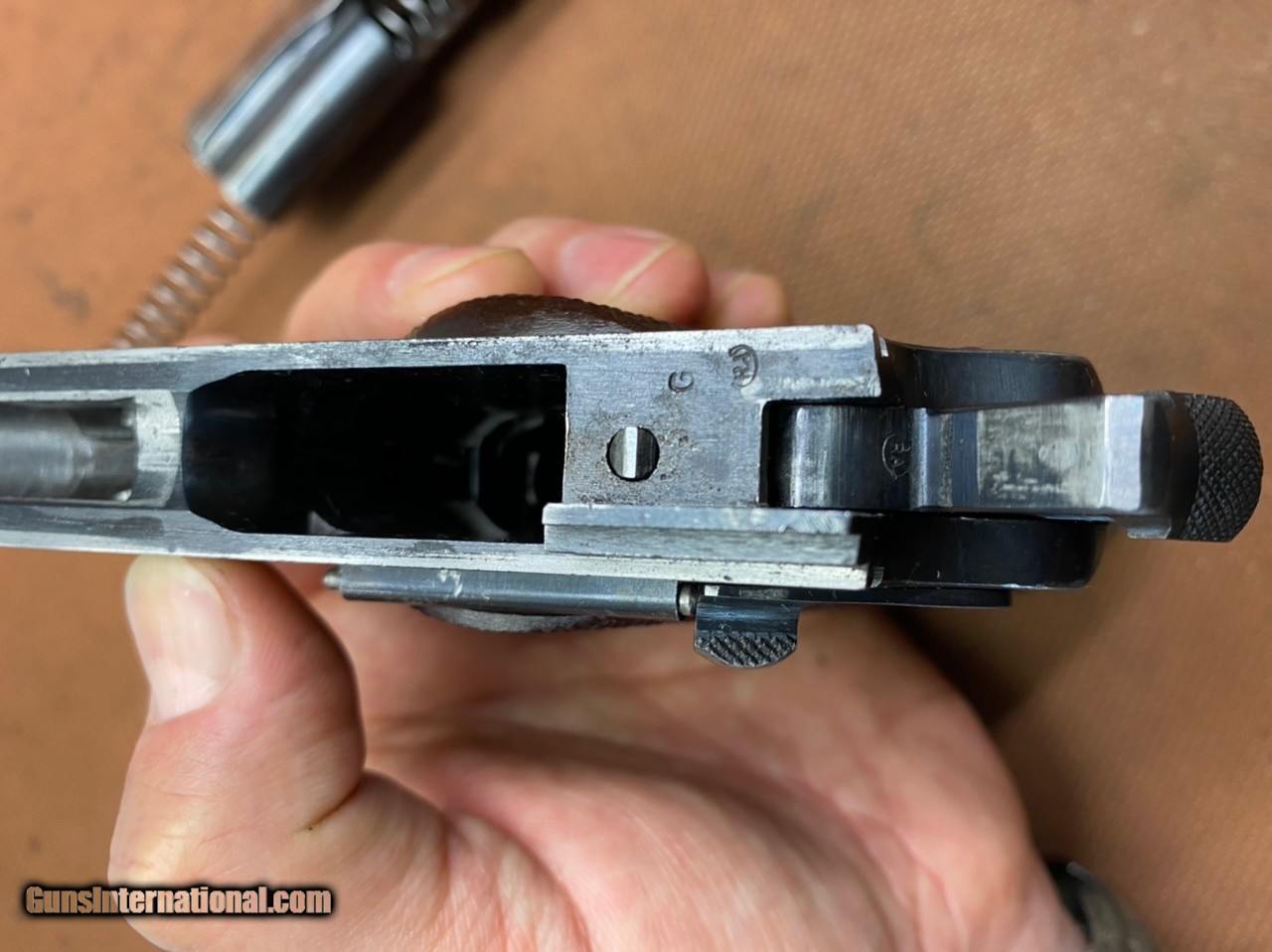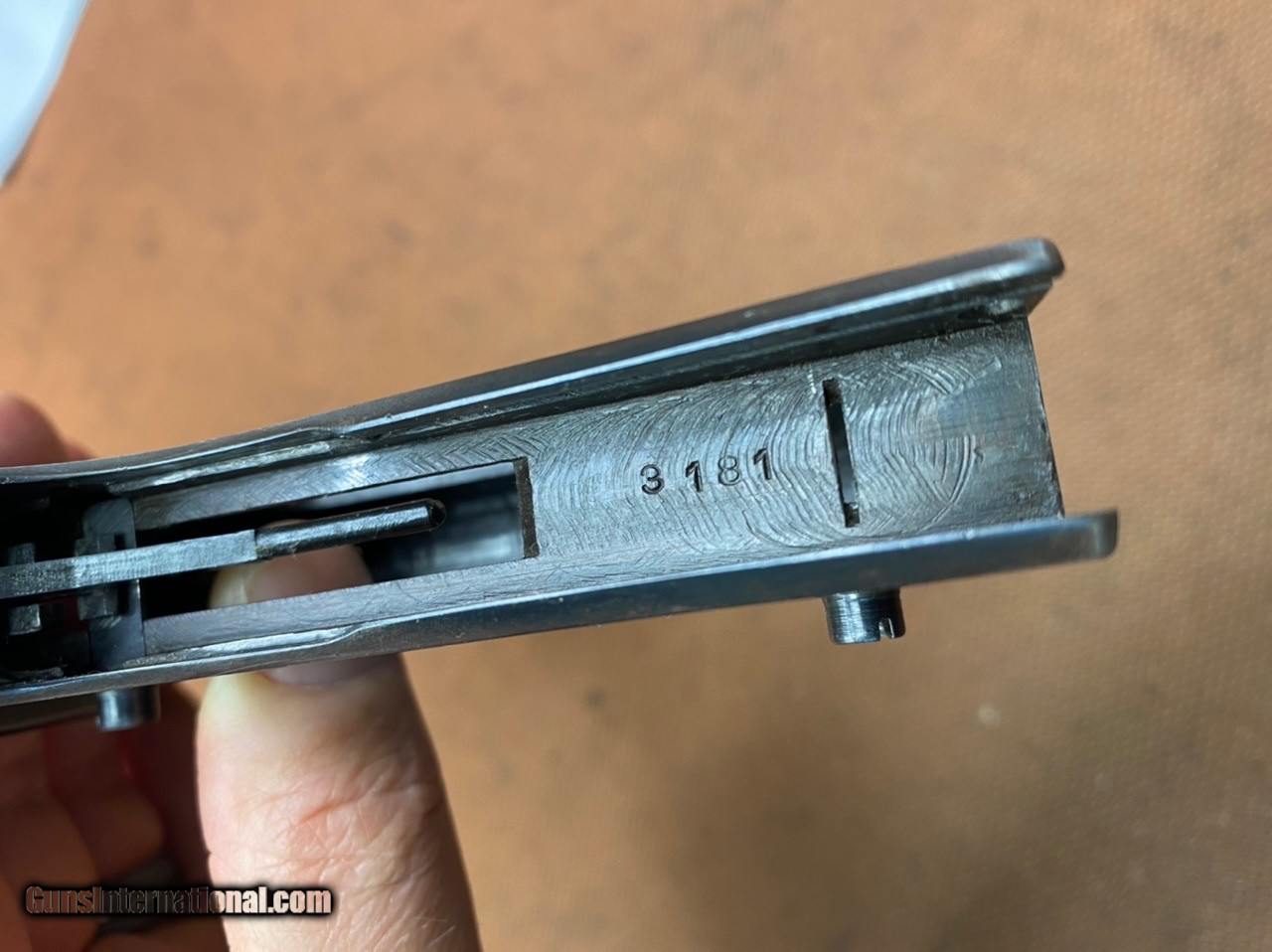 Description: ***SOLD*** REDUCED!!! Rare All Matching Colt (Hartford Colt) made for Argentina Government 1927-1928, in 45 auto. This is one of the 10,000 guns ordered from Colt, with the unique distinctive markings established by the contract! The serial number (3181) is properly marked on three places, slide, barrel, and frame, under the mainspring housing! All matching! The gun also features the Argentinian inspector marks "RA" and "R" through out (slide, hammer, grip safety, etc). Beautiful correct checkered walnut grips, in really good condition! The Bore is outstanding for the age, no rus, and the grooves and lines show no wear at all! A lot of these guns went through arsenal and they were parkerized, that's not the case with this piece. This gun still has the beautiful bluing typical of the 1920's Colts! It has some wear as expected from a gun this old, and used as military carry guns! The magazine has a higher serial number, but at least is an original Colt Mod 1927 magazine! the gun is fully functional, and it has a very crisp trigger pull. This would make a great addition to any collection! Cashier's checks or money order same as cash. Personal checks will be hold until funds clear (3-5 business days). Shipping insured will be $55 to Continental US only (AK & HI extra). SOLD Handgun Caliber: .45 ACP (.45 Auto) |