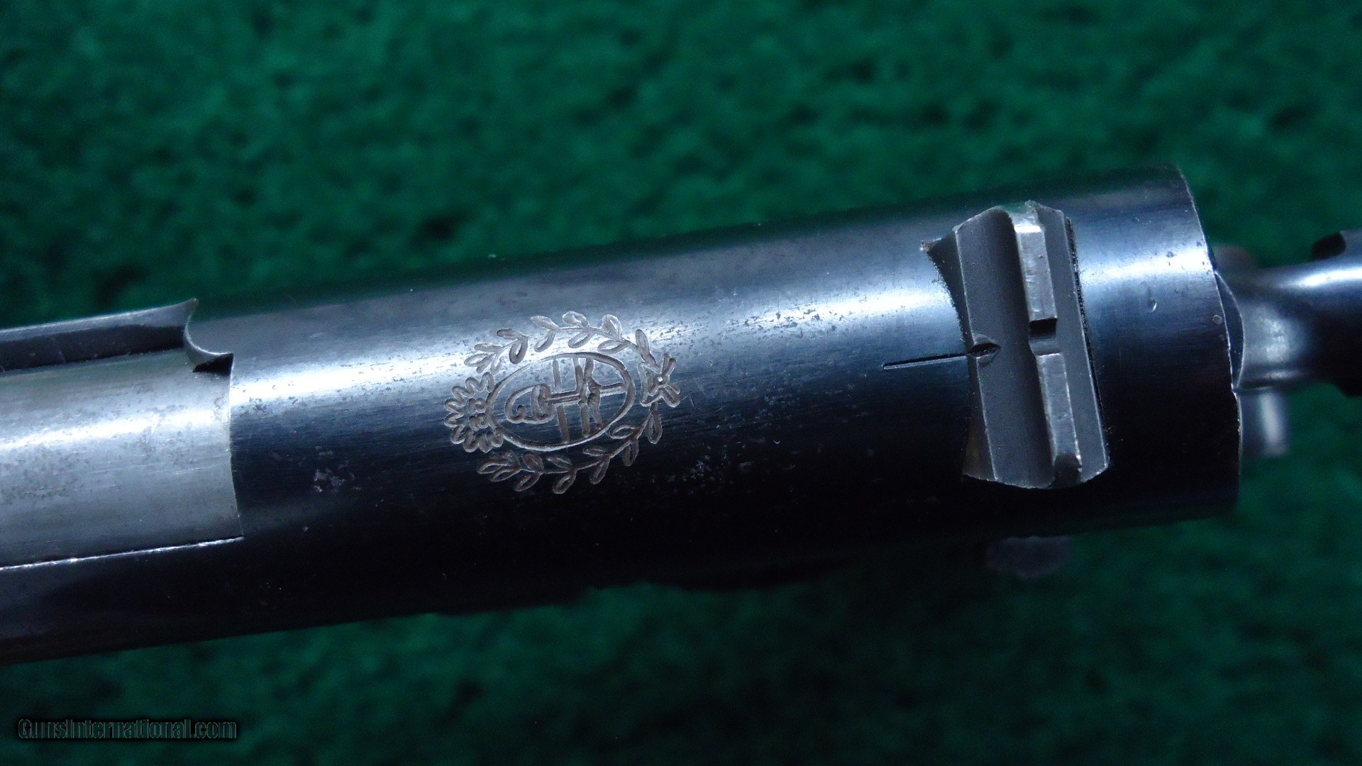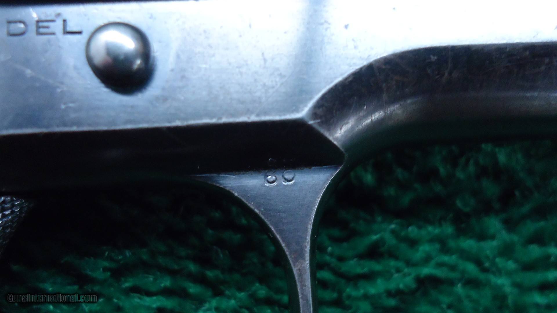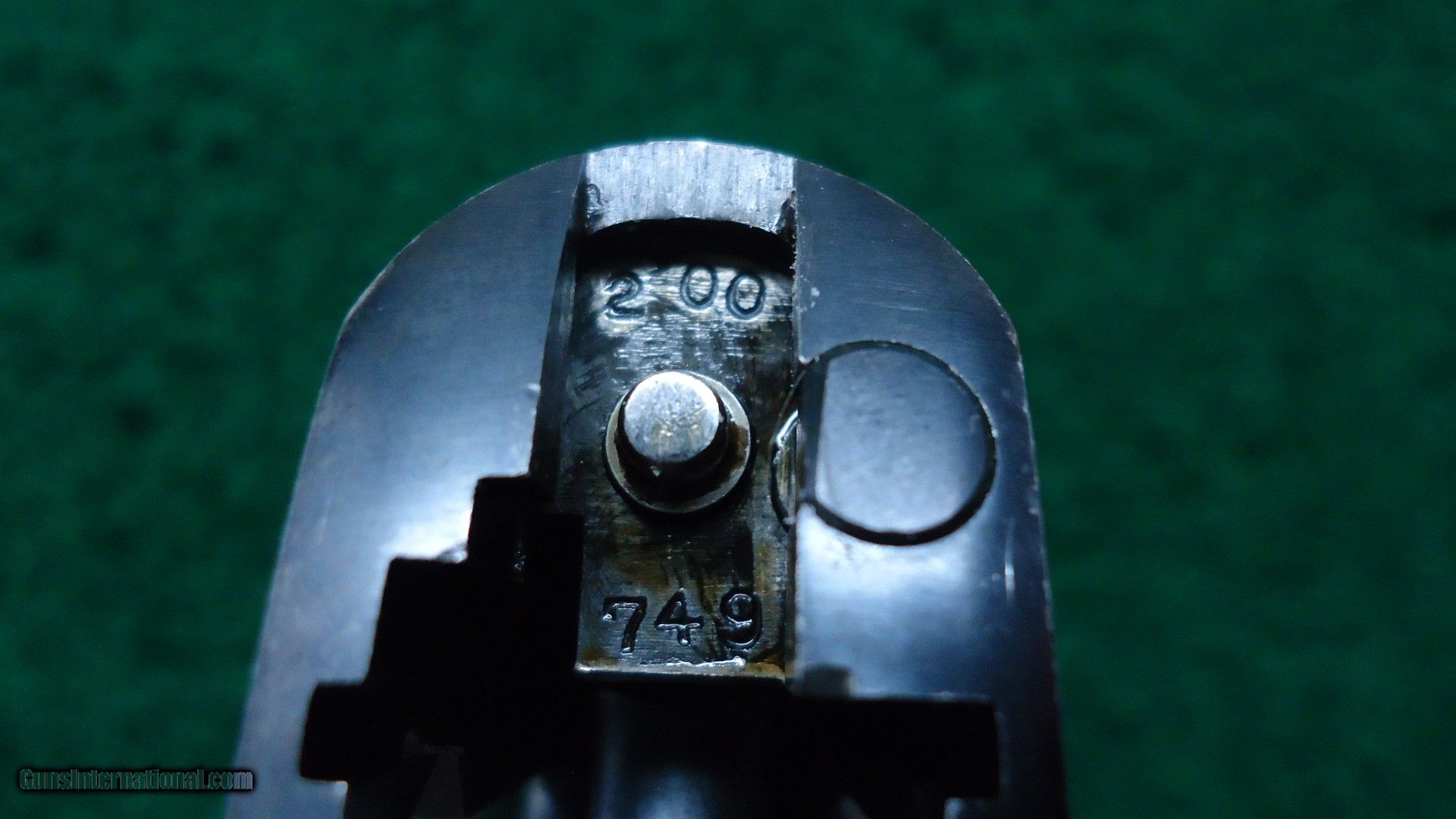 Description: In 1941 the Argentine Naval Commission purchased 500 “off the shelf” Government Model pistols and hand engraved them with “REPUBLICA ARGENTINA/ARMADA NACIONAL – 1941” and stamped the top of slide with the Argentine crest. Of these 500 pistols that were made most were recalled for inspection and parkerized leaving the existing supply of Colt made and factory blue models even smaller. It is interesting to note that this pistol is equipped with the Swartz Safety device (this was an early firing pin safety which locked the firing pin unless the grip safety was squeezed). Colt’s production ledgers listed only 416 Government pistols with this safety device. These pistols are a rarity today particularly in original finish. 45 ACP with 5 inch barrel. Fine bore and a crisp action. This is a scarce Colt made commercial pistol that is seldom encountered in original condition. This is one of the hardest Colts to find – even rarer than the Singer! Leroy Merz Antique Firearms specializes in antique and vintage Winchesters and other fine American firearms. Since 1965 Mr. Merz has taken part in the world of firearms and has been a contributor to many well known reference books. We have hundreds of additional guns in every price range at our home online. Search for Merz Antiques in google. SOLD Curio/Relic: Yes Handgun Caliber: .45 ACP (.45 Auto) |