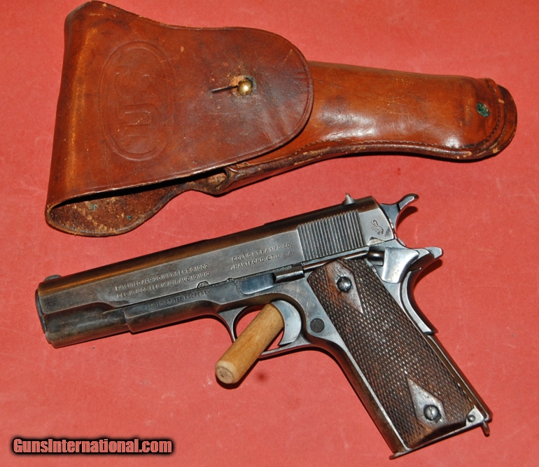 Description: Colt model 1911 built in 1917.this gun retains 75%of the original blue finish.It has the original barrel and grips.The bore is excellent and the action smooth.It comes with a correct leather US holster.C&R eligible. SOLD Curio/Relic: Yes |