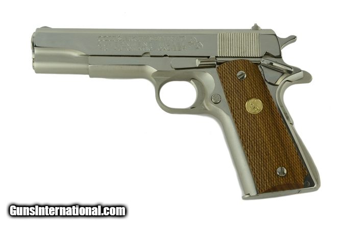 Description: Colt Government .45 ACP caliber pistol. Rare Series 70 model with bright nickel finish. Excellent condition with box.