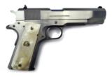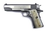 Colt Government MKIV .45 caliber pistol. Series 70 reissue with faux pearl grips and stainless finish. Excellent condition with box.