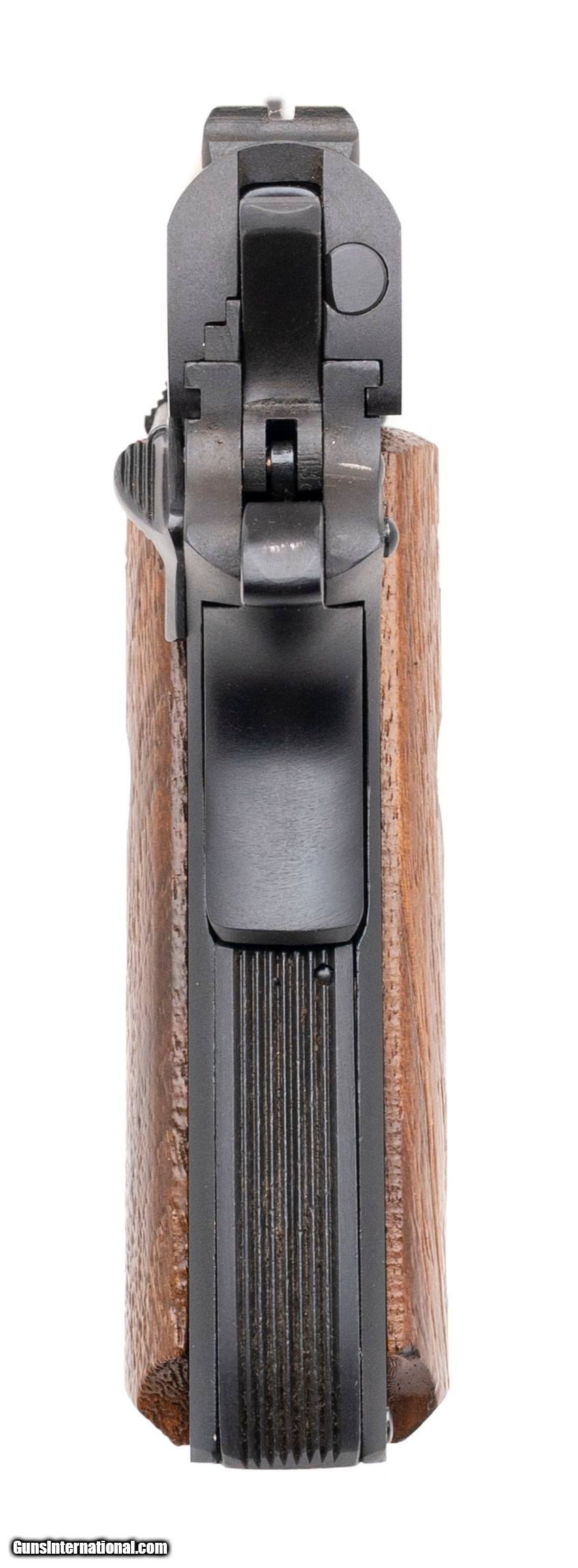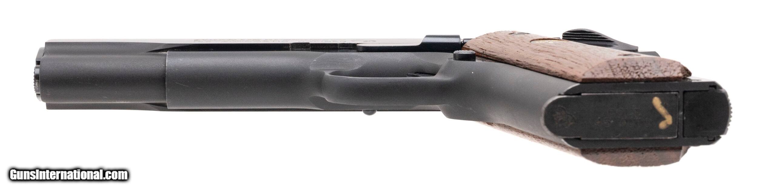 Description: "SN: SM37634. Made in 1979, .45 auto with an 5"" barrel. Bore is bright with strong rifling. Scarce Government 1911 pistol with excellent walnut wood grips. Approximately 3000 were produced with ""SM"" prefix because they were built on Colt Service Model Ace frames. Overall condition is excellent. Comes with original box. Price: $1,895.00 Contact Seller |