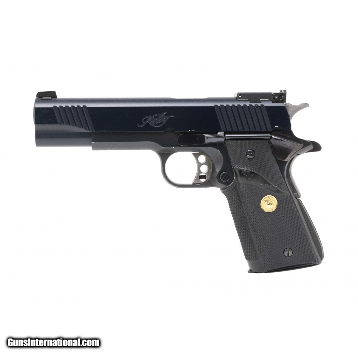 Description: " Colt Series 70 Government Model .45 auto with a Kimber .22LR conversion unit. The base gun has been customized for Bullseye shooting, with a Bo-Mar sight rib and extended front sight. The Kimber .22LR slide is currently on the gun, and the customized Colt top end is included. A great target rig, in excellent condition with carry case. SOLD |