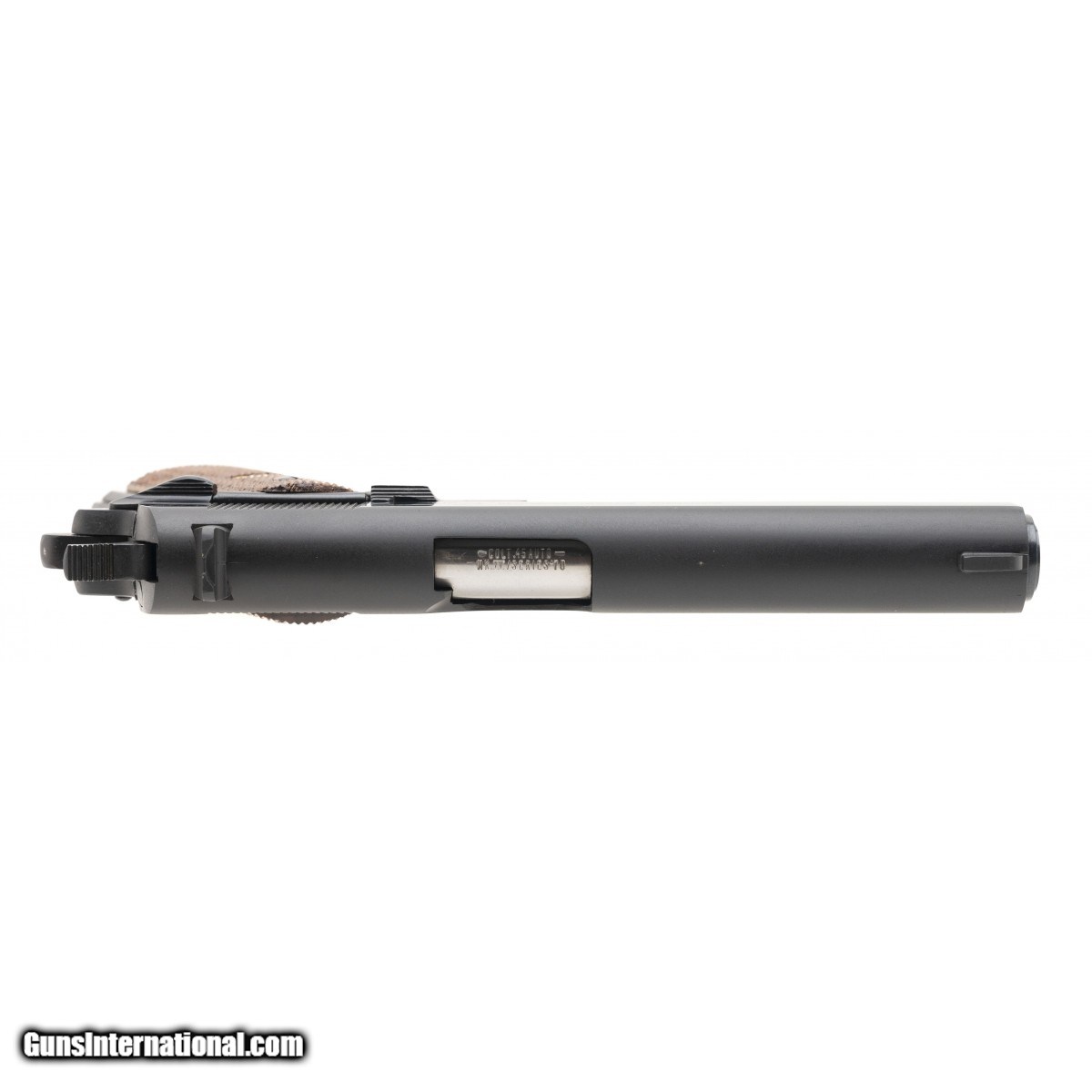Description: " SN:70B42714. Made circa 1970s .45 ACP with a 5"" barrel. Bore is excellent. Semi auto pistol with excellent metal finish and original wood grips. Grips are in excellent condition. Overall condition is excellent. Comes in original box with paperwork. SOLD |