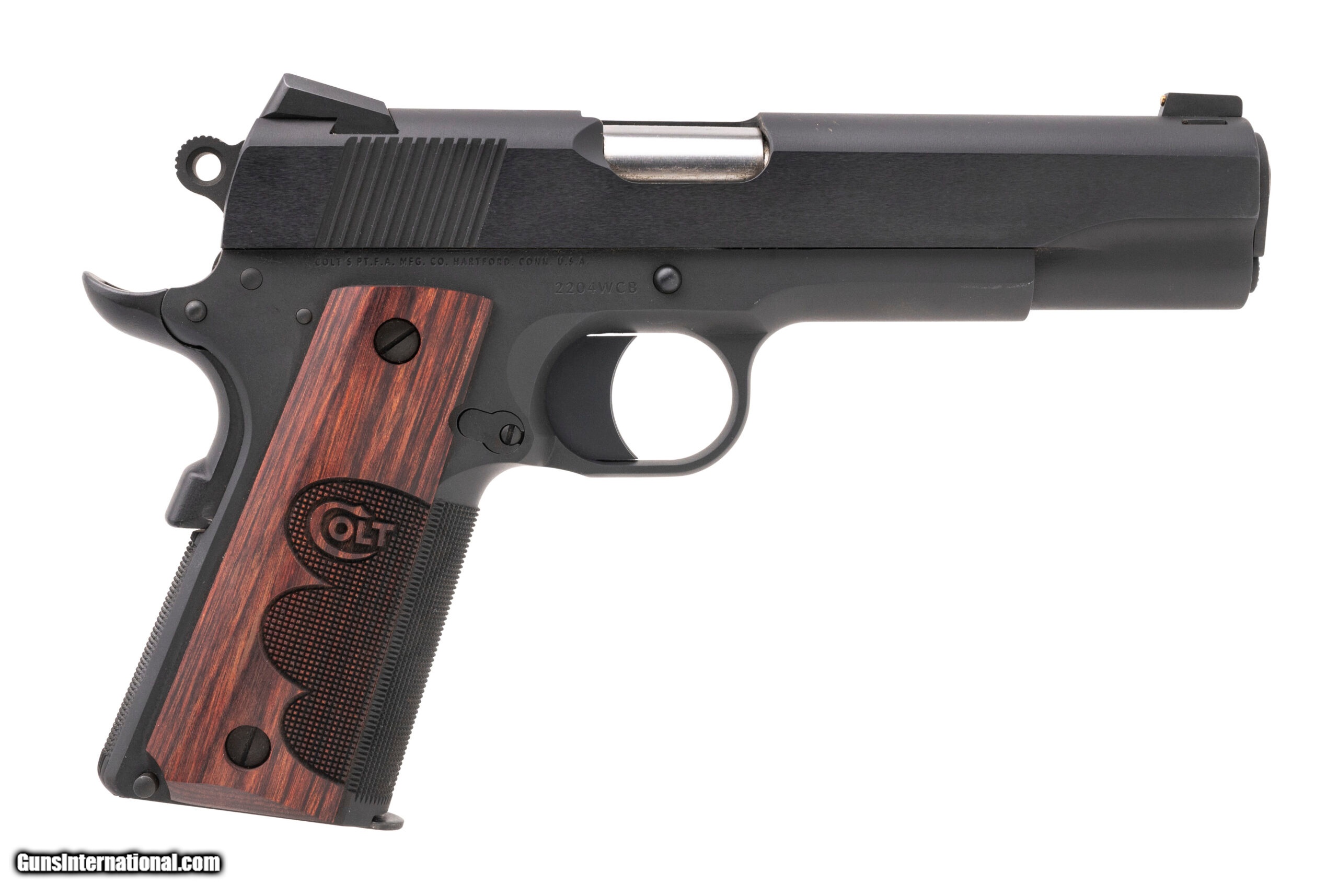 Description: "SN: 2204WCB. Modern production, .45 Acp with a 5"" barrel. Bore is bright with strong rifling. Talo edition Wiley Clapp model Gov't size single action 1911. Finish is excellent. Wood grips are excellent. Comes with box and extra magazine. SOLD |