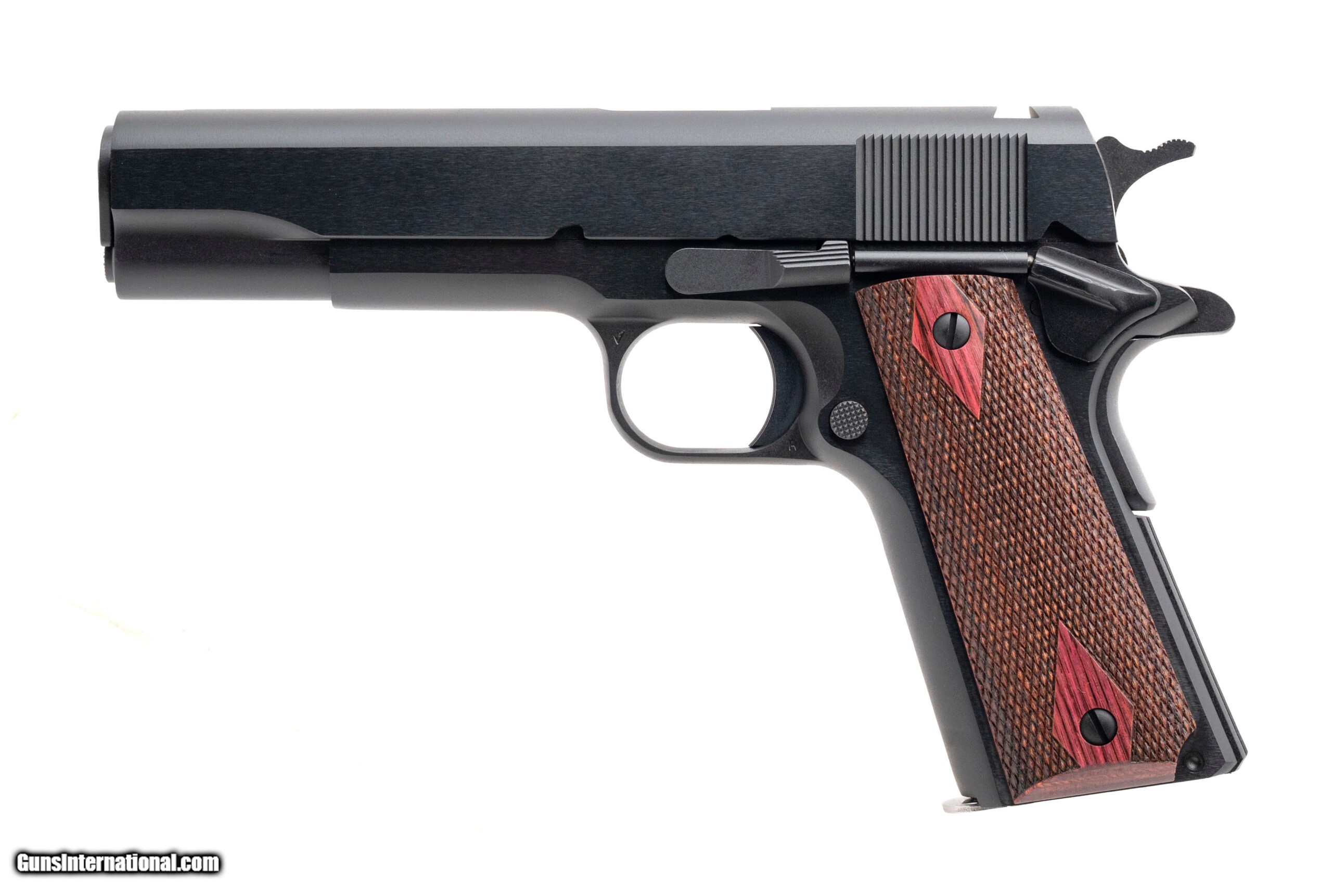 Description: "Single Action 1911 with a 5"" Barrel. Government Size, Blue Finish, Steel Frame, Checkered Wood Grips, No Rollmarks/Sights, And Engravers. NEW. UPC: 098289112293 (STOCK PHOTO) SOLD |