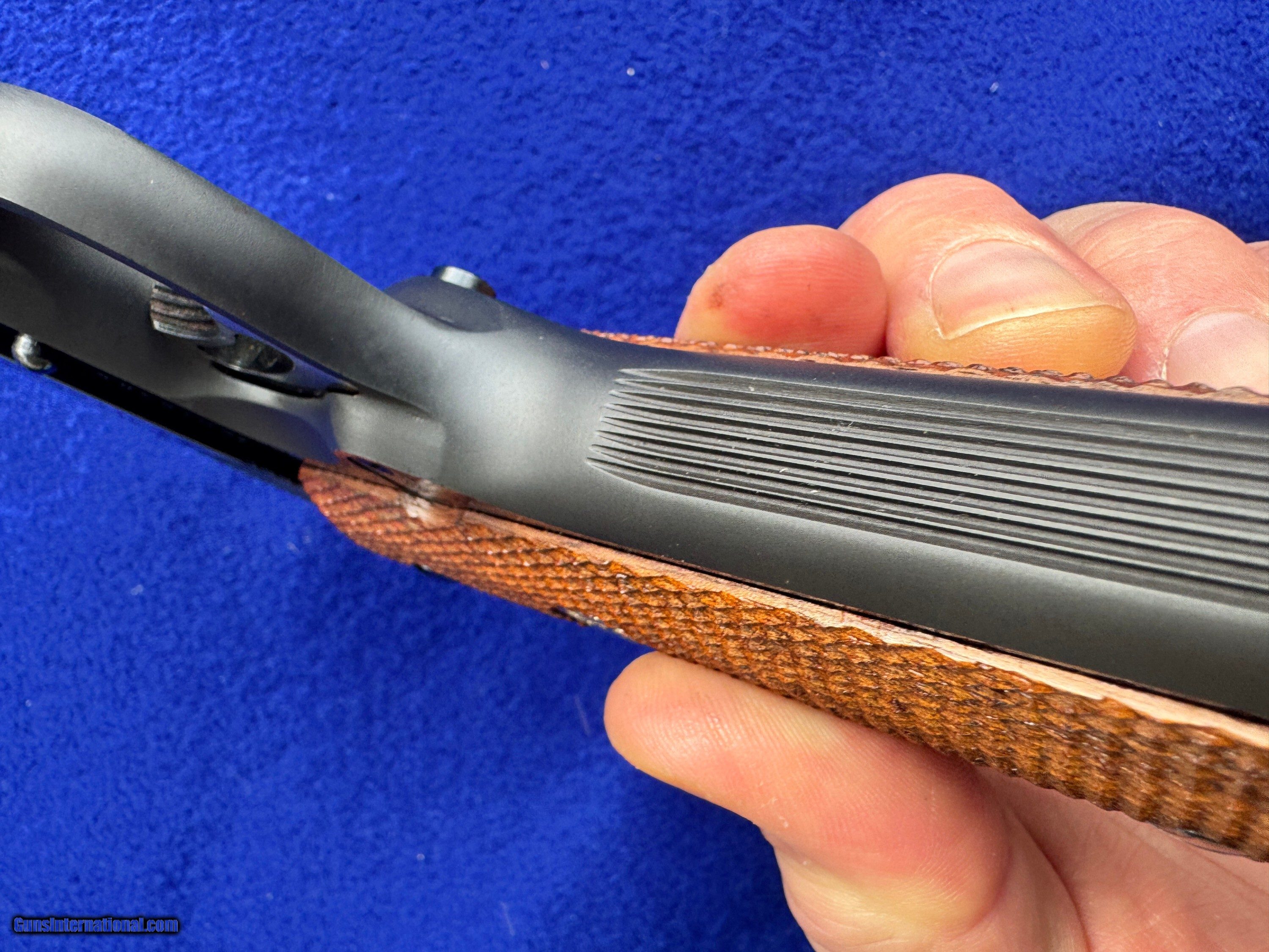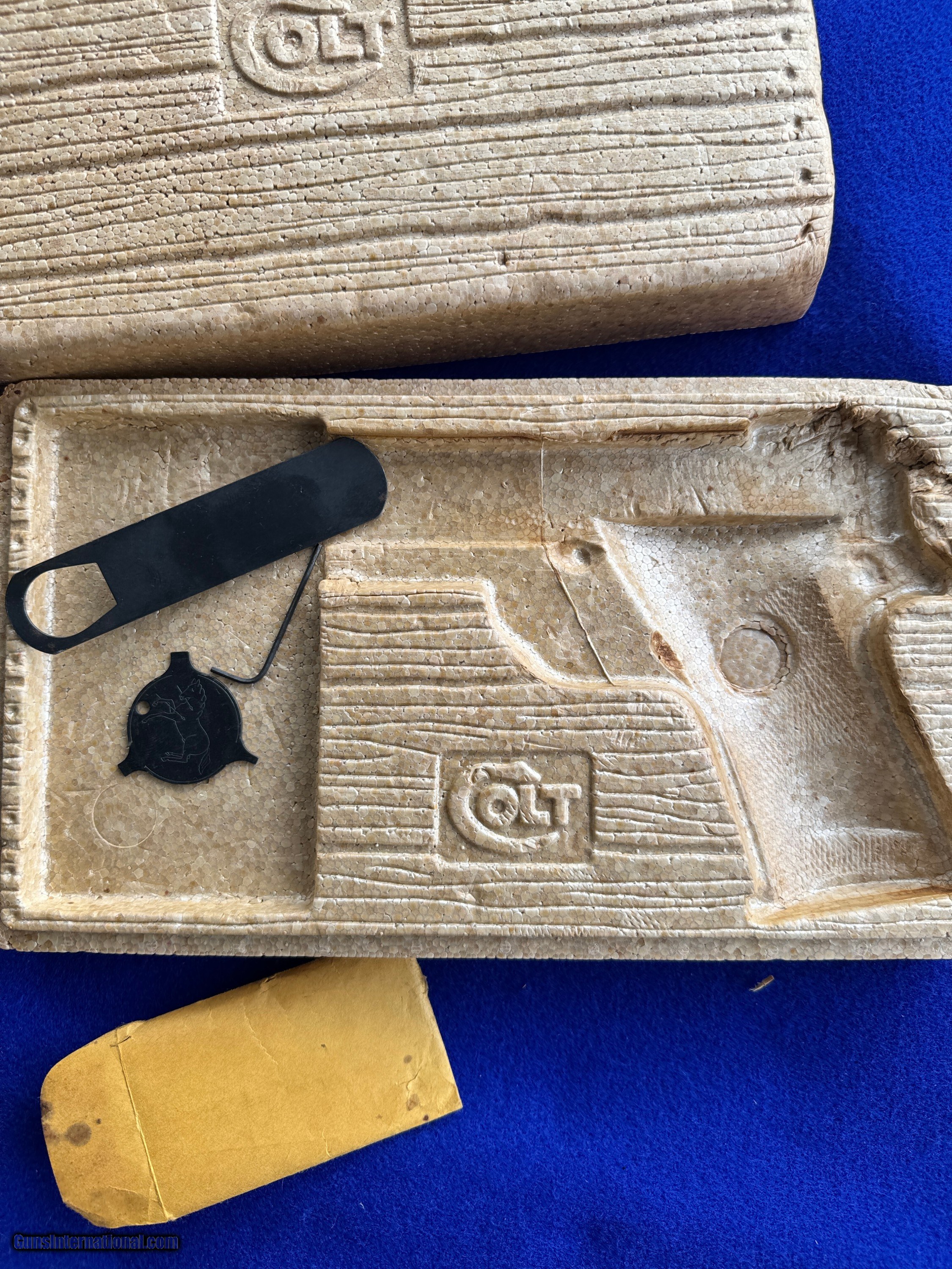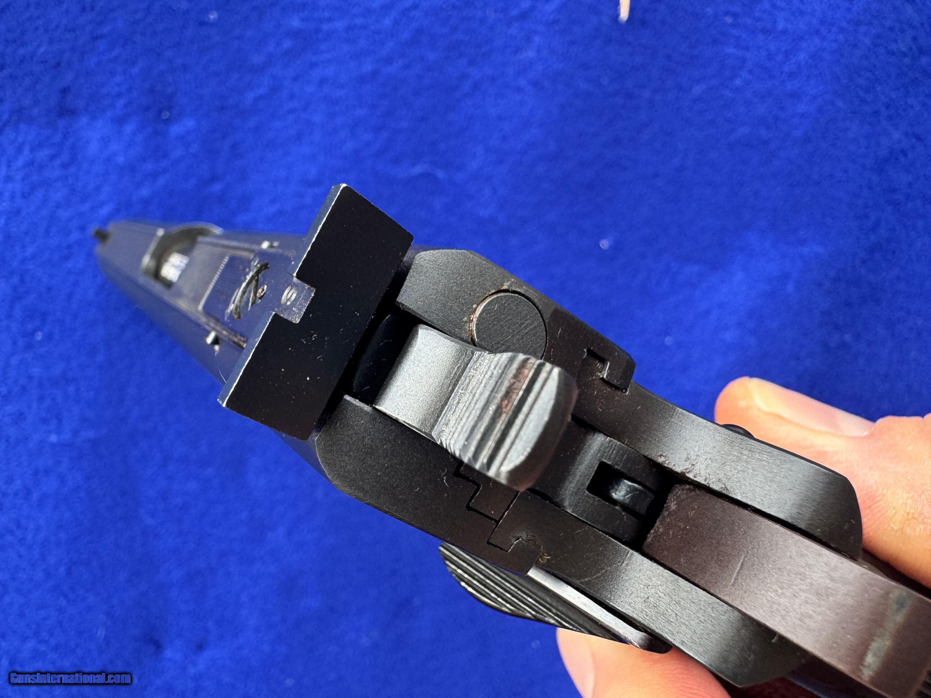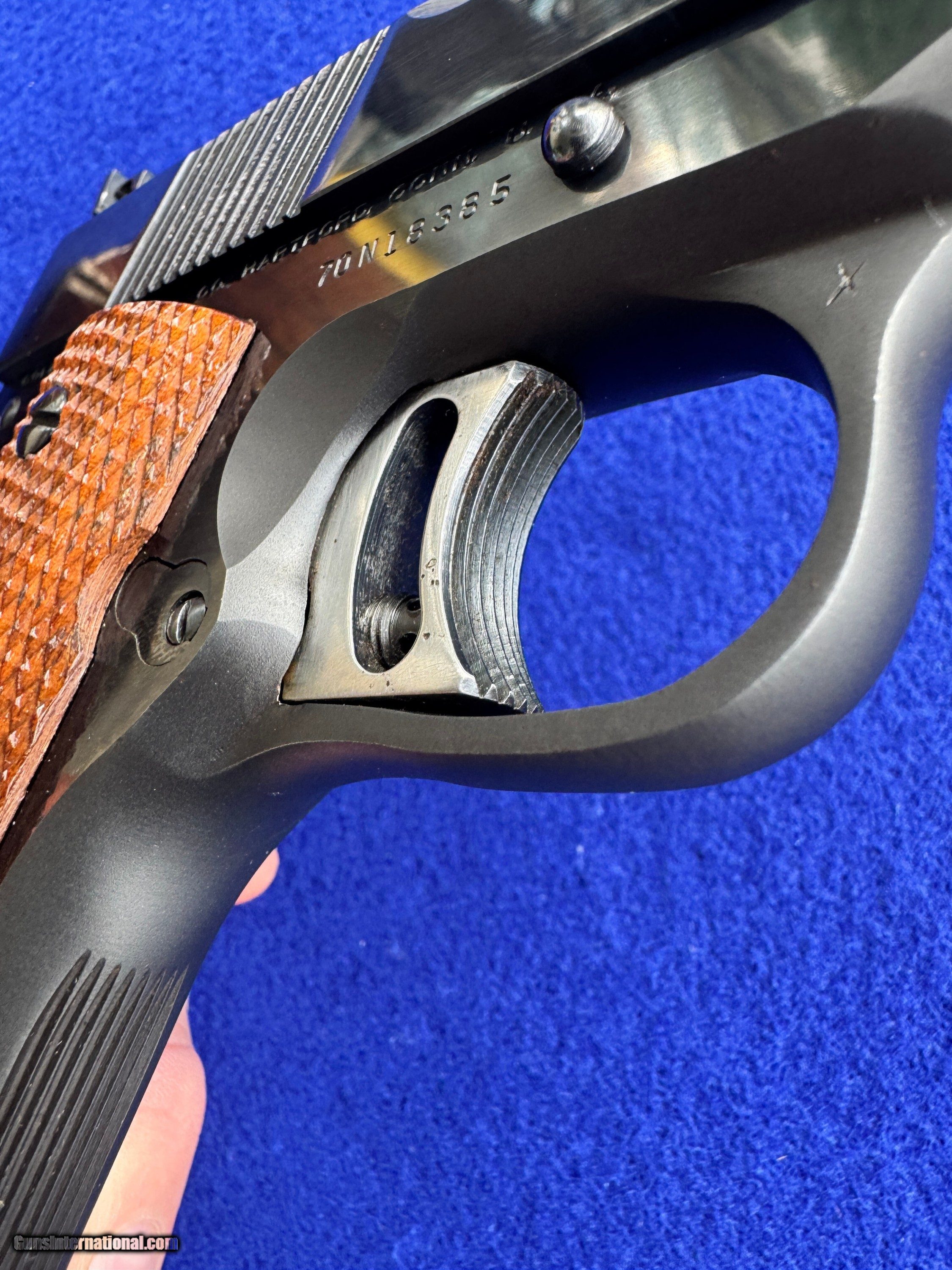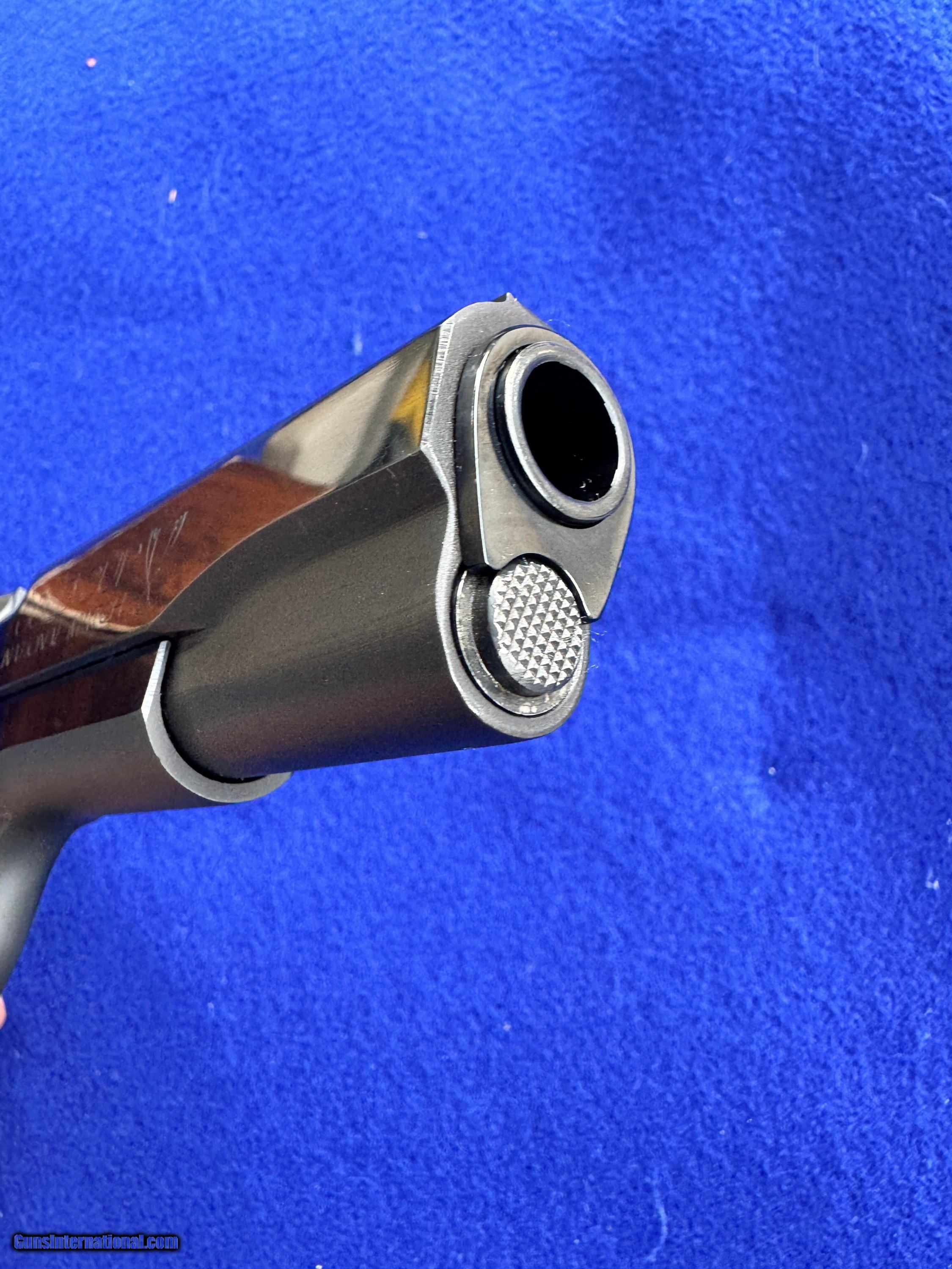 Description: Mint 1974 Colt MK IV/Series 70 Gold Cup National Match In Factory Box. Chambered in .45 ACp and featuring a National Match Acccurizer 5" Barrel and Bushing. Flat, Serrated mainspring housing, adjustable trigger, target hammer, solid rib and Colt "Elliason Rear Sight." The front strap is serrated for a perfect grip and feel. Colt deep royal blue is near flawless. The colt embossed hard wood, checkered grips are too. Includes the shown Colt Magazine. Inside the box is the foam two piece insert and tools as shown. The bore is mirror brite. Very hard gun to upgrade and it's C&R eligiable too. I accept Post Office Money Orders, Personal Check, Zelle and credit card as payment. All Credit Cards incur a 2.99% fee which is in addition to the final price as shown in the Order. Please allow me to give you a complete total. All Credit Cards will need to be done over the phone. Thank You. Insurance is not included in shipping. Please allow me to add that to the total at your request at a rate of 2% per every $100. Thank you for looking. Please let me know any questions. Many more pictures available. SOLD Curio/Relic: Yes Handgun Caliber: .45 ACP (.45 Auto) Manufacturer: Colt Model: MK IV/Series 70 Gold Cup natrional Match Serial Number: 70N18385 Barrel Length: 5 Bore: Excellent Condition: Mint Barrel Type: National Match Action: Single Triggers: Adjusatable Stock: Colt Finish: Deep Blue Sights: Elliason Manufacture Date: 1974 Extras: Box, Tools |