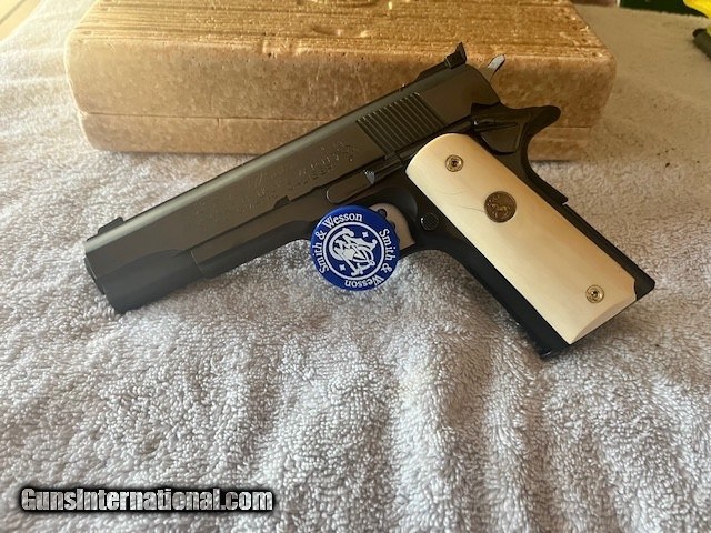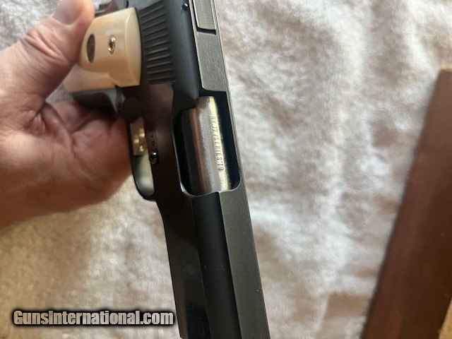 Description: Near mint, no bluing loss, no idiot scratch, beautiful real factory ivory grips. Small hairline crack by the medallion, box is tattered and missing an end flap. Original trigger was swapped out, but the original will be included In the sale. $25 shipping ffl to ffl Zelle, Cashiers, USPS MO, Credit/Debit add 3% SOLD Handgun Caliber: .45 ACP (.45 Auto) |