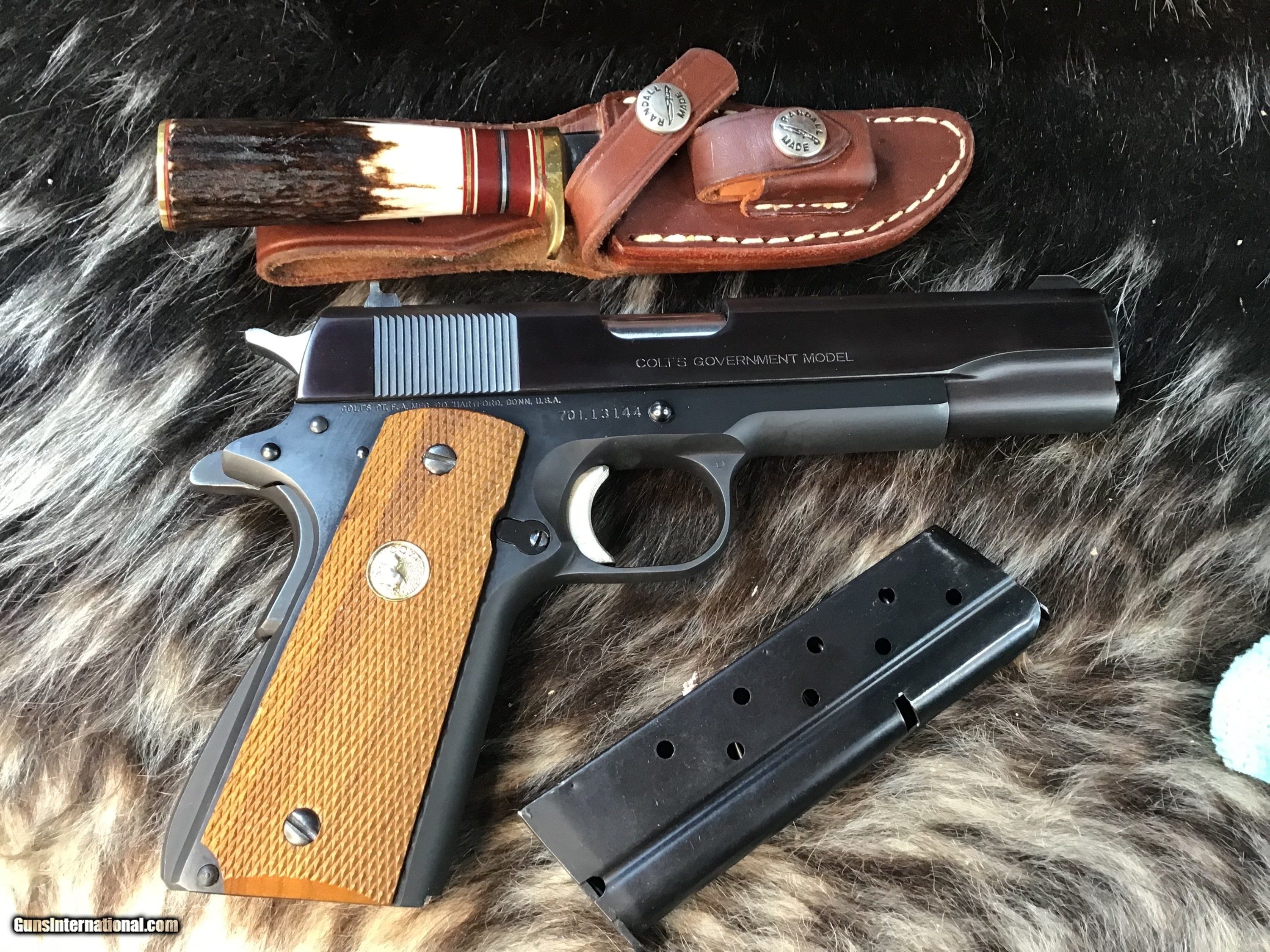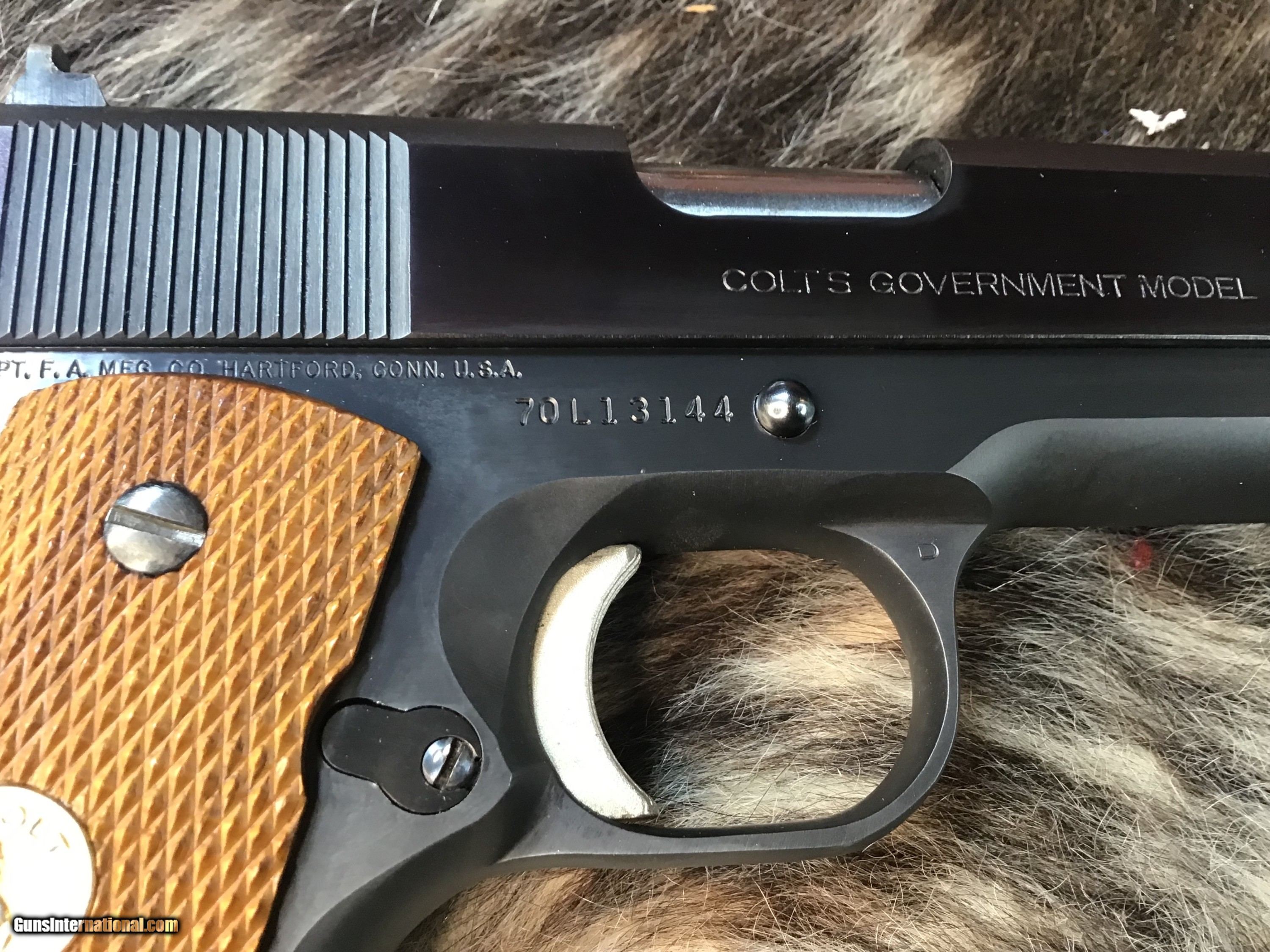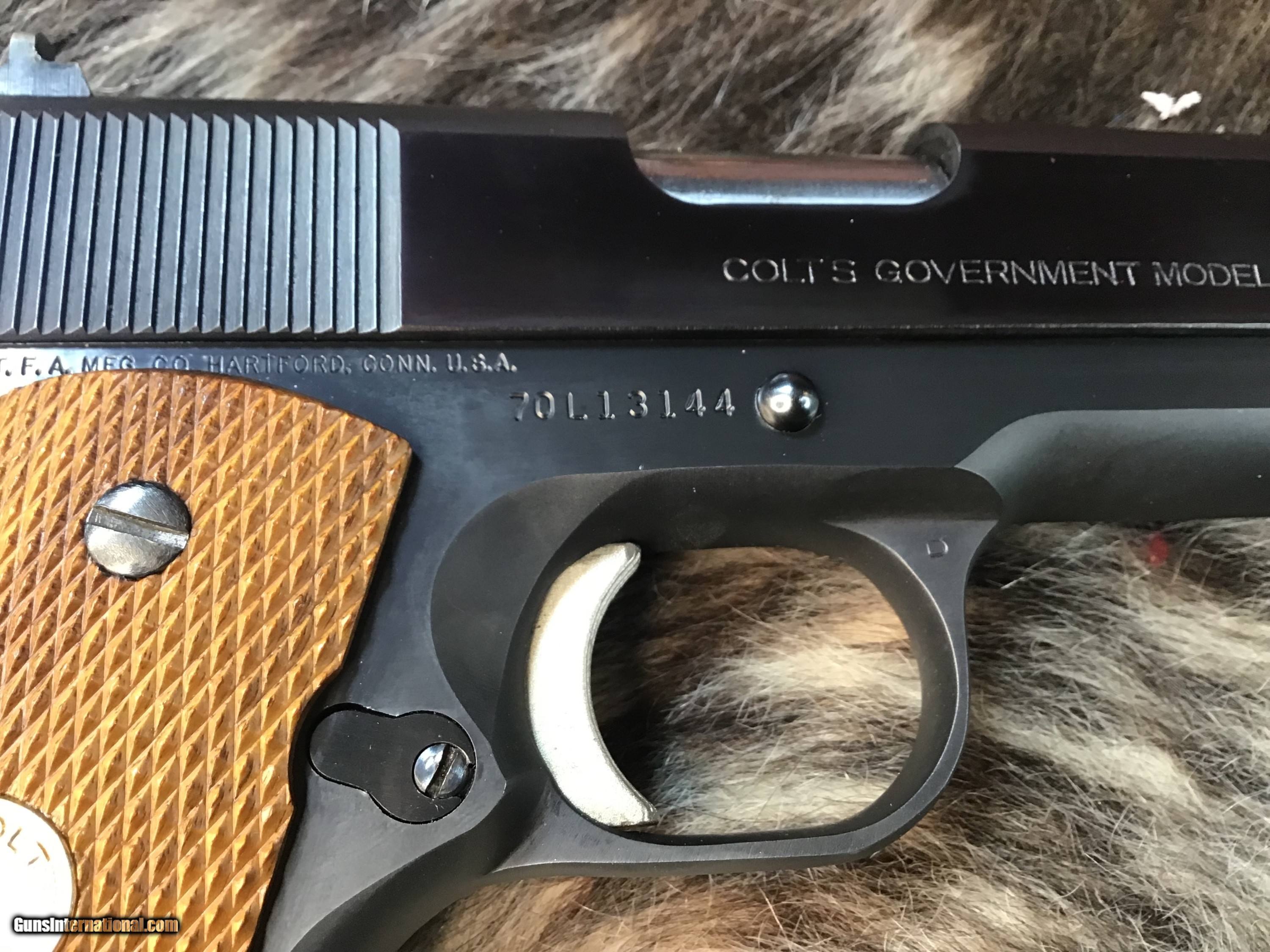 Description: 1978 Mfg. Colt Government Model MK IV Series '70 chambered in 9mm with one, nine round detachable Colt magazine and a 5" barrel. Blued steel frame with serrated magazine release and slide stop. Diamond checkered wood grips with Rampant Colt medallions. Manual thumb safety and grip safety. Single action trigger and hammer. Blued serrated slide with fixed iron sights. The flats on the slide have a pleasing plum color. Comes in its factory box with matching serial number and factory paperwork. Gun comes in factory numbered to the gun Colt box with owners papers intact. A great 1911 to collect or do range work without breaking the bank on ammo. Add 3% if paying by credit card. Free shipping for all US Veterans. God Bless America from a proud American, and a Viet Nam Vet , thankful for our freedoms.. paid for by the Blood ,Sweat and Tears of our brave men and women in uniform. Ten Below Firearms is a Veteran owned and operated business. We specialize in out of production models of high quality firearms. (I prefer to be called a Collector because it sounds a lot nicer then a Hoarder.) We love to ship! We ship to all states where legal, just give us a call! Handguns normally ship for $50 and up, and Long guns for $50 and up for extra length long guns. That's 2-3 day FedEx shipping, Delivery conformation and with tracking number. Optional insurance is additional $1.85 per $100 and highly recommended. Long guns shipped FedEx Ground unless buyer pays up charge for air. * If you live in Minnesota and want to drive to see a gun, reach out to me to discuss making an appointment – ALL GUNS ARE LEGALLY TRANSFERRED – there are NO EXCEPTIONS. All payments sent via USPS Priority mail must be received within FIVE DAYS of date of purchase or item will be relisted for sale. **PROPS MAY BE USED FOR PHOTOS, PROPS ARE NOT INCLUDED WITH THE SALE OF THIS FIREARM** Thank you! Please call the store to complete your purchase : 651-303-7769 Layaway:If needed we offer a 60 day layaway program. We offer FREE 60-day layaway. Buyer must pay at least 1/3 down, 1/3 Due in thirty days and the final balance due in sixty days. On all uncompleted layaways, all payments made will be non-refundable. The 60 days begins the day the buyer commits to buying the gun. 90 day layaway is available with 1/2 down, via phone. All layaway sales are final. Layaway is not available on negotiated prices. Please Check us out at tenbelowfirearms And Please Send An Email or Call If We Can Assist in SELLING OR BUYING Your Collection. Friendly honest service, Fair Pricing, and top prices paid out for your interesting firearms. We also will take classic cars and trucks on trade. We also will take Gold & Silver on trade. Trade Opportunities: Premium Trades Considered: At Ten Below Firearms we welcome discussions of trades, especially if you have high-quality firearms. This could be an excellent opportunity to upgrade or diversify your collection. RETURN POLICY:. All firearms EXCEPT ANTIQUE FIREARMS come with a 3-day from the time your firearm reaches your receiving FFL. - NON-FIRING, NON-MESSING-WITH (REMOVING PARTS, MOUNTING OPTICS, CLEANING, DETAIL STRIPPING) inspection / return privilege to cover any issue that was NOT noted in the written description -OR- shown in the photos of the item . Inspection is based on a visual review of the gun to confirm the gun is in the condition stated. The inspection period begins at time of delivery to your dealer. It is your responsibility to inspect the gun in this time frame and inform Ten Below Firearms by phone or e-mail, of any such issue. You MUST get ahold of us before just returning a firearm. In the case of a return, buyer pays all shipping. Please ask any questions you may have prior to purchasing one of our firearms for sale listings. Antique guns are sold as/is and are in no means under any warranty or guarantee to function. Return policy only applies to used firearms. No partial refunds. It is always prudent for ALL guns to be checked by a qualified gunsmith before attempting to fire. Once the gun has been transferred on a 4473 there WILL BE NO RETURNS, PERIOD. All Antique firearms are sold as collector’s items only and are under no circumstances warrantied as to shooting safety, function or accuracy. The purchaser is solely liable / responsible for determining that a gun is safe to shoot. Most of The firearms offered in our listings have not been test fired, but have been given a visual inspection only for firearm sale description purposes. It is our recommendation, should you choose to shoot an antique firearm purchased from us, have it thoroughly inspected by a qualified gunsmith before firing. By purchasing the purchaser agrees to hold the seller harmless against damage, injury, or death caused by defective merchandise or actions that are the fault or error of the purchaser. Handgun Caliber: 9x19mm Parabellum (9mm Luger, 9x19mm NATO) Manufacturer: Colt Model: 70 Series Government Model Serial Number: 70L13144 Barrel Length: 5” Condition: Excellent Metal Condition: Excellent Wood Condition: Excellent Bore Condition: Excellent Barrel Type: Semi Auto Action: Semi Auto Triggers: SA Finish: Blued Sights: Drift Adjustable Manufacture Date: 1978 Case: Box W/Owners Papers Item Location: MN Grips: Checkered Walnut W/Gold Medallions Price: $2,299.00 Contact Seller |